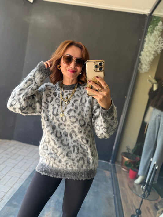Ozi Gri Leopar Kaşmir Kazak