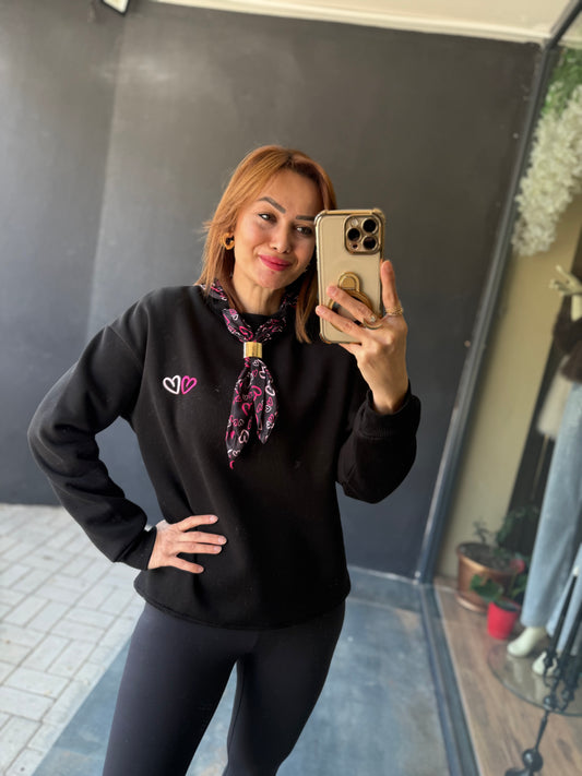 Boho Siyah Aksesuar Detaylı Sweat