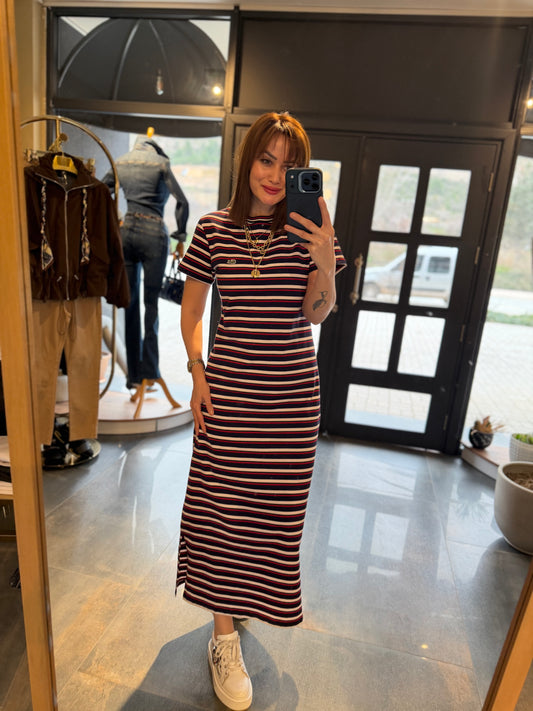 Oste Kahve Çizgili Elbise