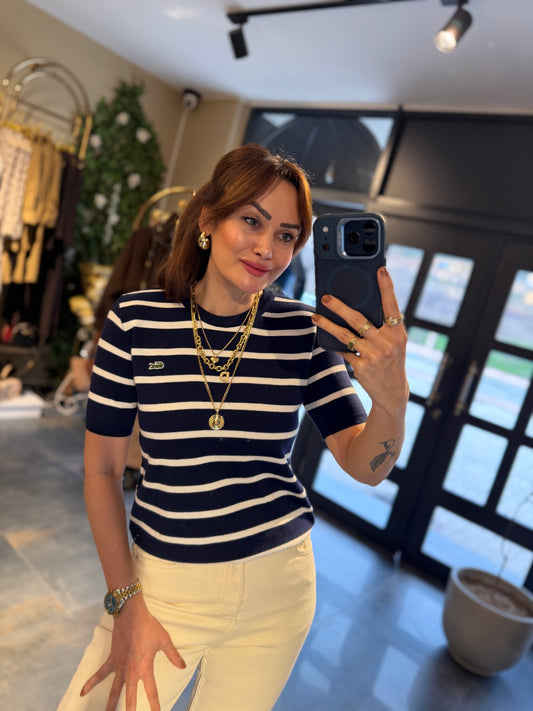 Misse Lacivert /Beyaz Triko Dokulu T-Shirt