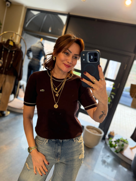 Misse Kahve Triko Dokulu T-Siirt