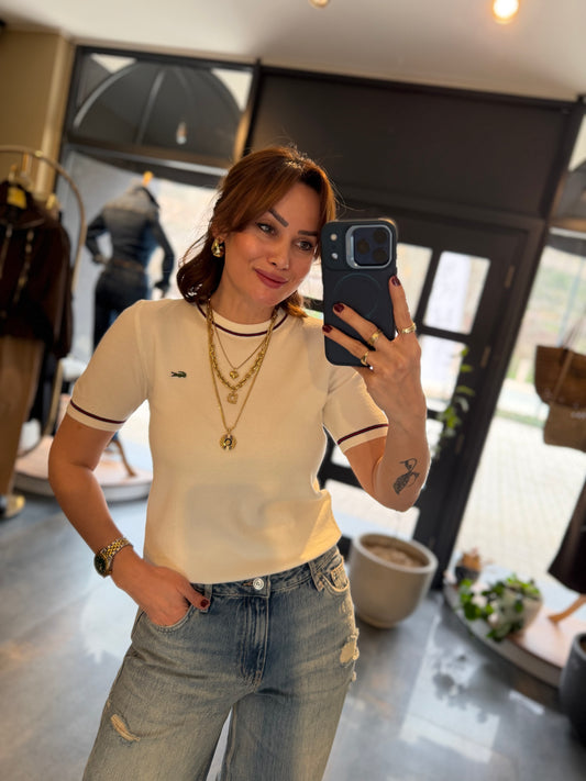 Misse Beyaz Triko Dokulu T-Shirt
