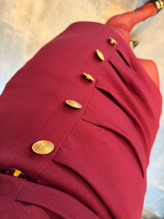 Sumra Bordo Düğmeli Ceket Elbise