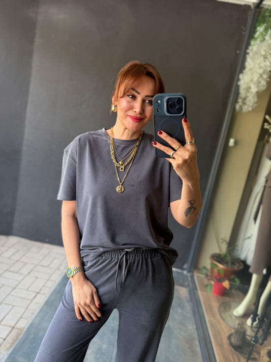 Dark Antrasit Modal Basic T-Shirt