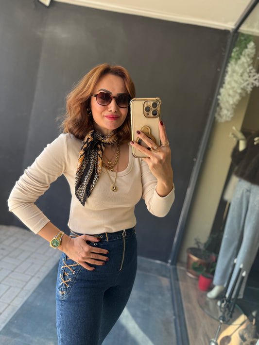 TükendiHayko Bej Basic Bluz