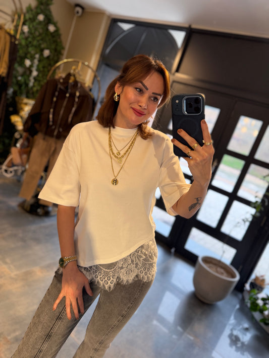 Misse Siyah / Beyaz Triko Dokulu T-Shirt