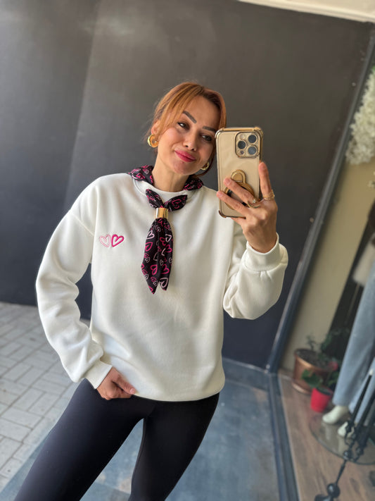 Boho Beyaz Aksesuar Detaylı Sweat