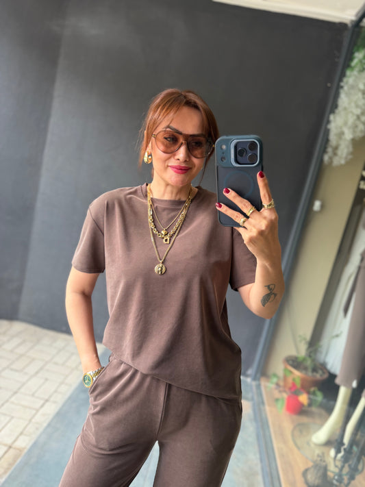 Lost Kahve Pamuklu Saten Broşlu Takım