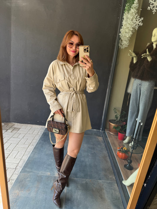 Pesto Kahve Paraşüt Etek&Ceket Takım