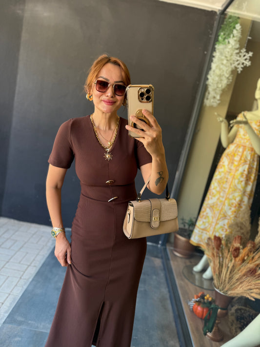 Henna Düğmeli Kısa Kol Kahve Kalem ElbiseNormal fiyat 1,100.00TLNormal fiyatBirim fiyat / /-