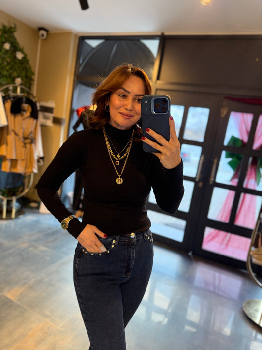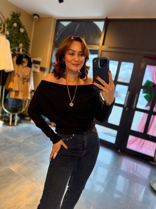 Mysecret Siyah Kayık Yaka Fitilli Bluz