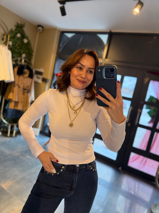 Mysecret Beyaz Kayık Yaka Fitilli Bluz