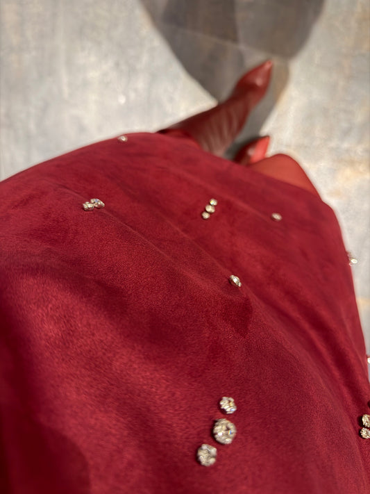 Moss Bordo Süet Taş Detay Elbise