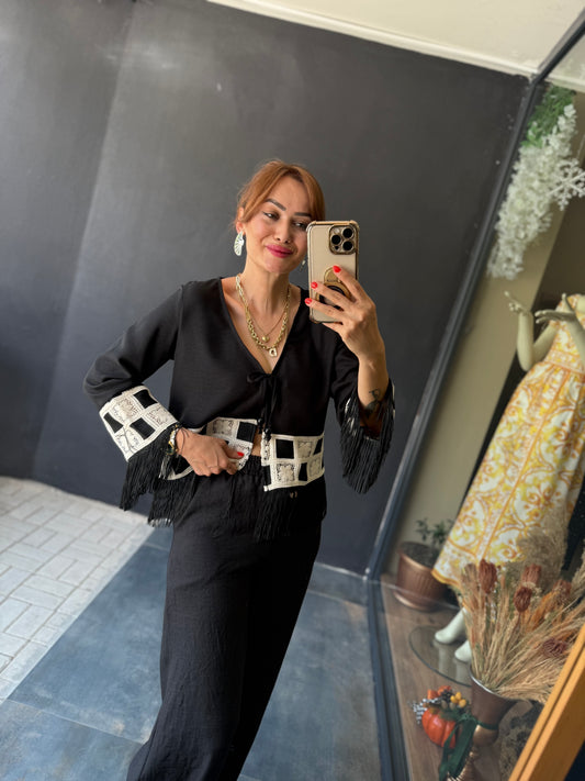 Duygu Aksoy Butik’in kadın pantolon koleksiyonu ile stilinizi tamamlayın! Yüksek bel, bol paça, dar kesim ve klasik modellerle her tarza ve ihtiyaca uygun pantolon seçenekleri sunuyoruz. Günlük kombinlerden ofis şıklığına kadar geniş kullanım alanına sahip pantolonlarımız, modern tasarımlarıyla 2025 sezonunun trendlerini yansıtıyor. Tarzınızı ön plana çıkarmak için koleksiyonumuzu keşfedin!