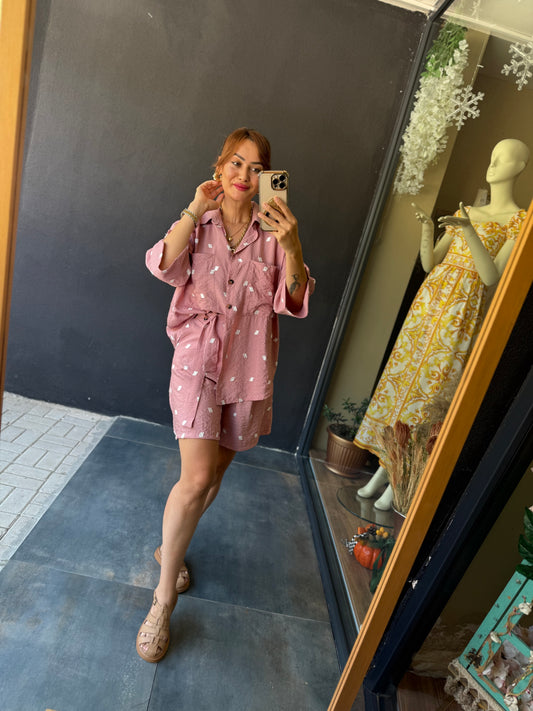 Astra Pembe Şort & Gömlek Takım