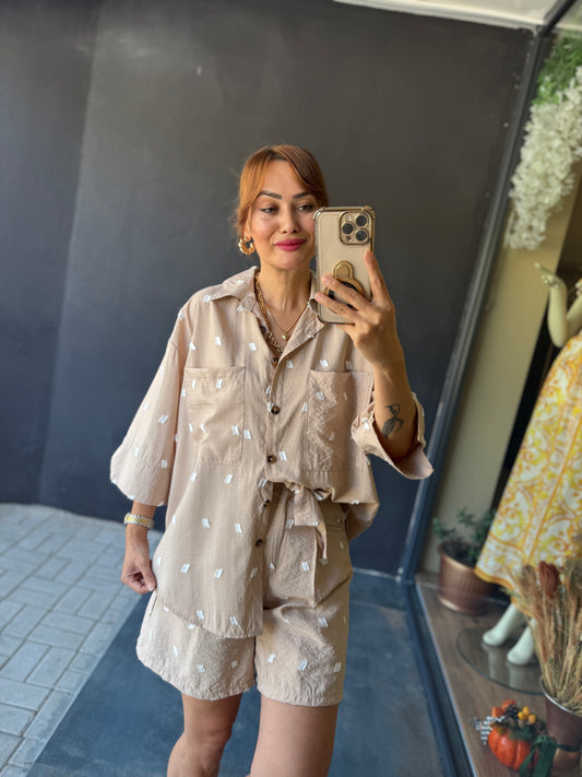 Astra Krem Şort & Gömlek Takım