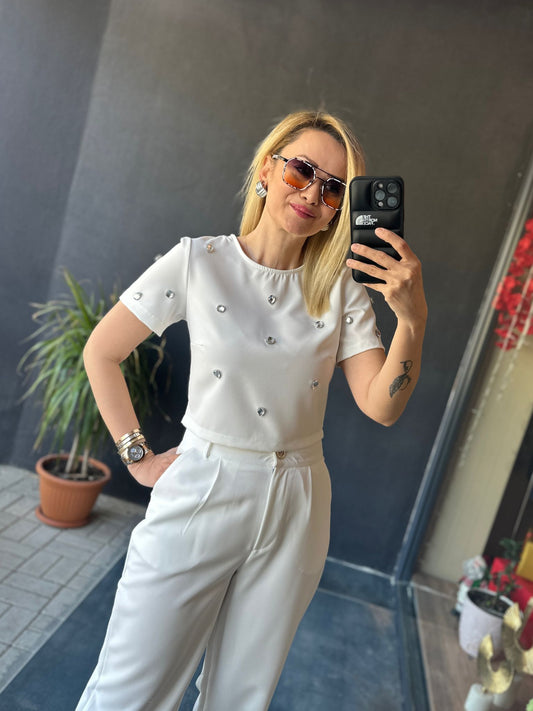Athena Beyaz Palazzo Takım