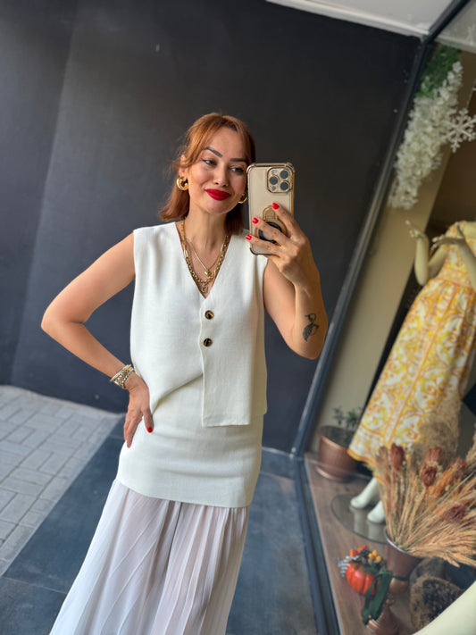 Marina Beyaz Etek & Gömlek Takım