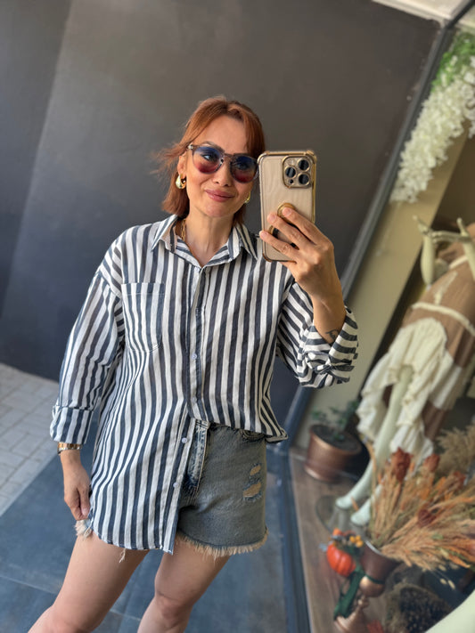 Bısou Lacivert Çizgili Gömlek