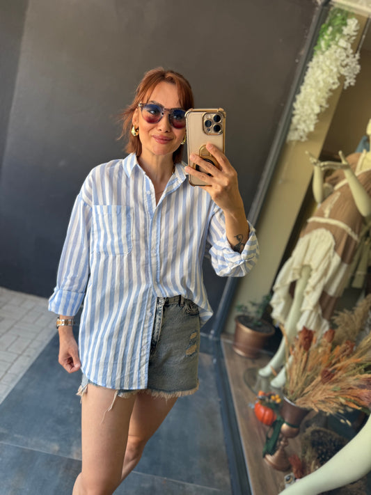 Bısou Mavi Çizgili 2 Gömlek