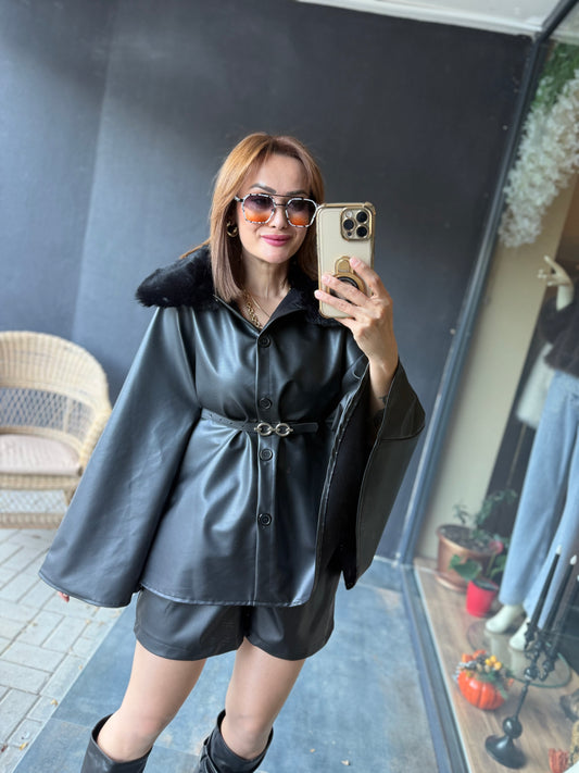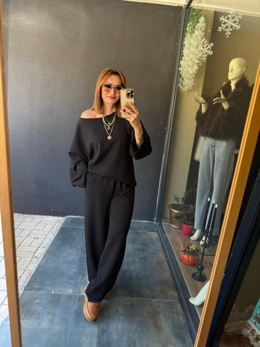 Tria Siyah Düğmeli Etek & Hırka Takım