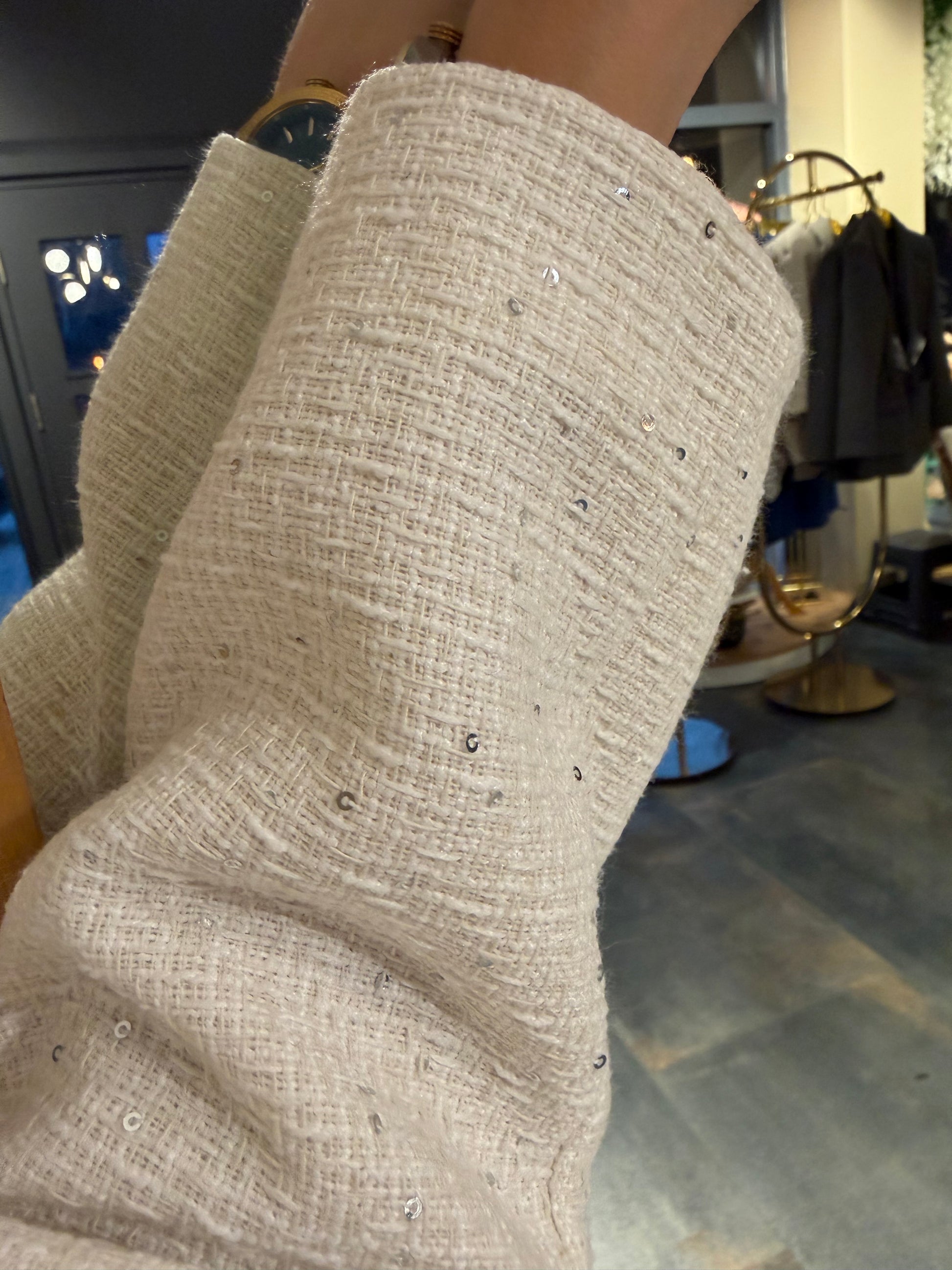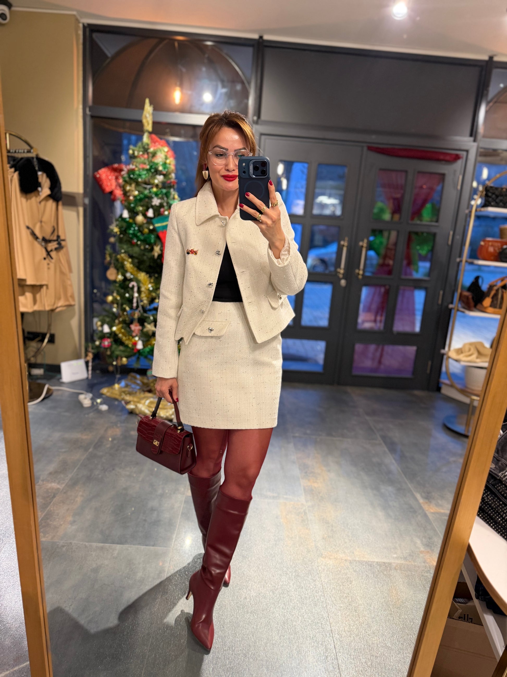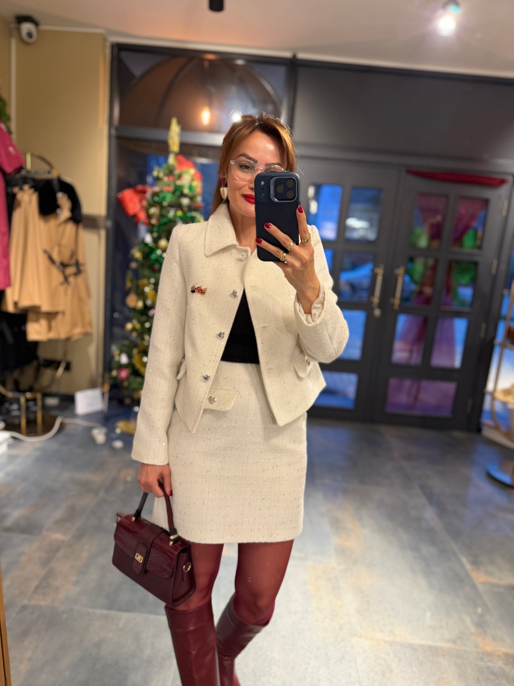 Ahel Beyaz Tuvid Etek & Ceket Takım