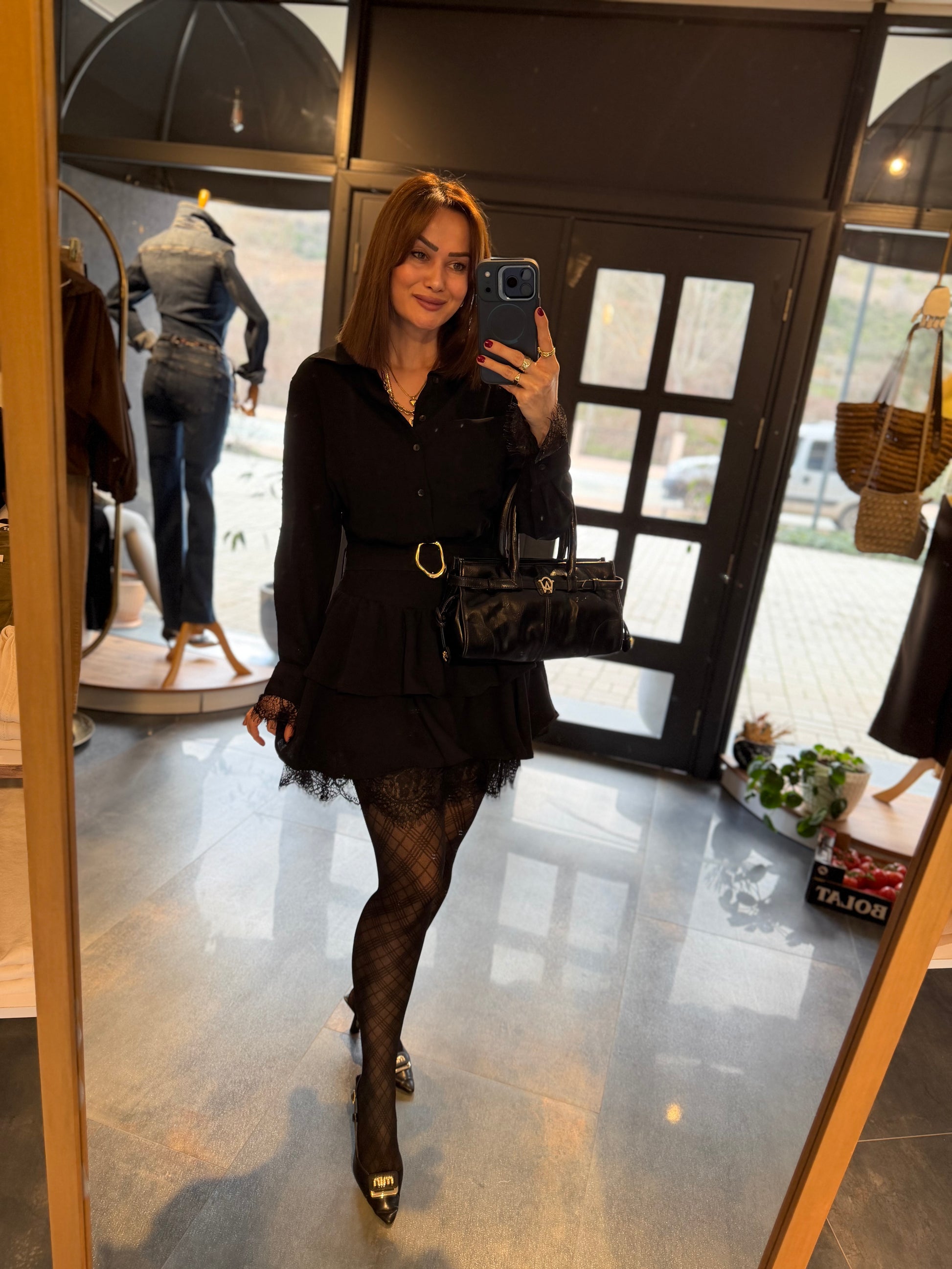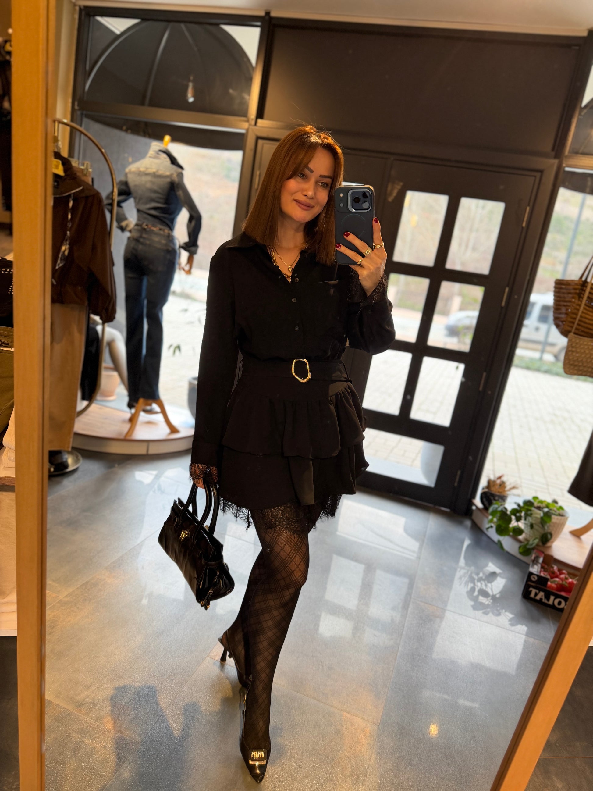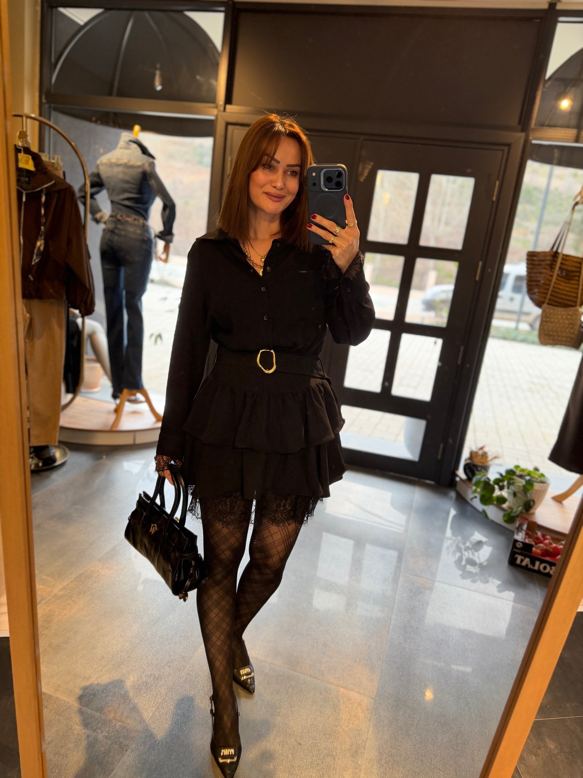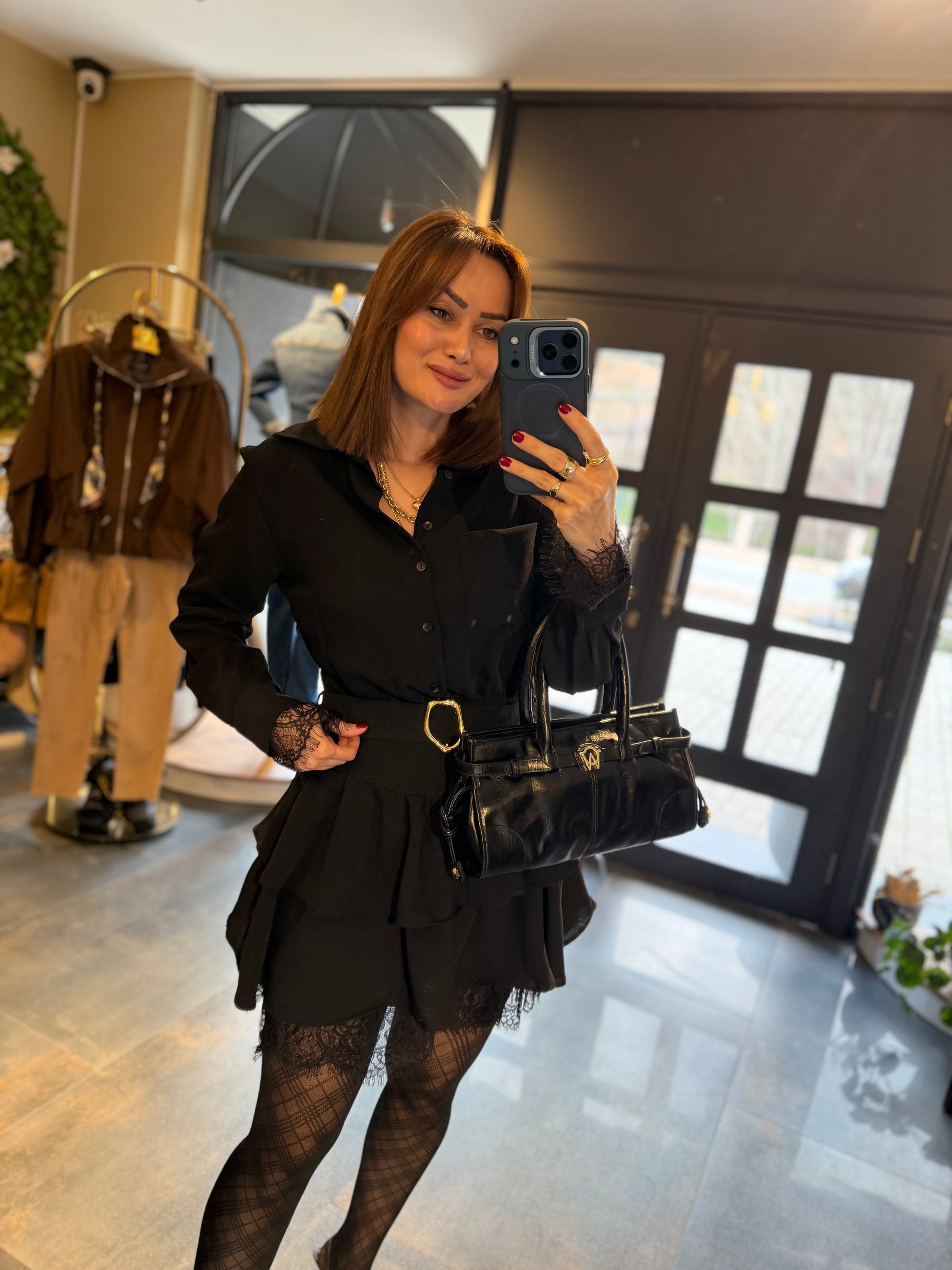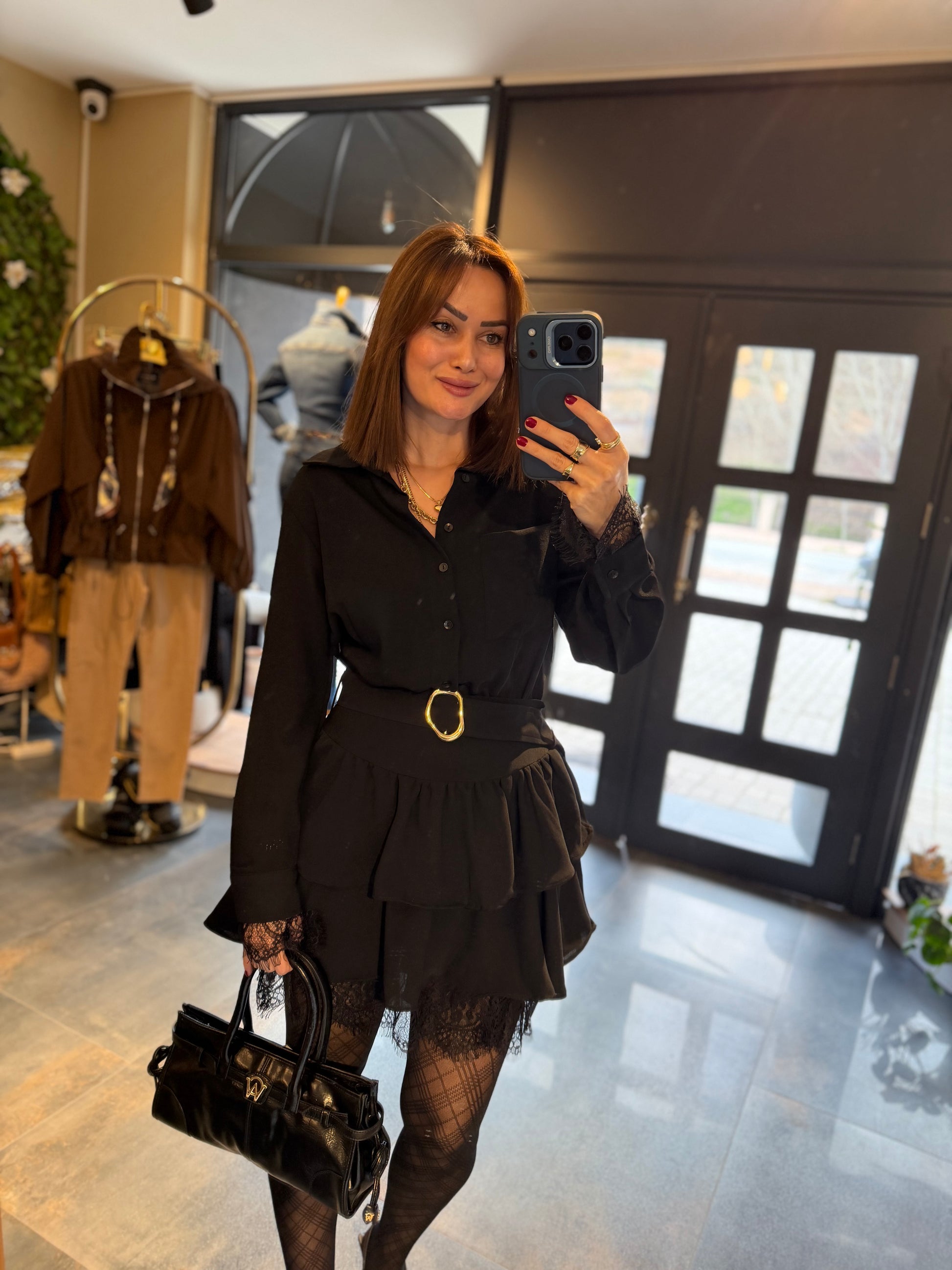 Angeles Siyah Dantel Detaylı Elbise
