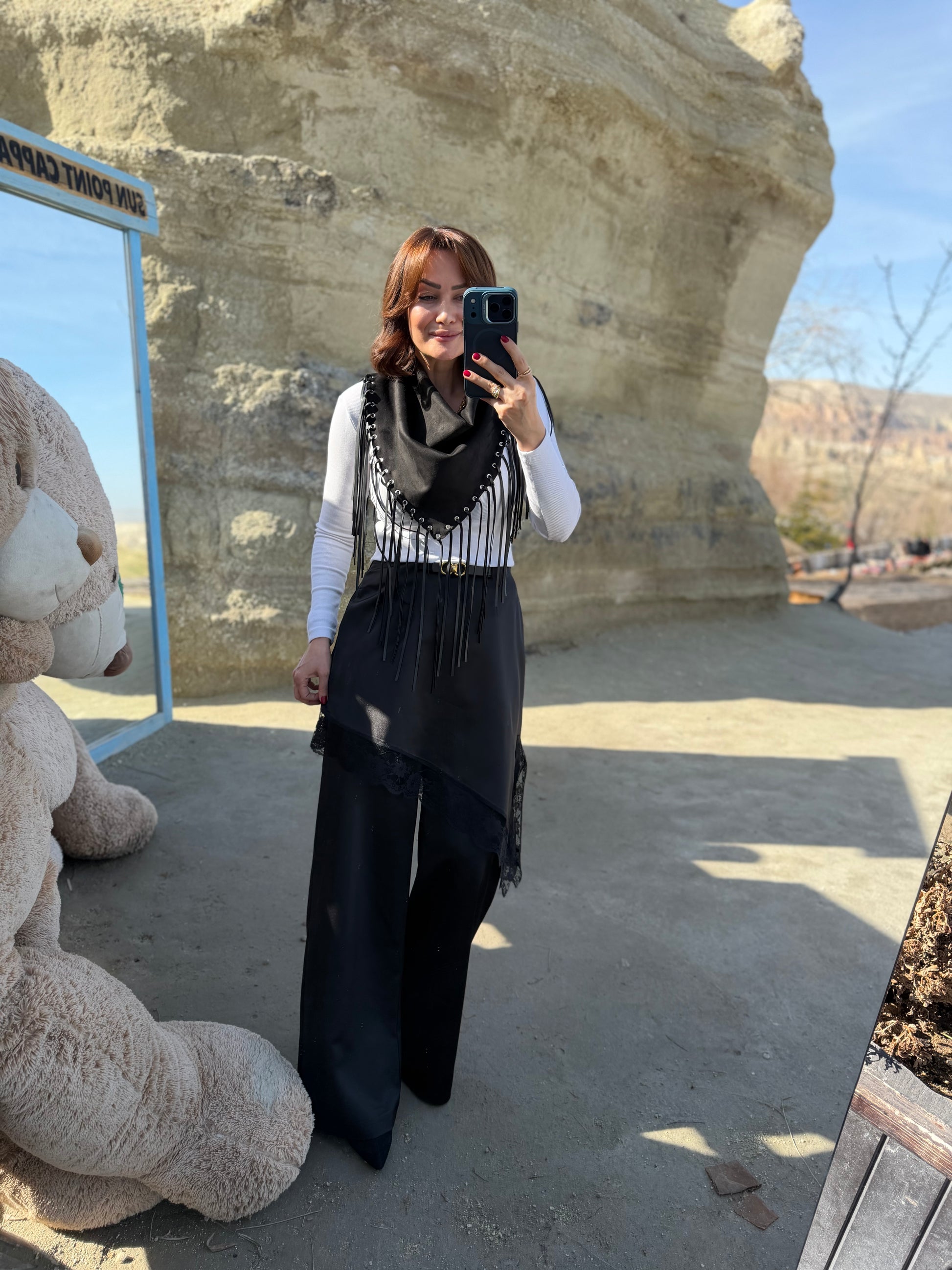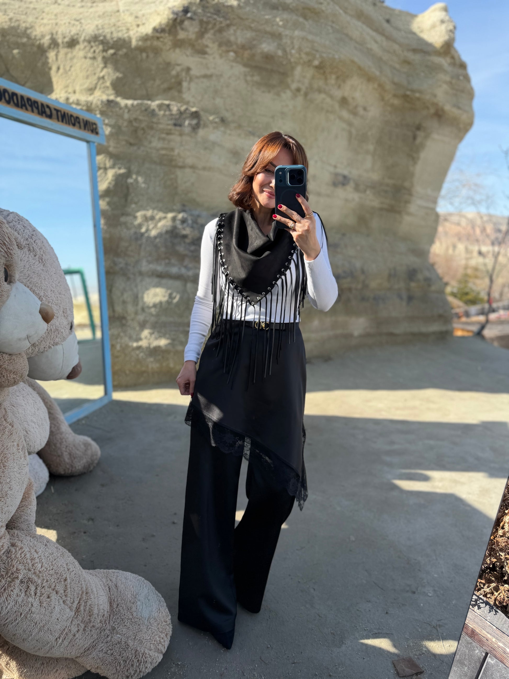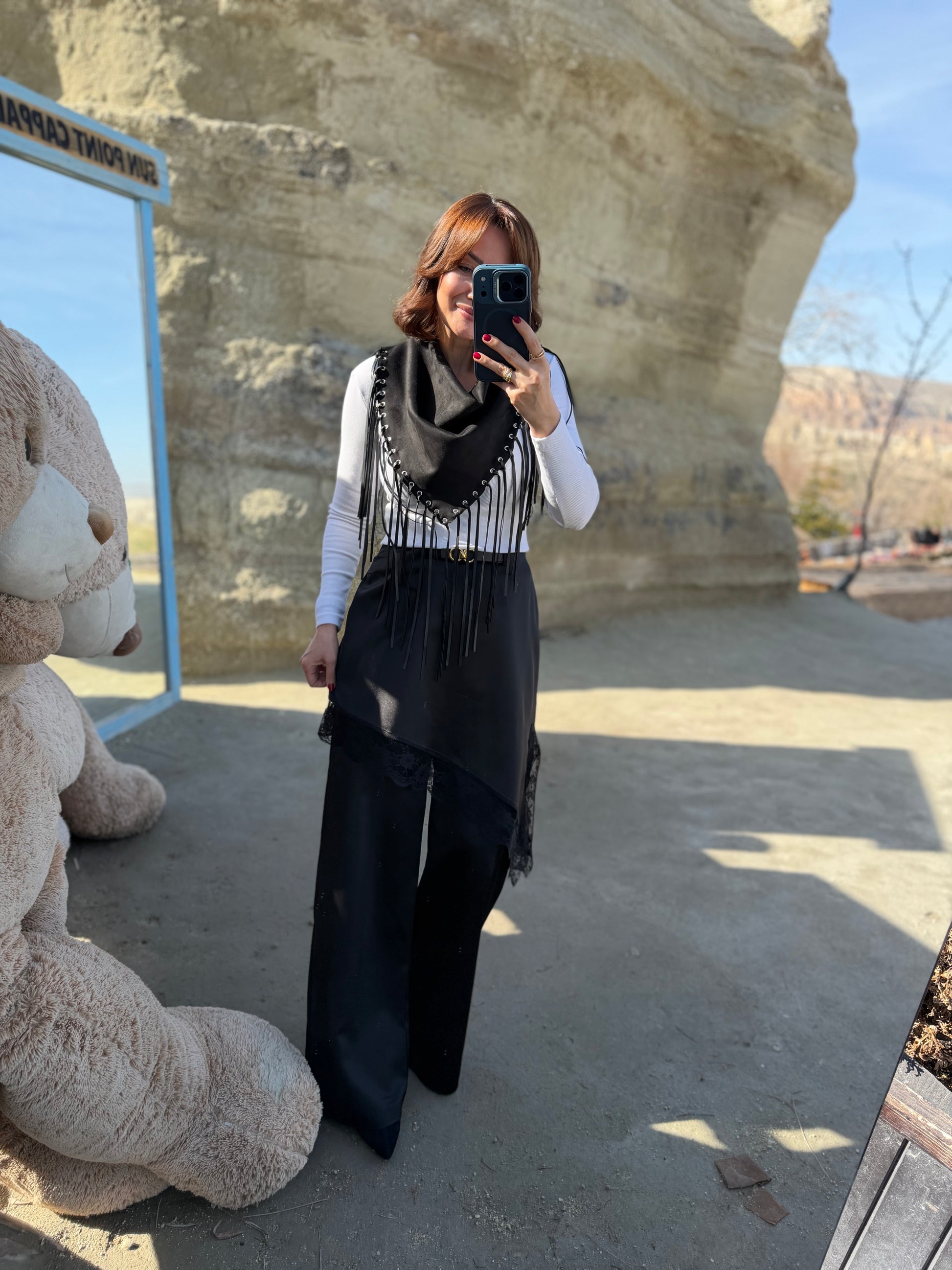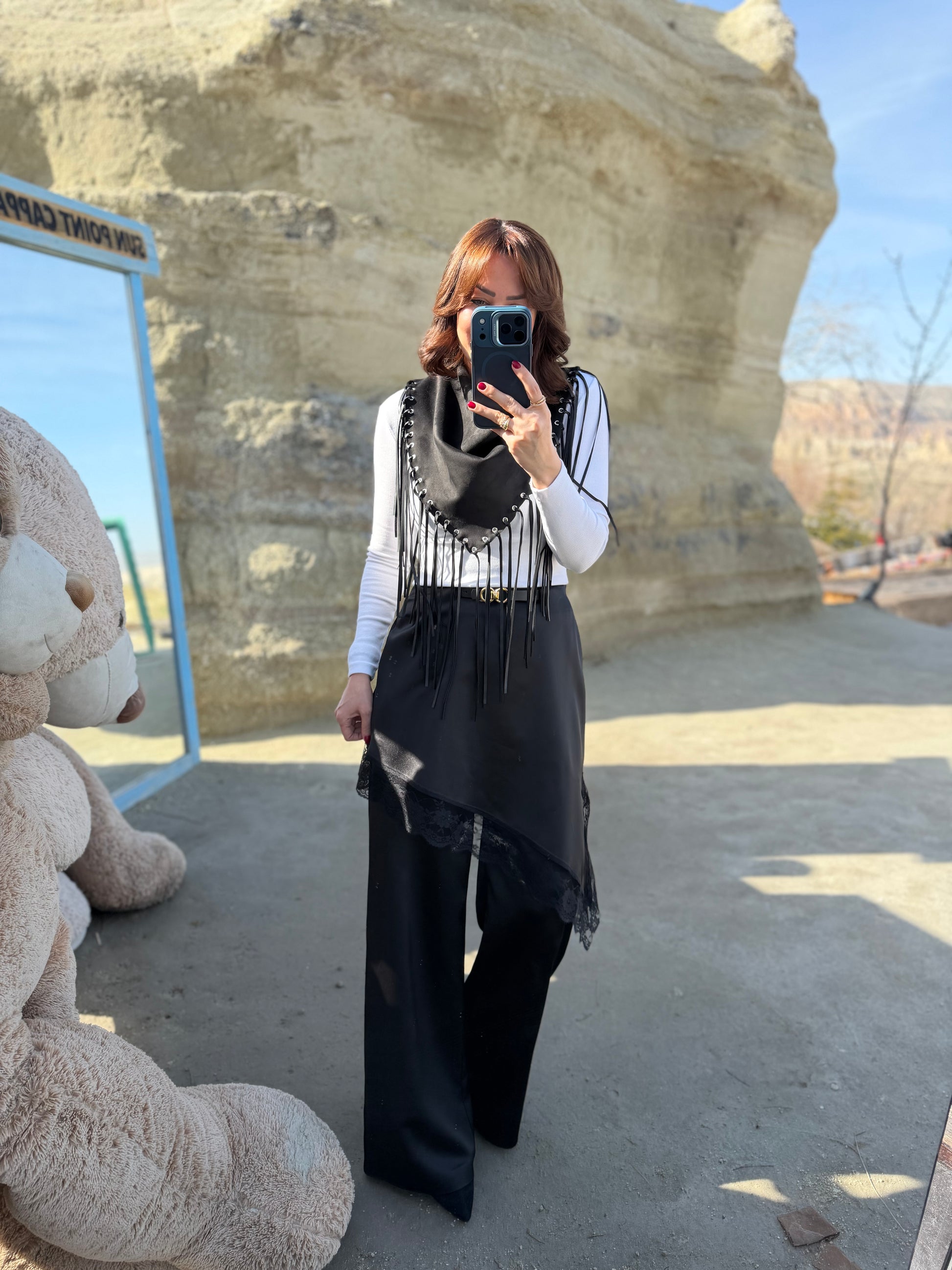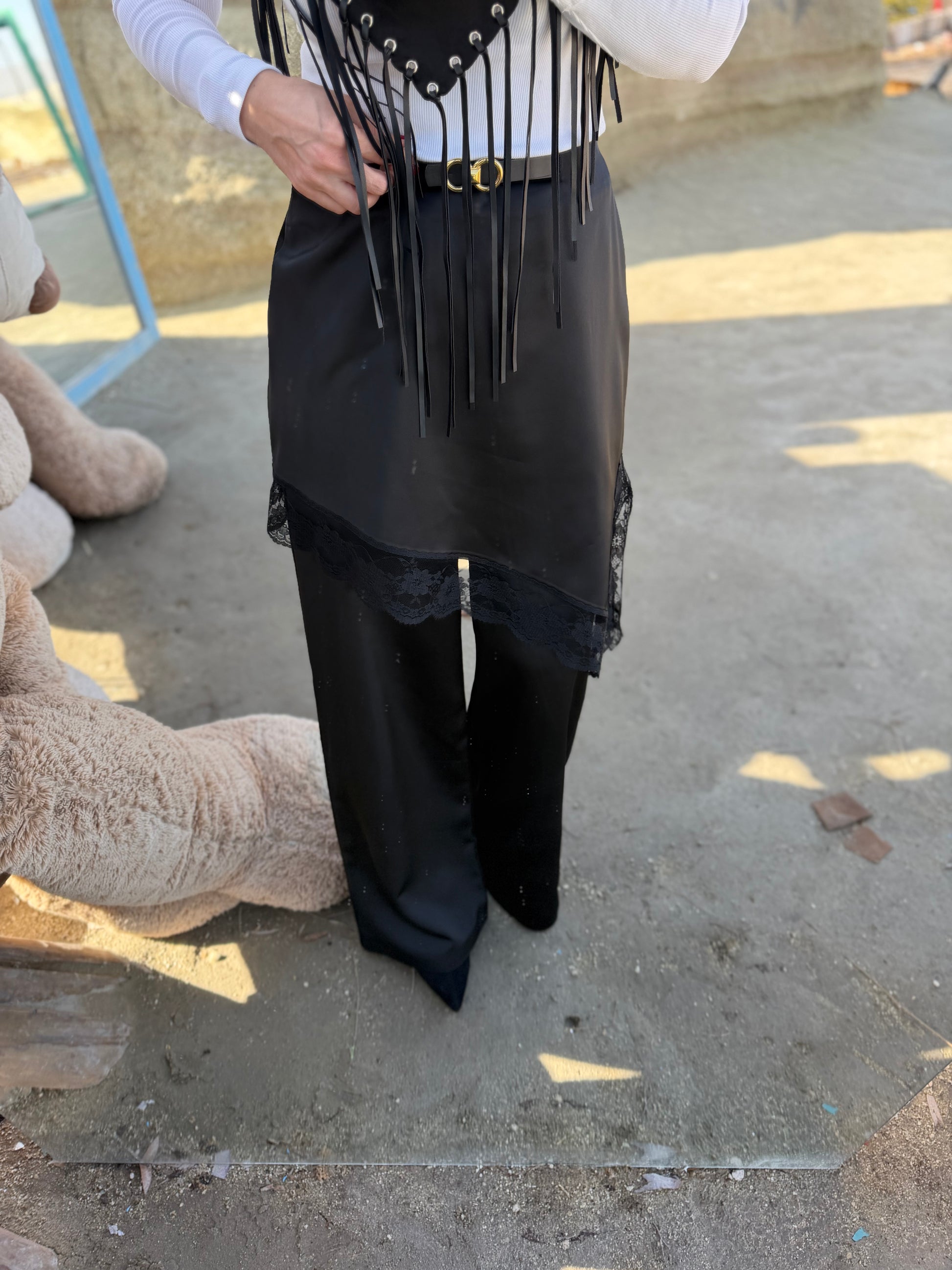 Avanos Siyah Dantelli Etek Pantolon