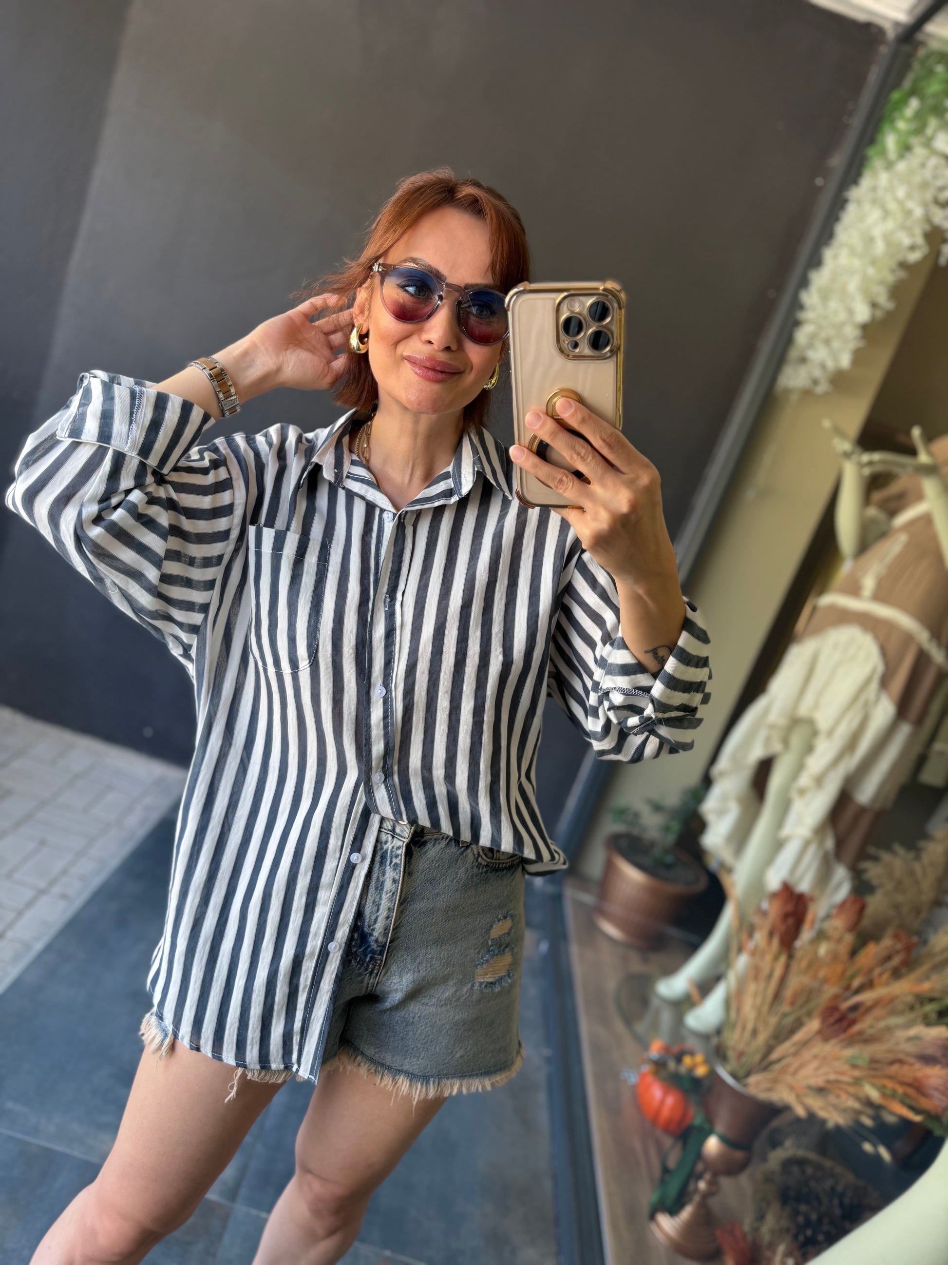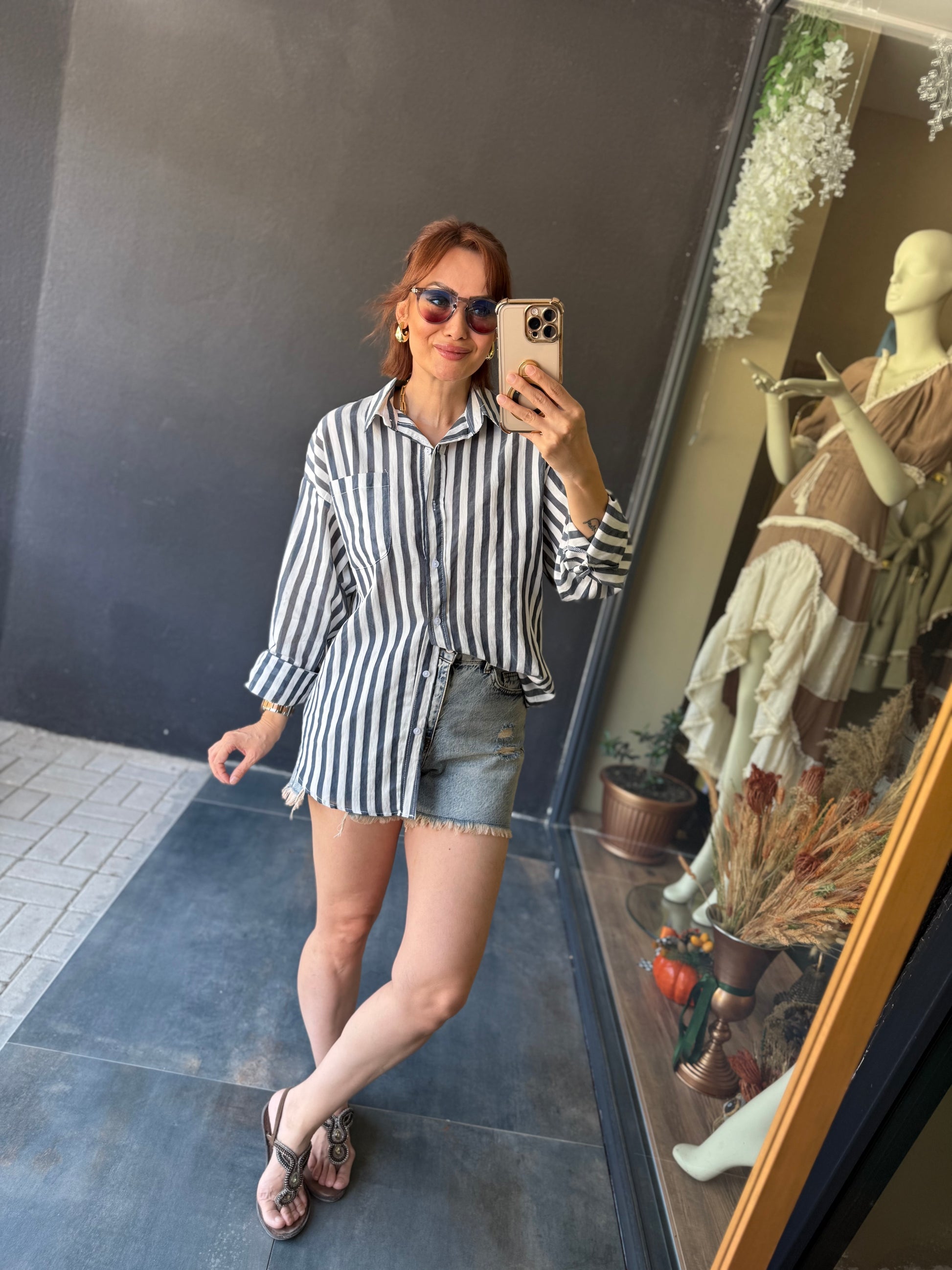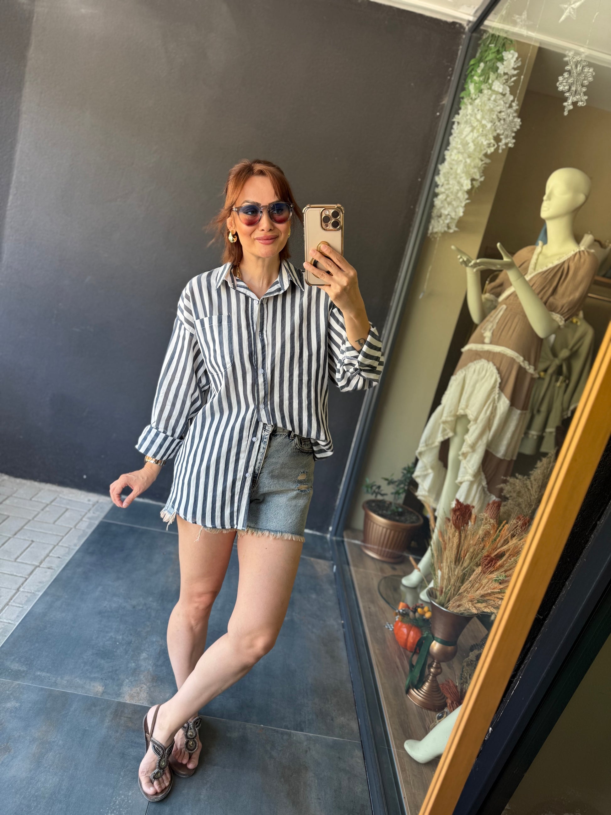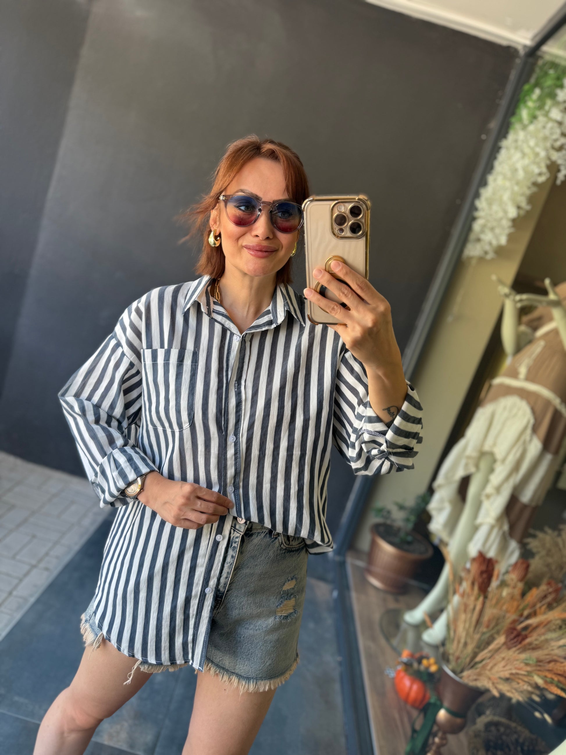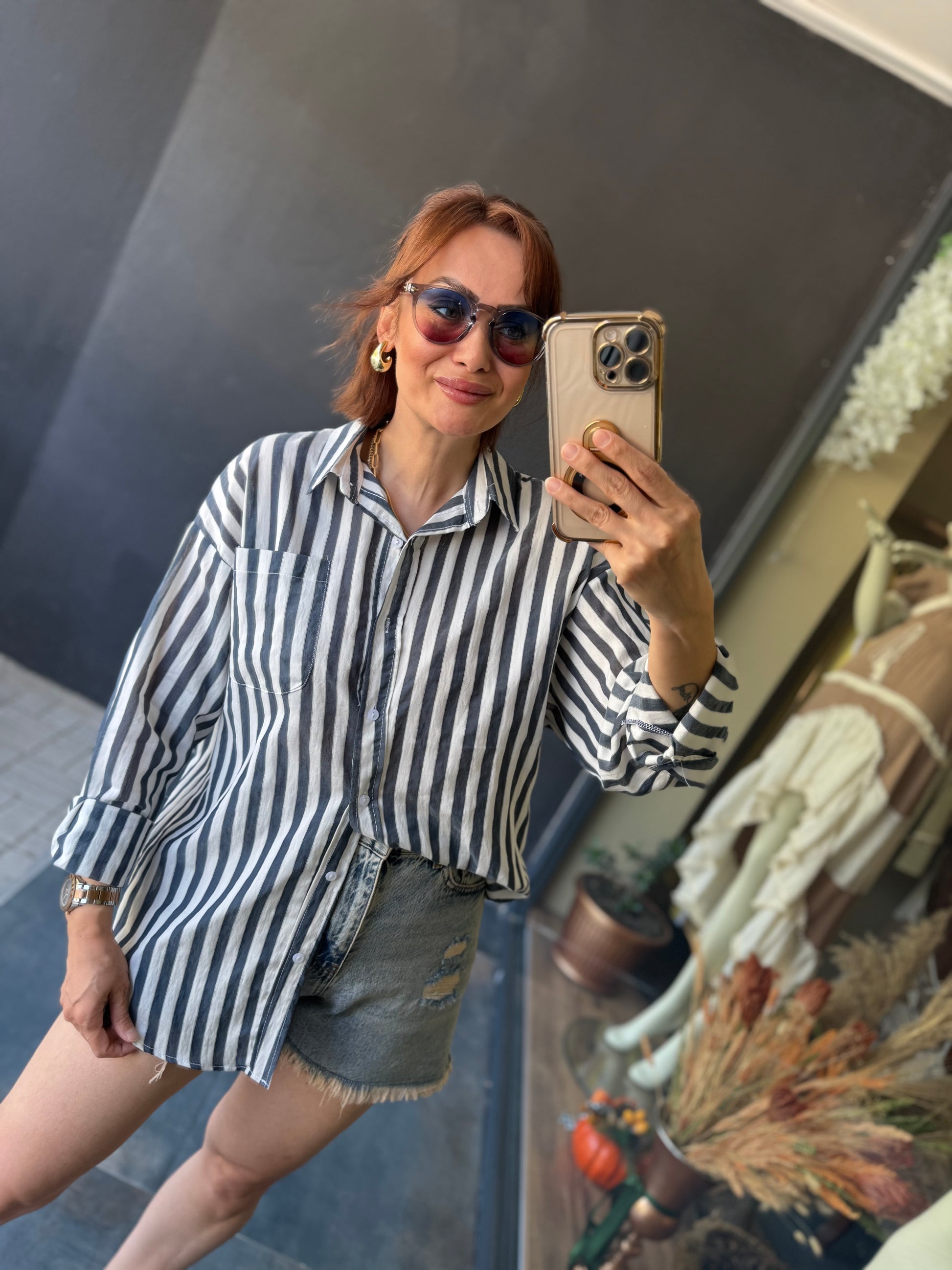 Bısou Lacivert Çizgili Gömlek