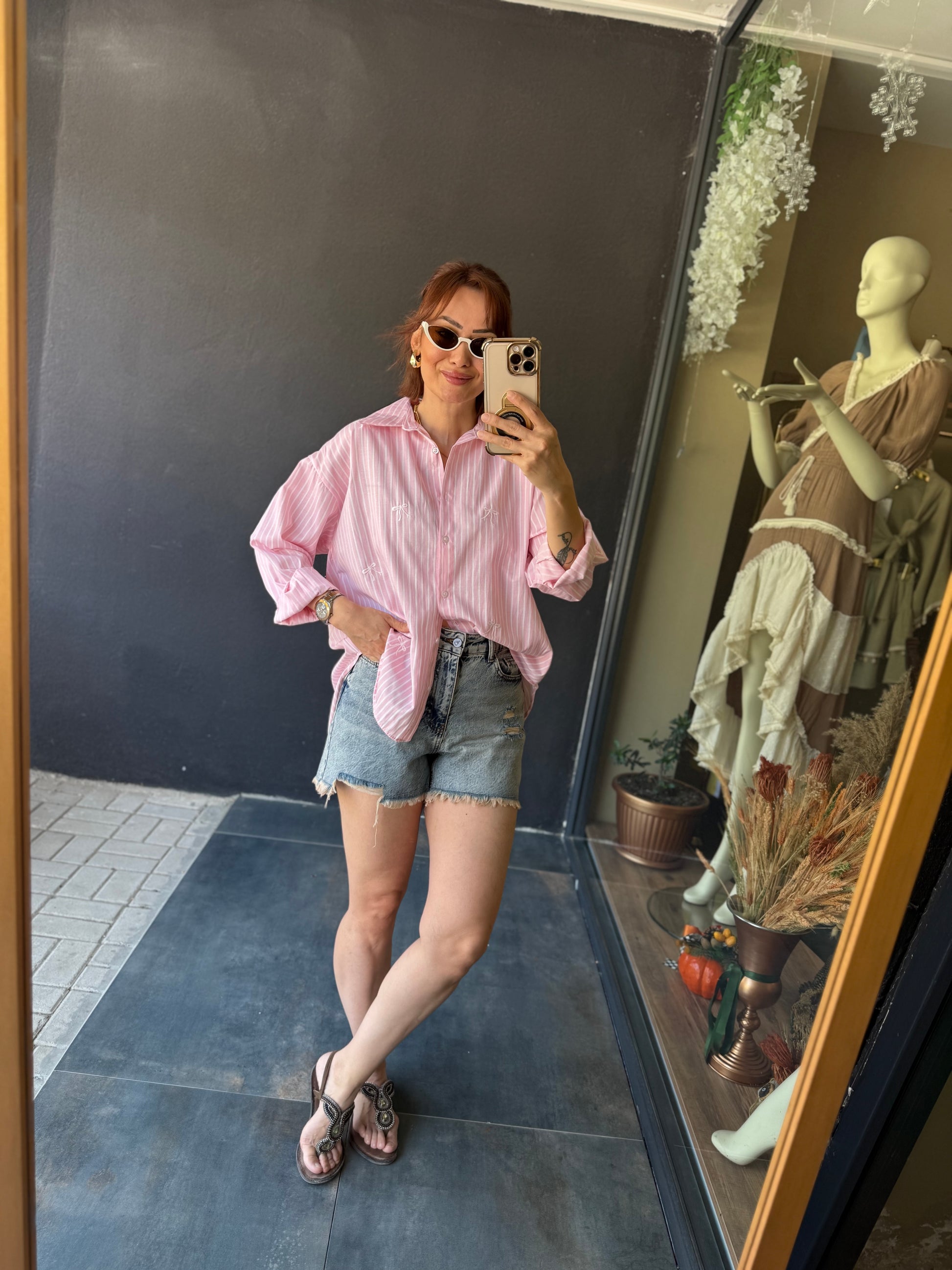 Bısou Pembe Fiyonk Nakışlı Gömlek