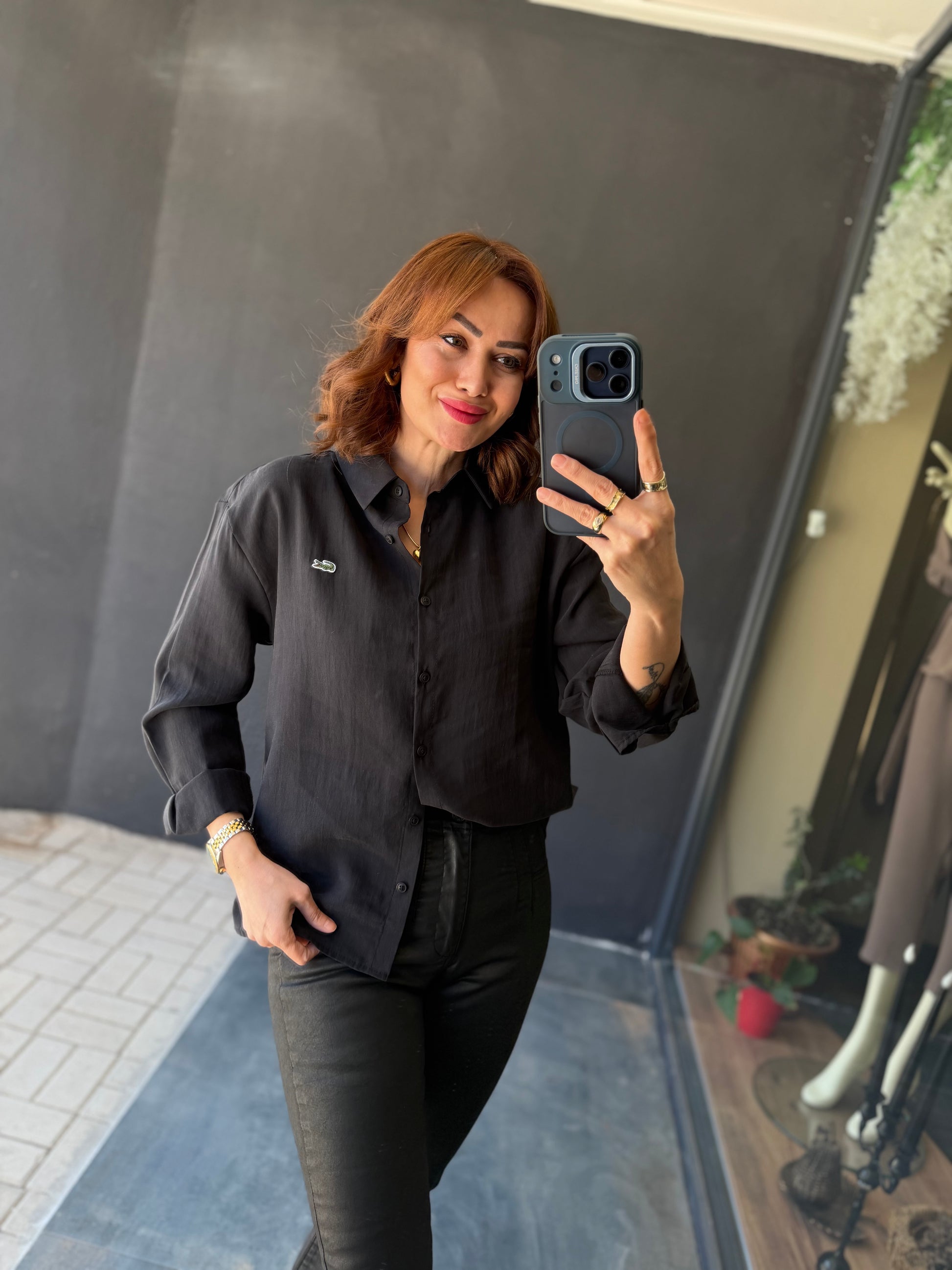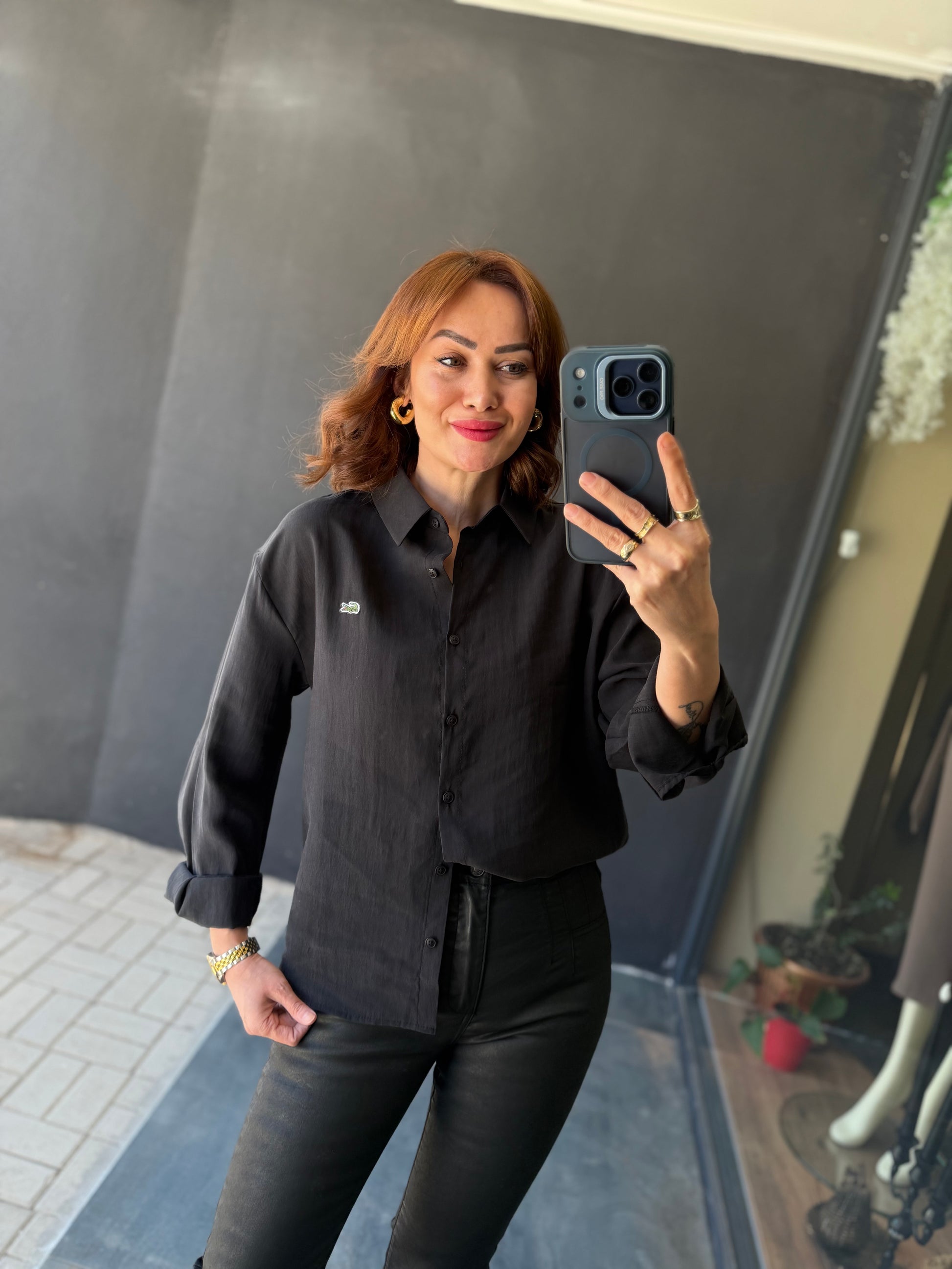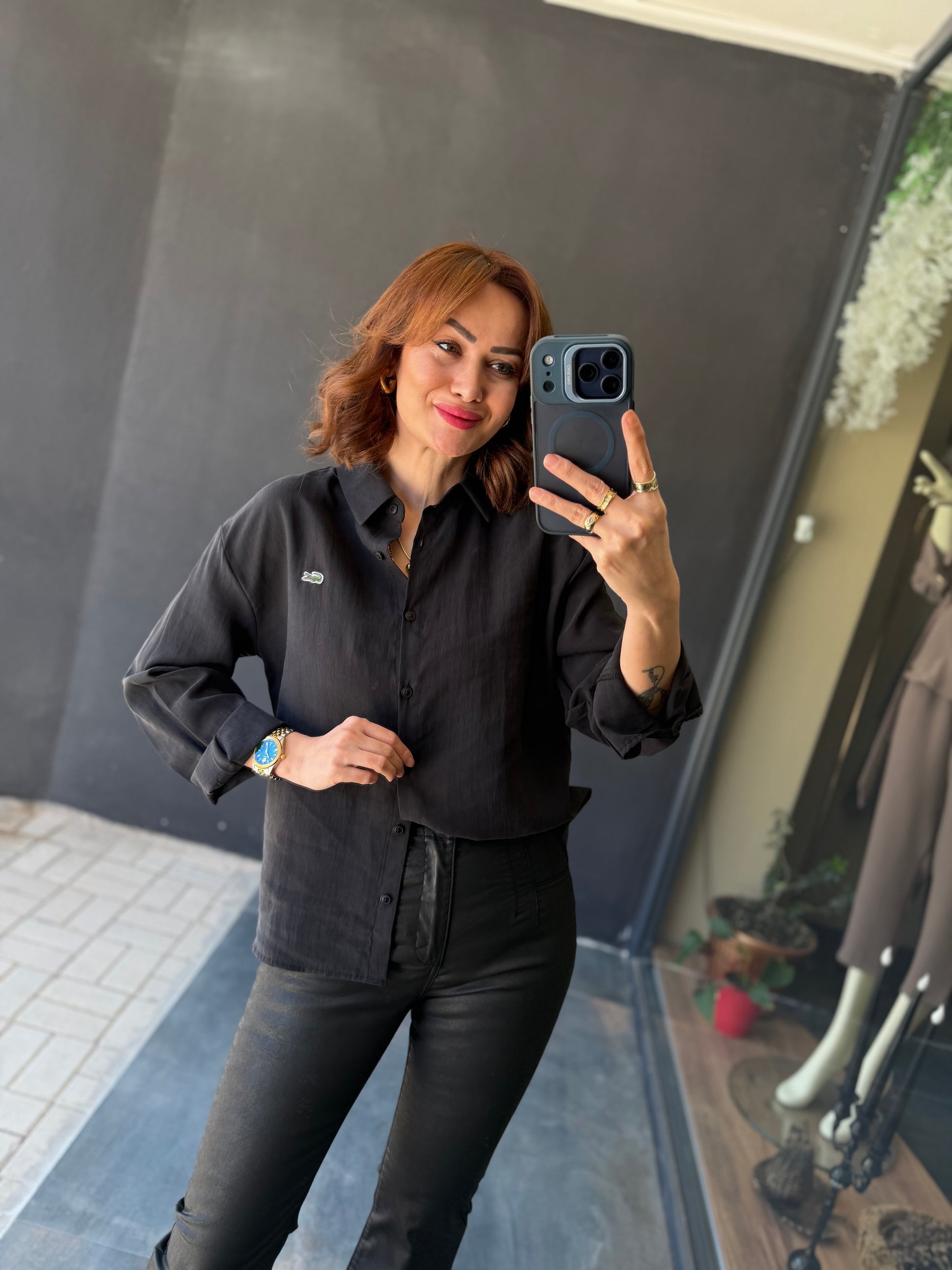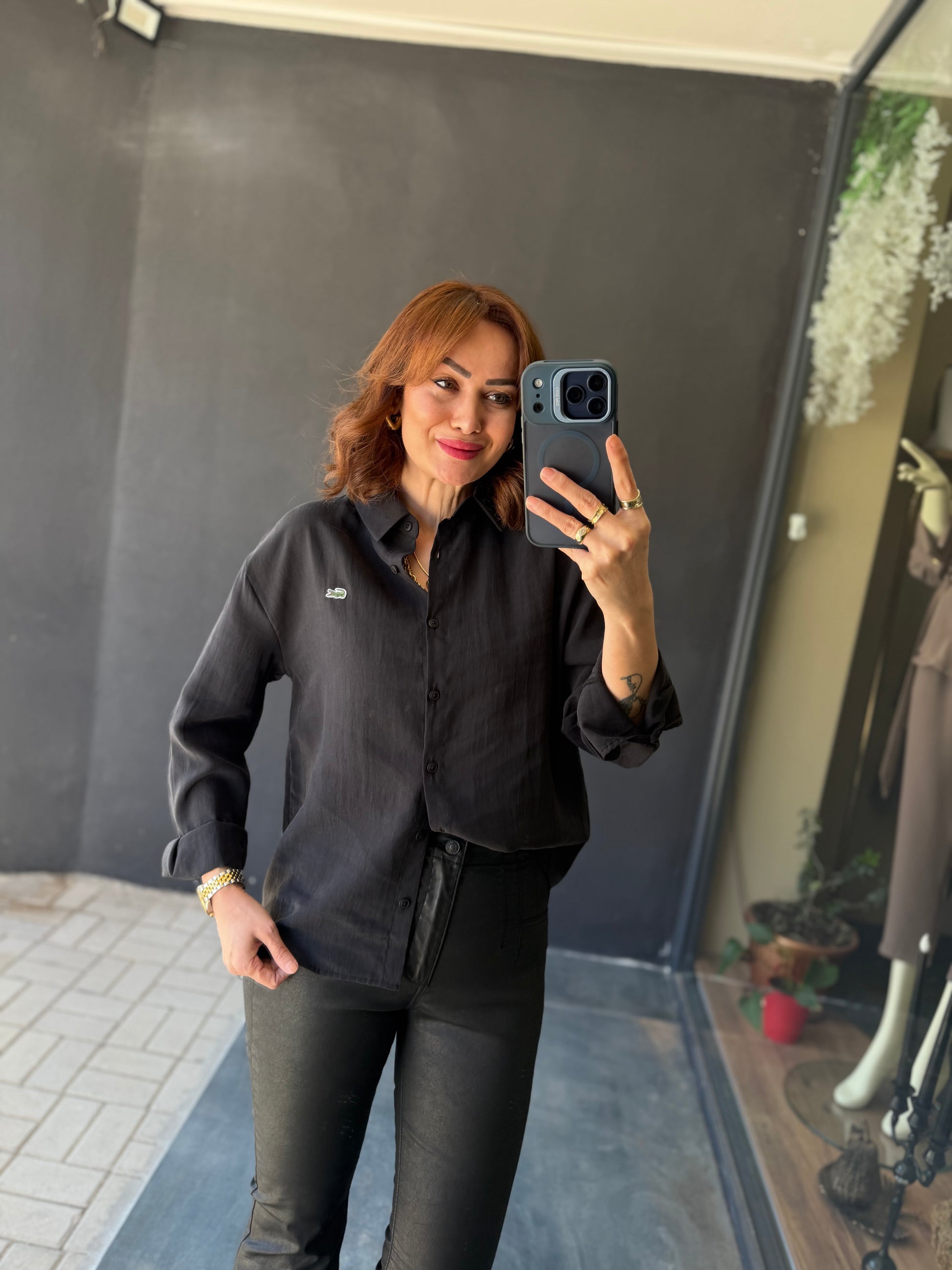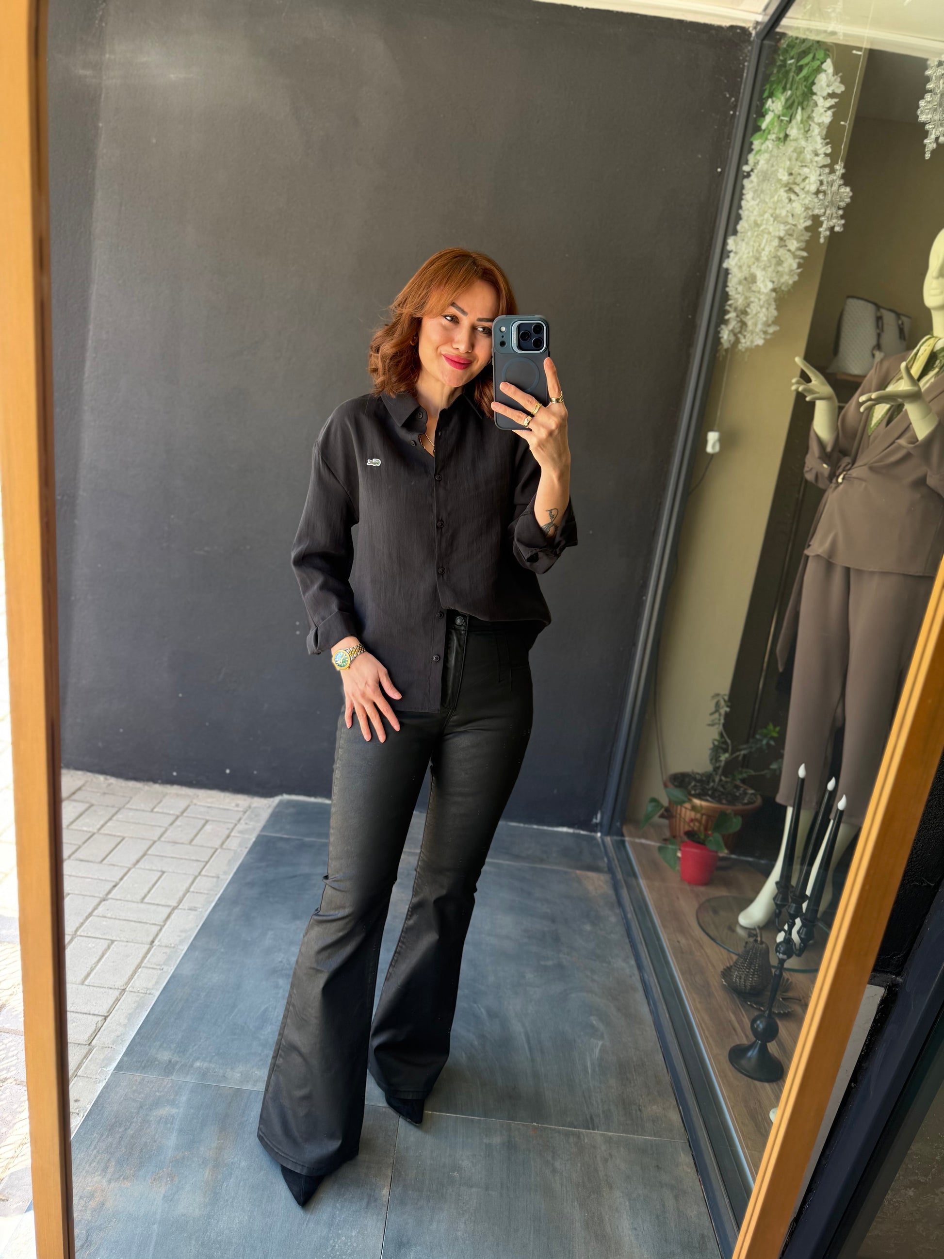 Burn Siyah Tensel Gömlek