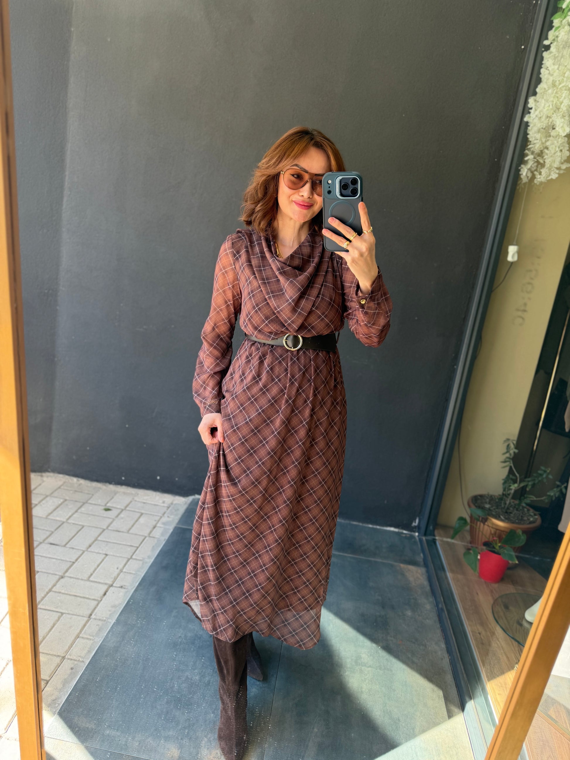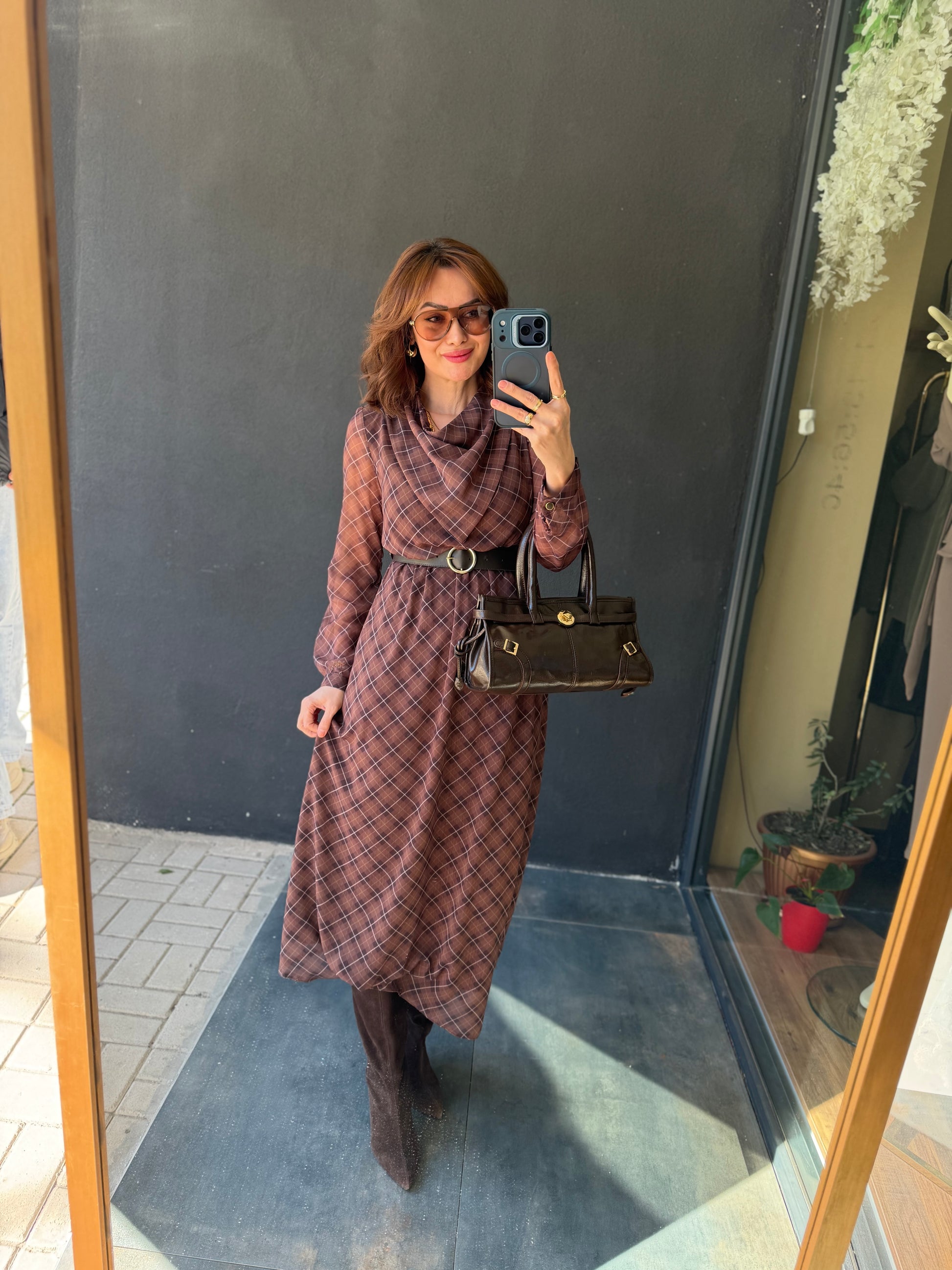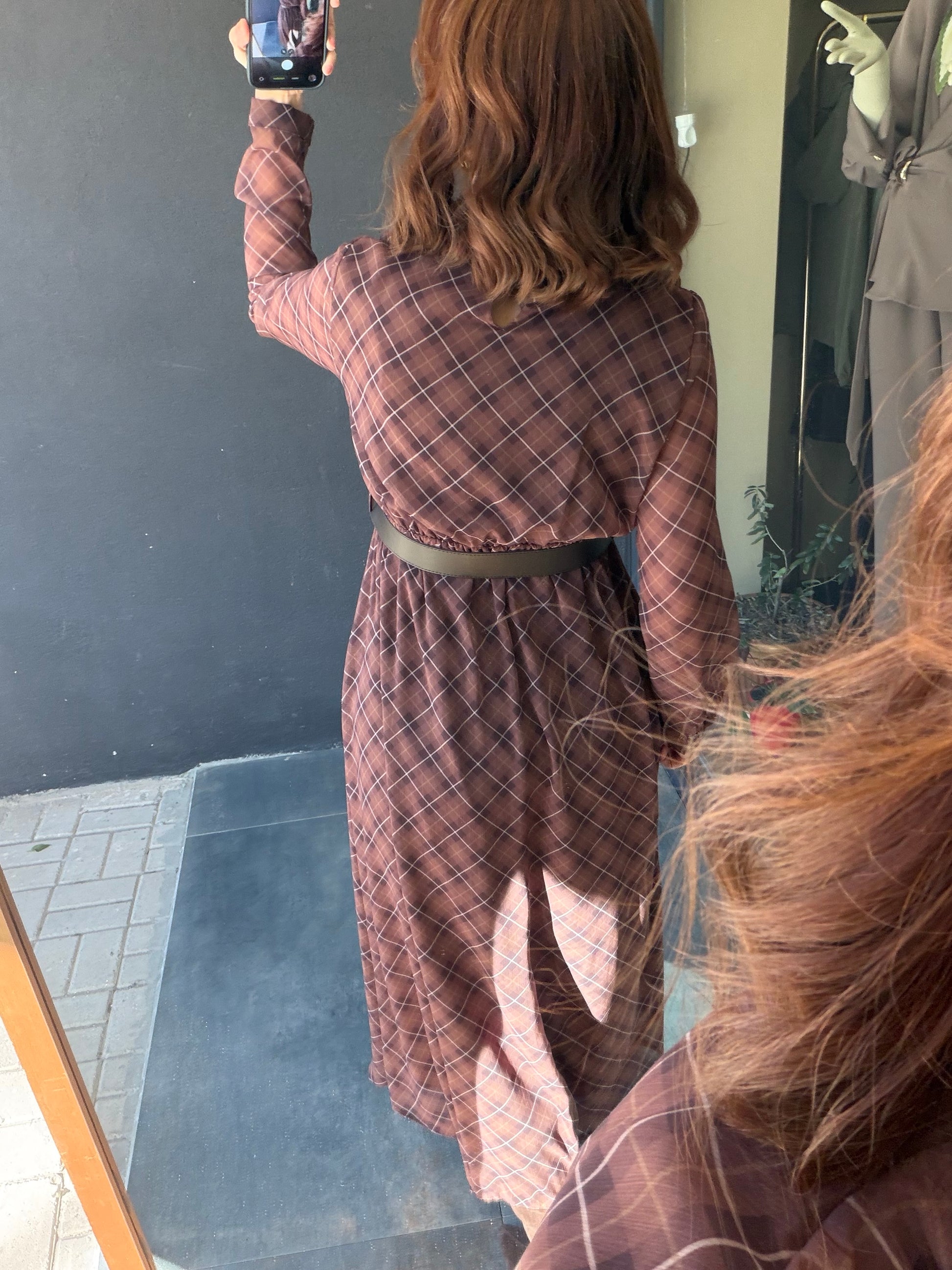 Capo Kemerli Kahve Şifon Elbise