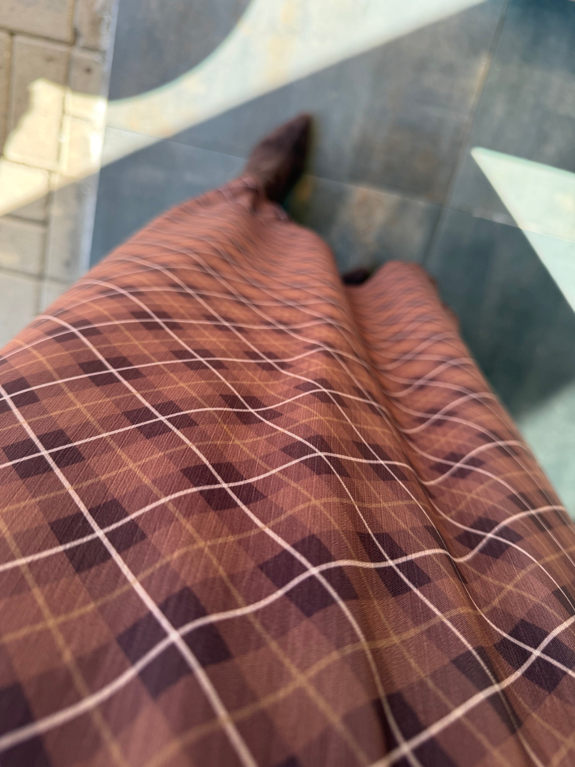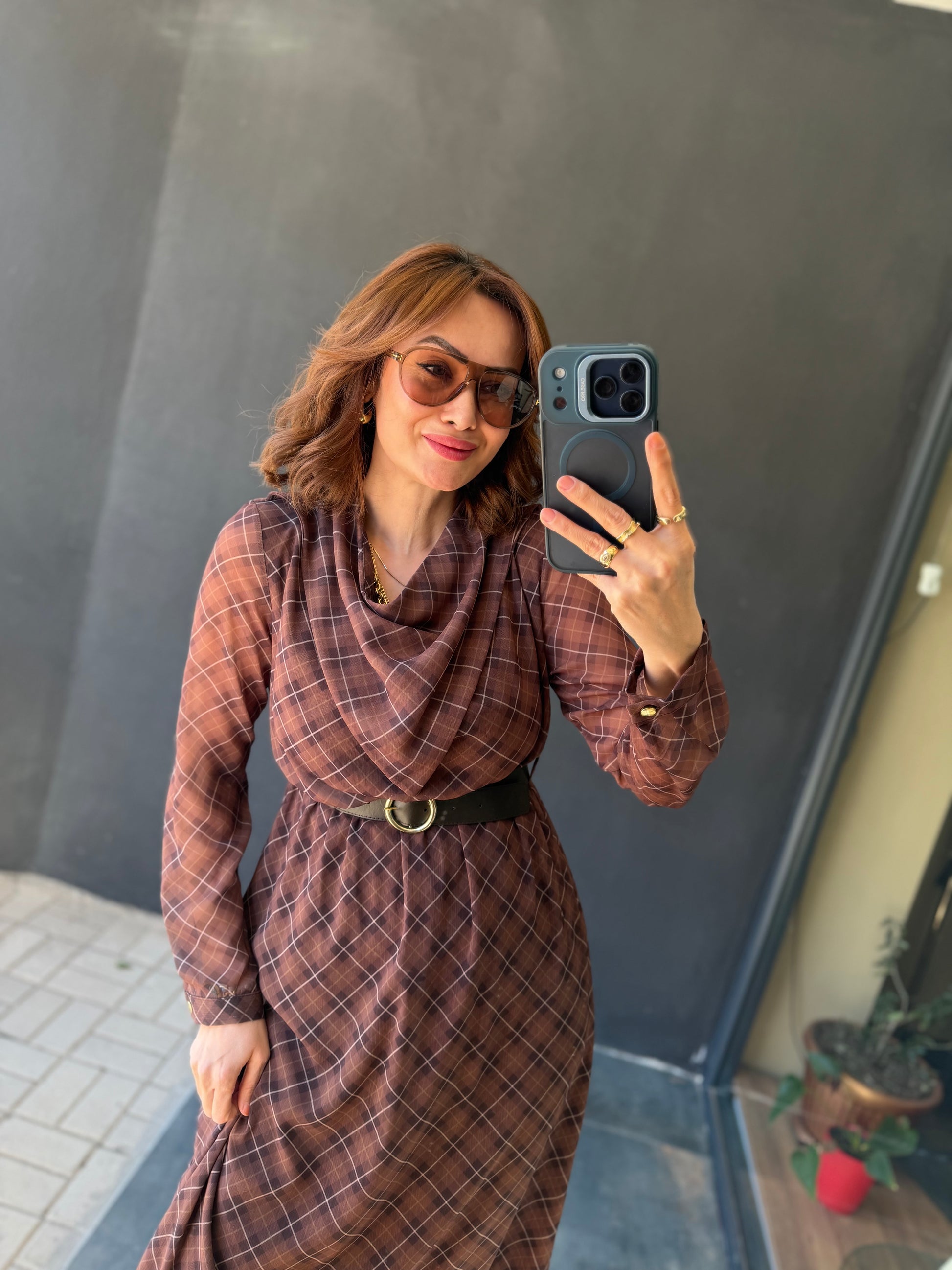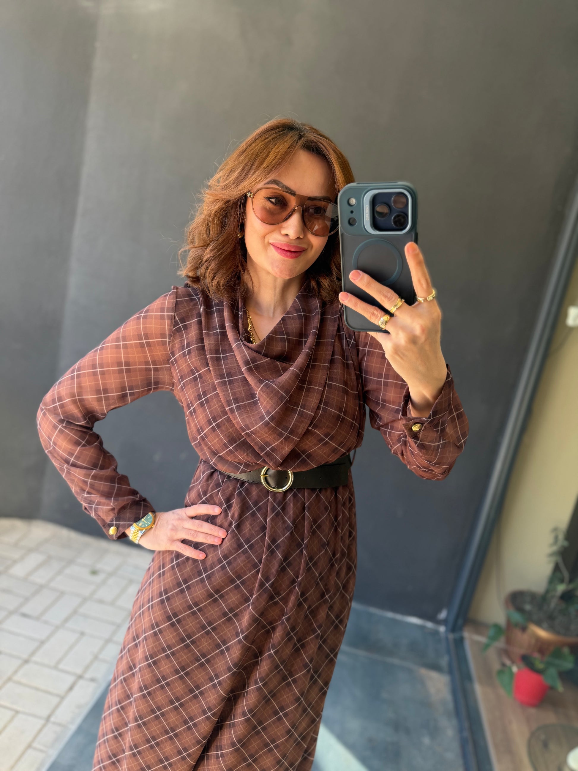 Capo Kemerli Kahve Şifon Elbise
