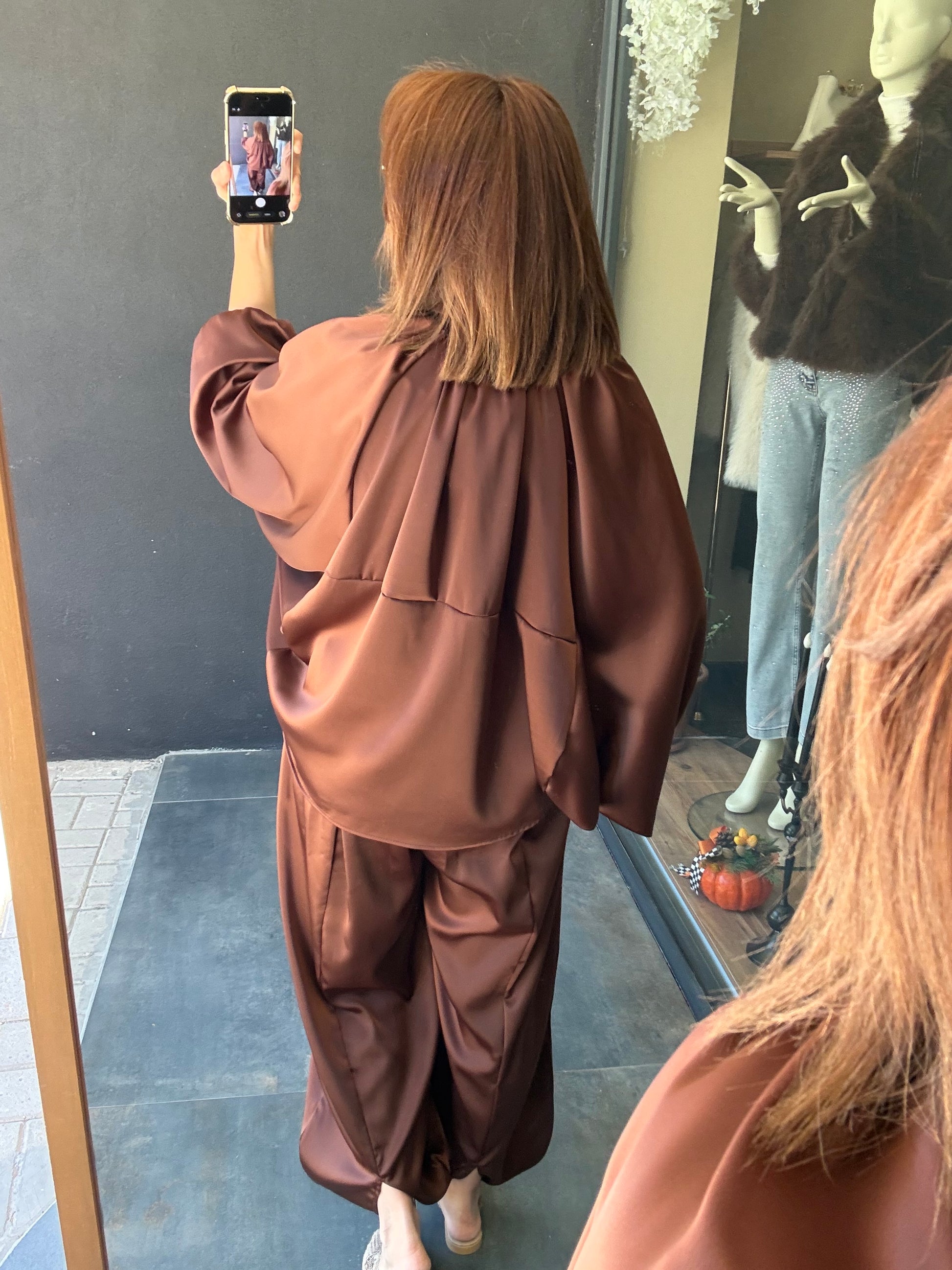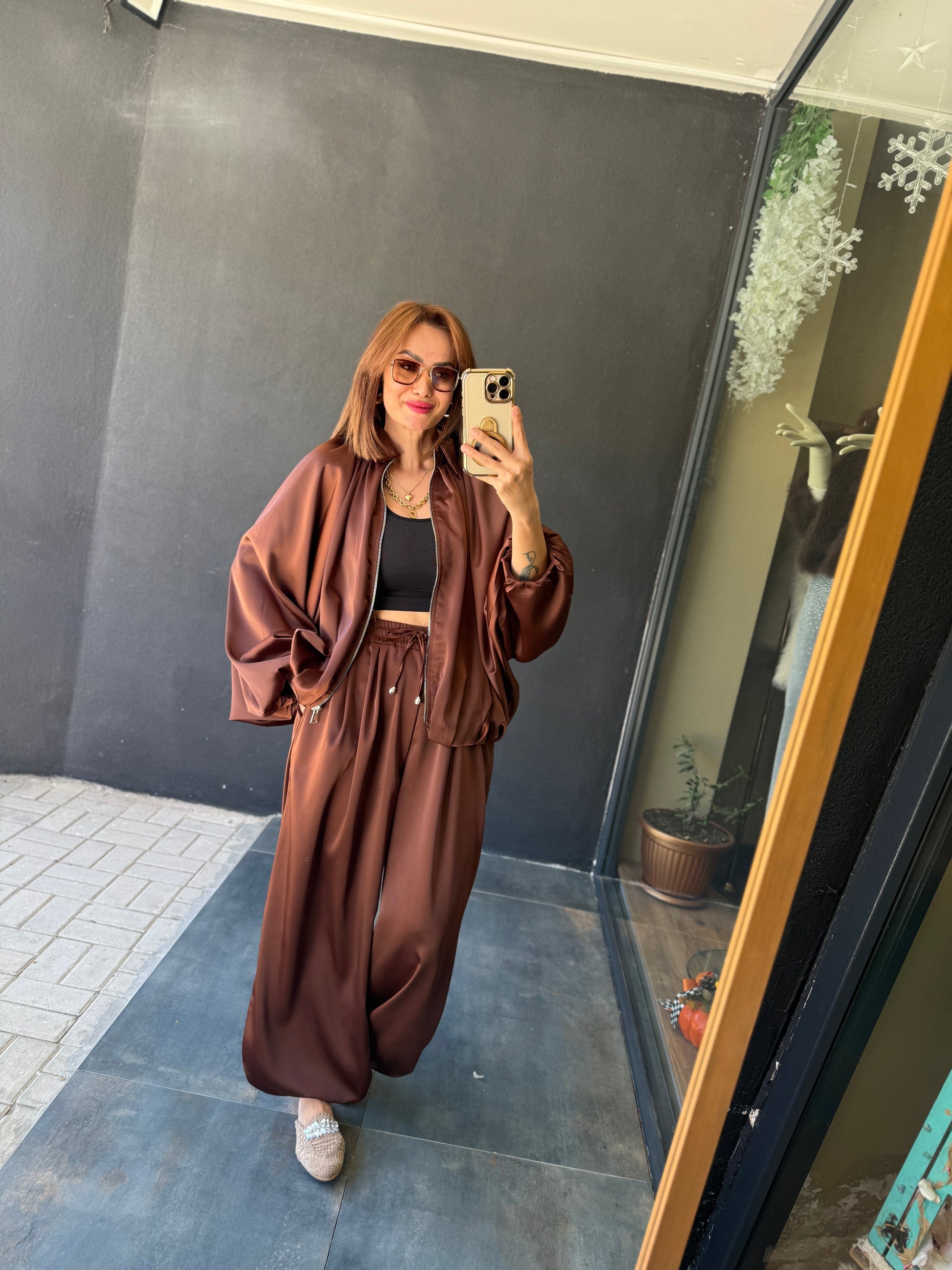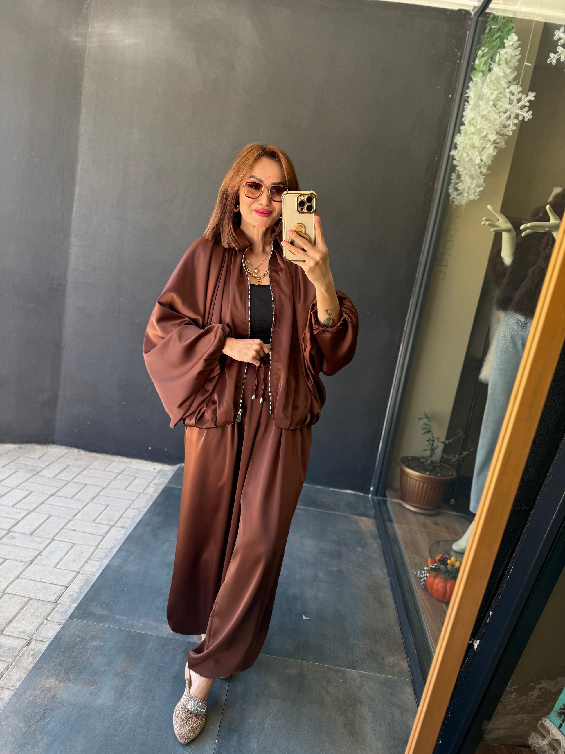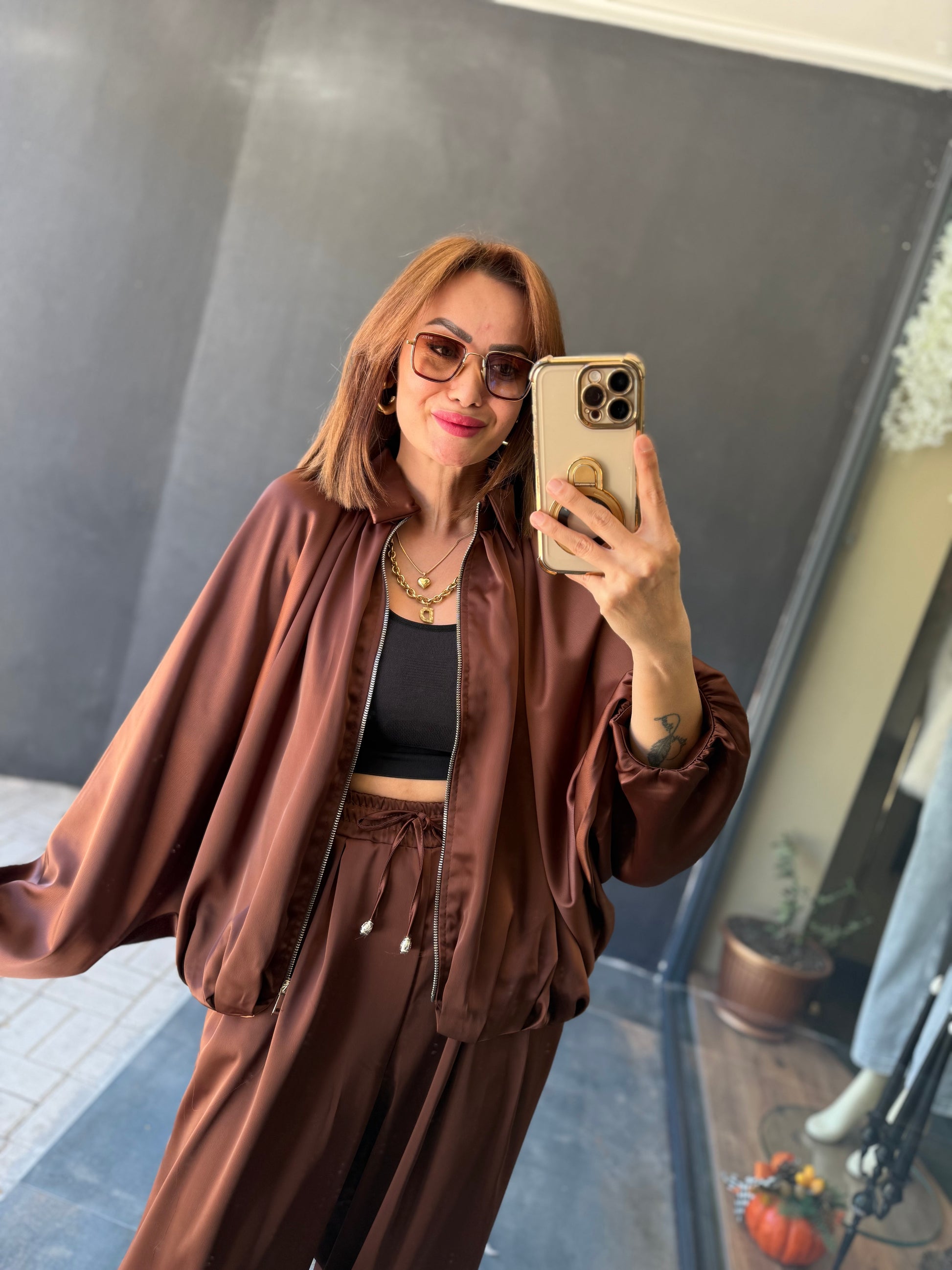Cardinal Kahve Saten Bomber Takım