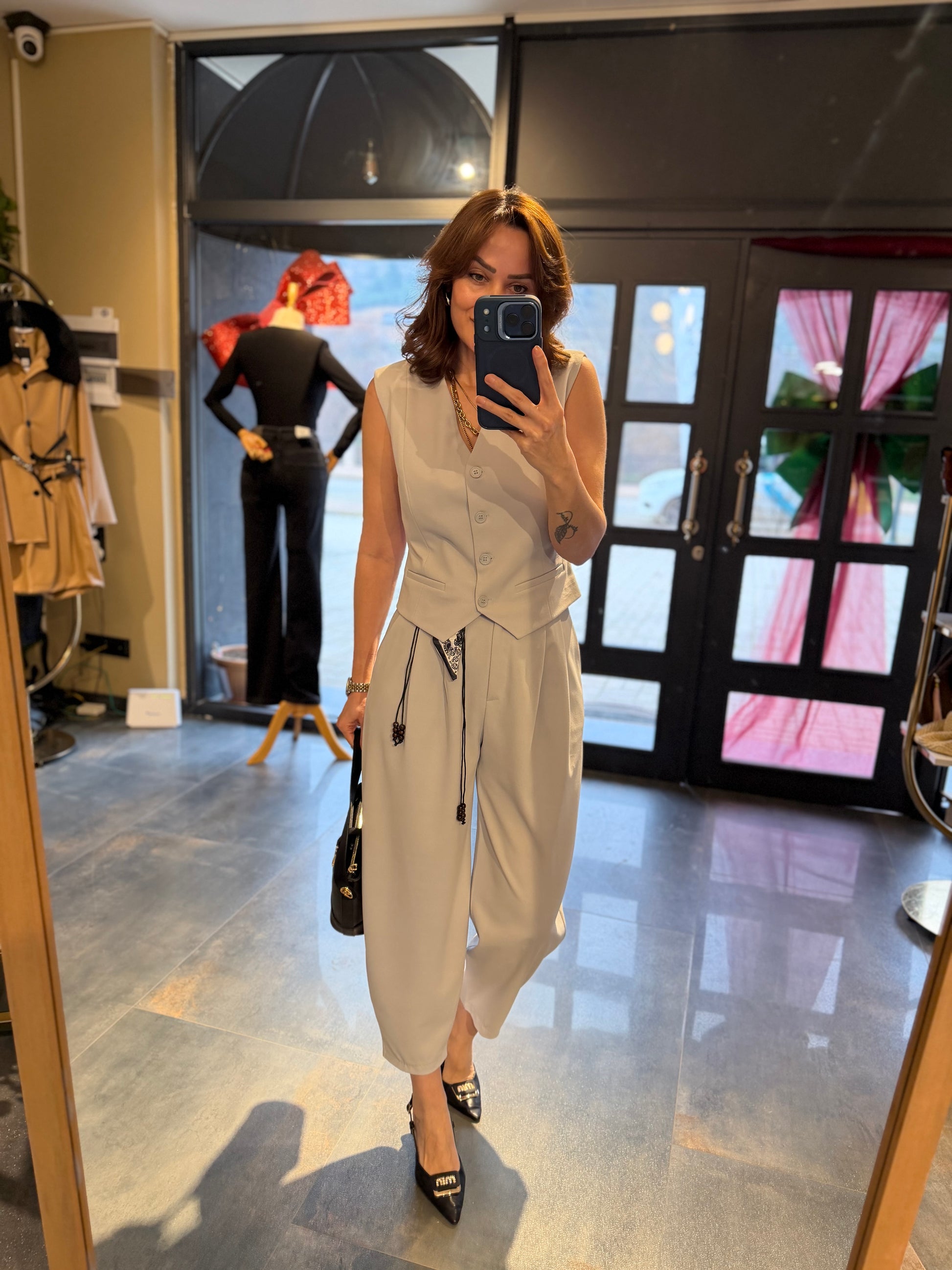 Casual Gri Harem Yelekli Takım