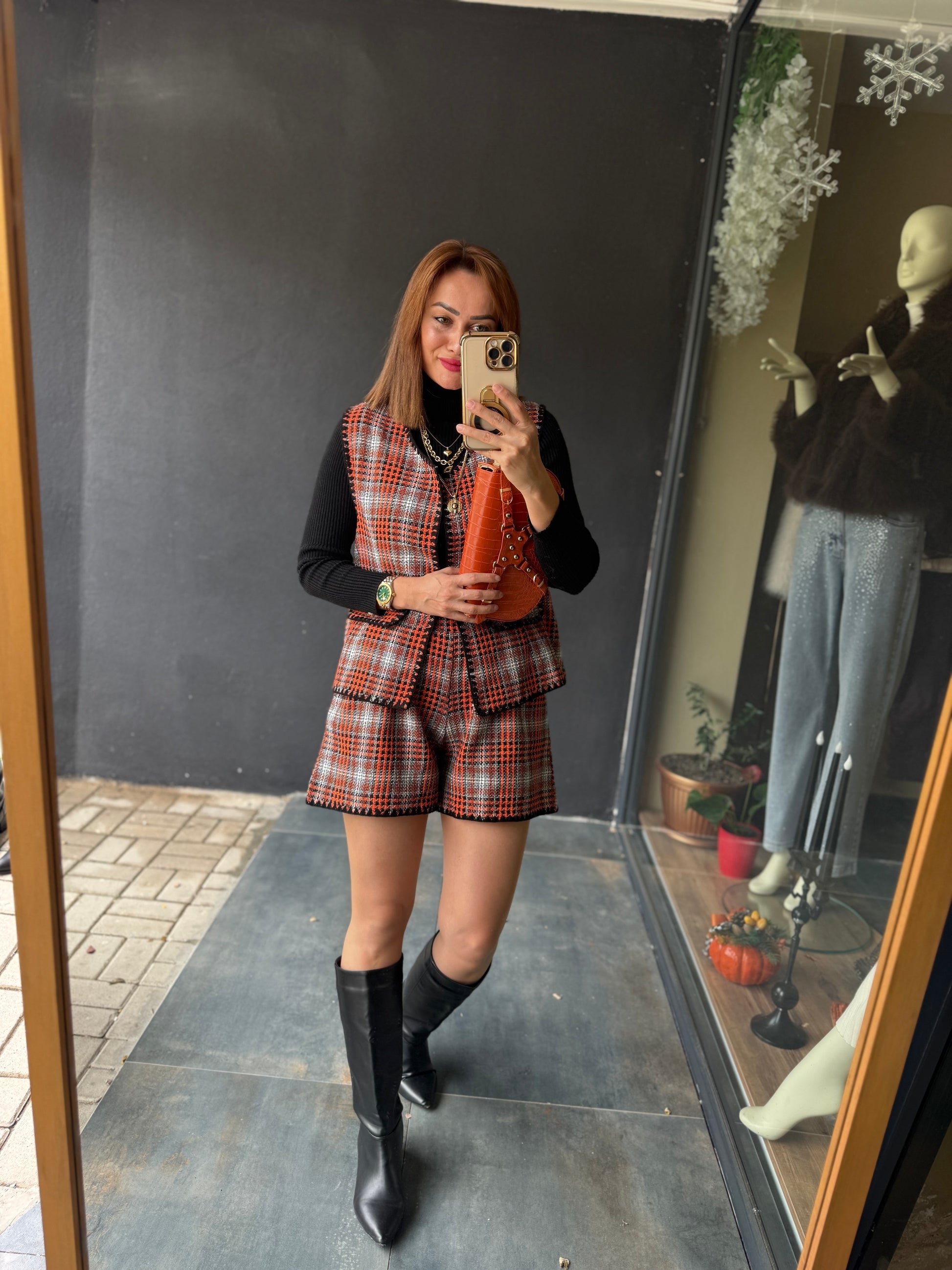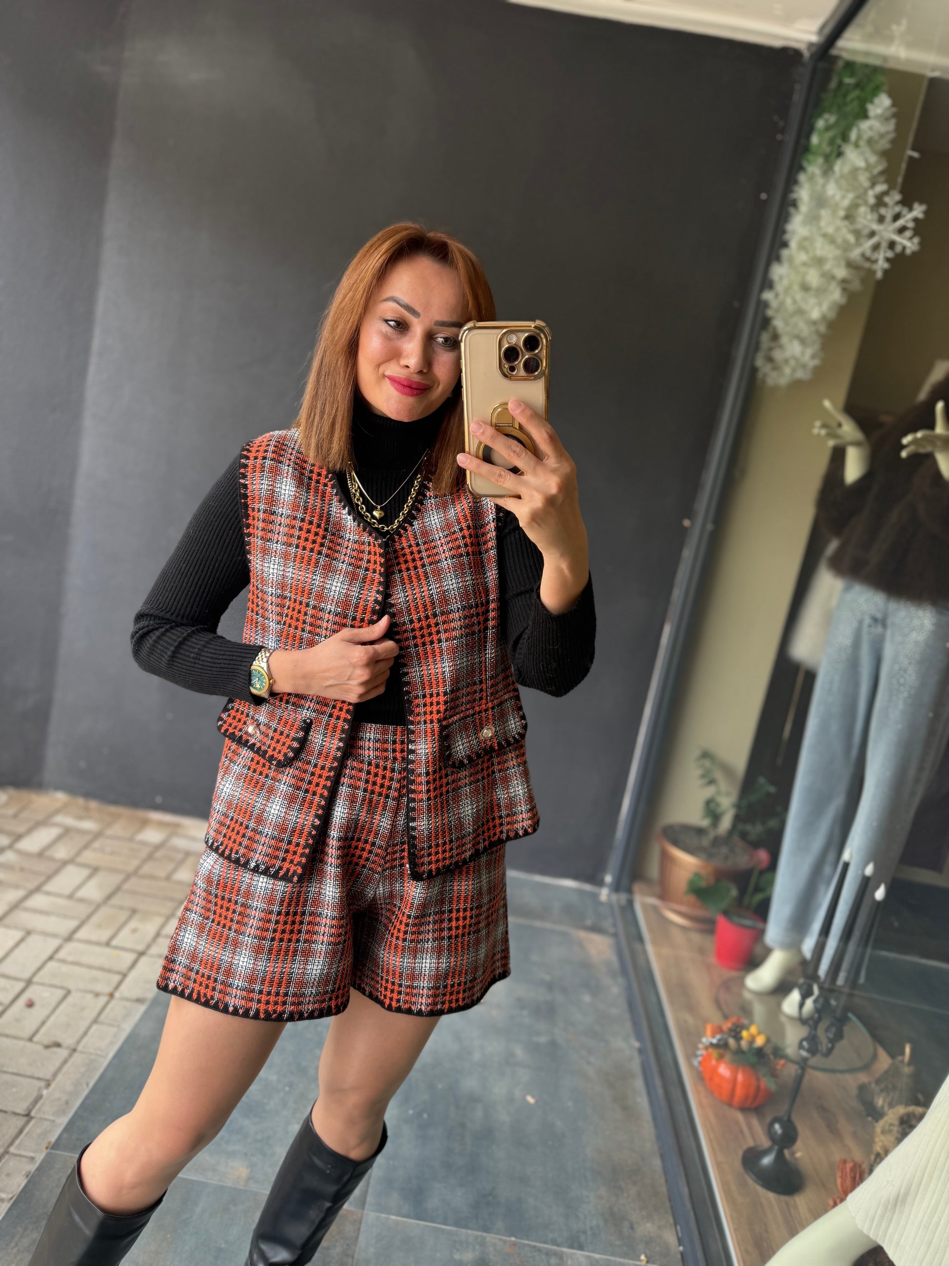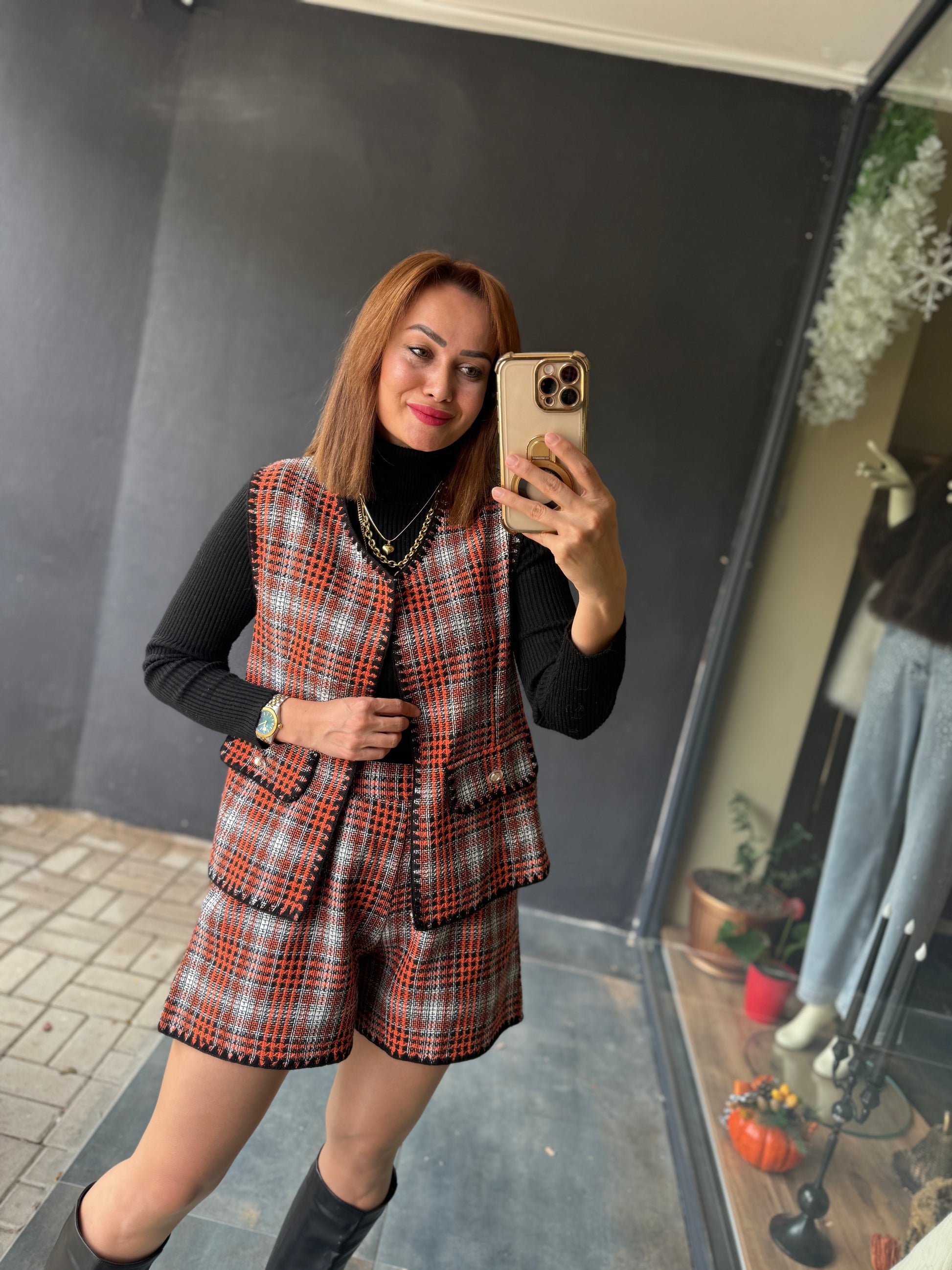 Dumra Turuncu Tuvid Yelek & Şort Takım