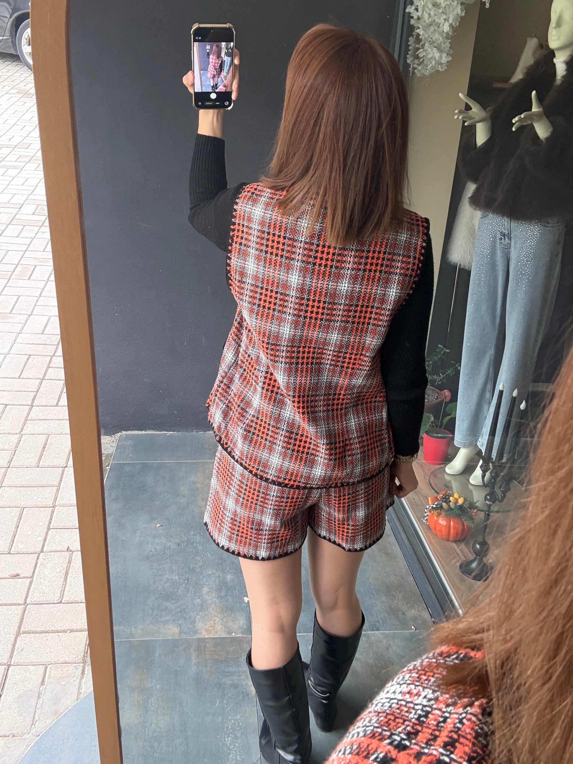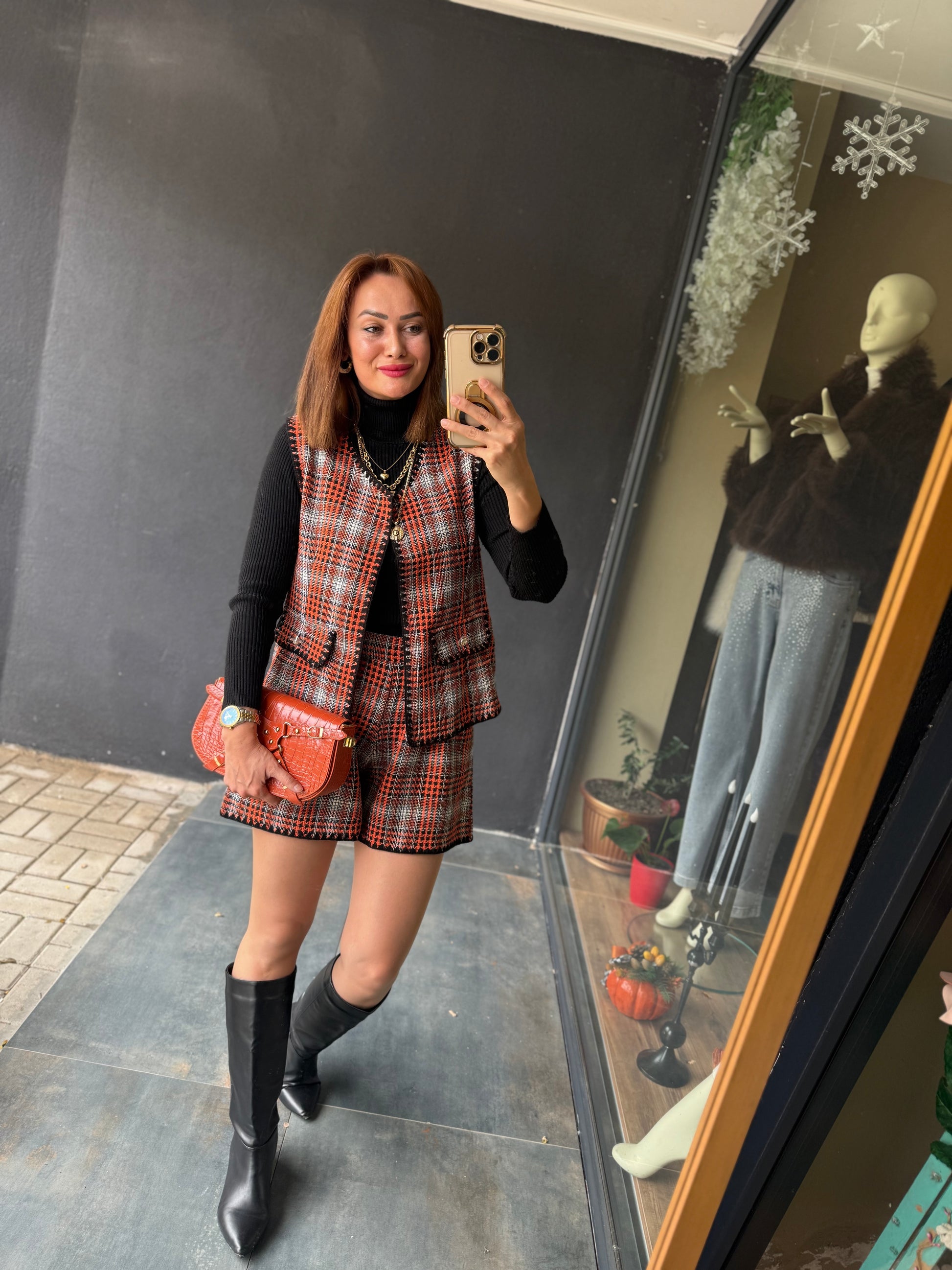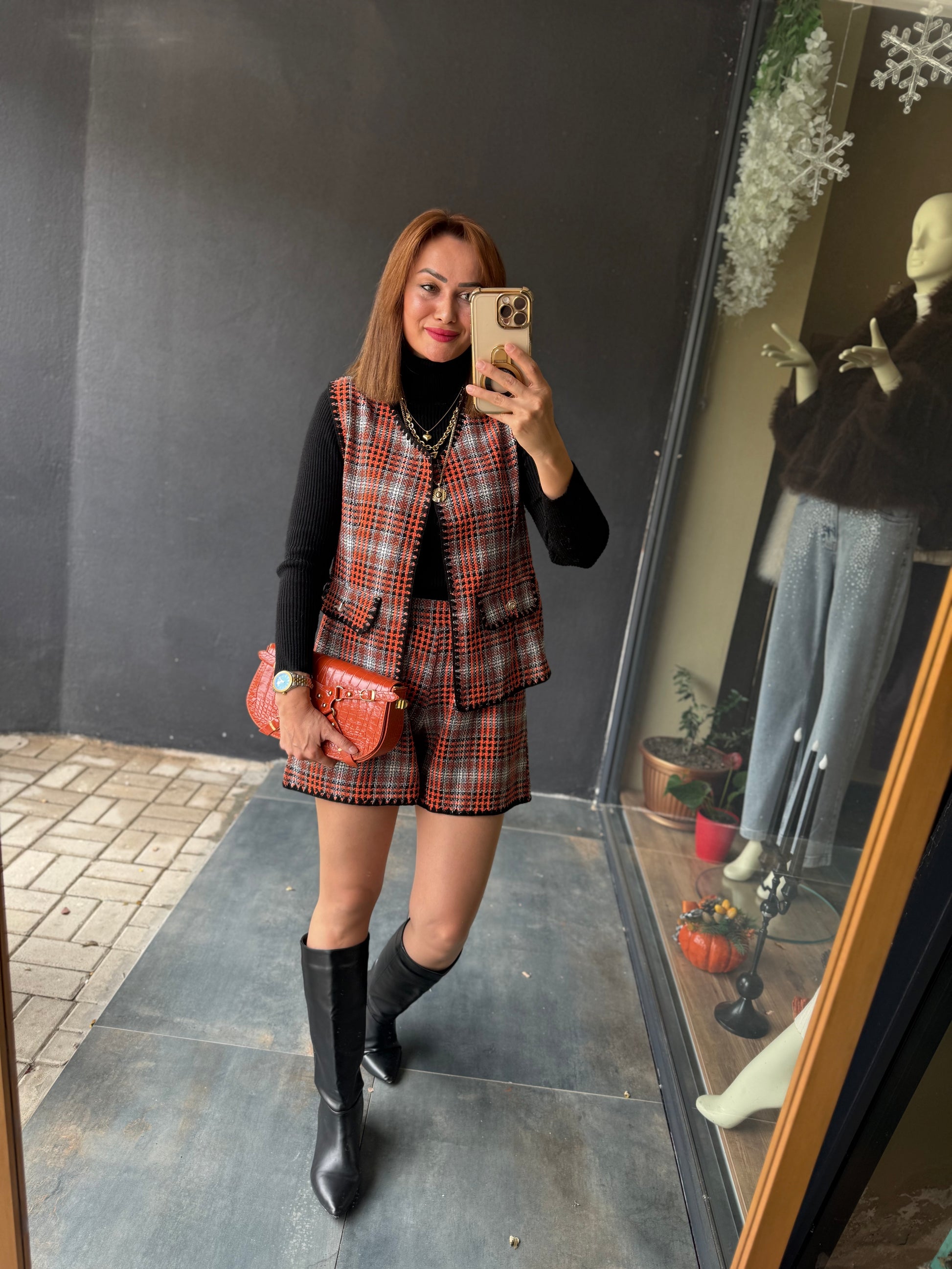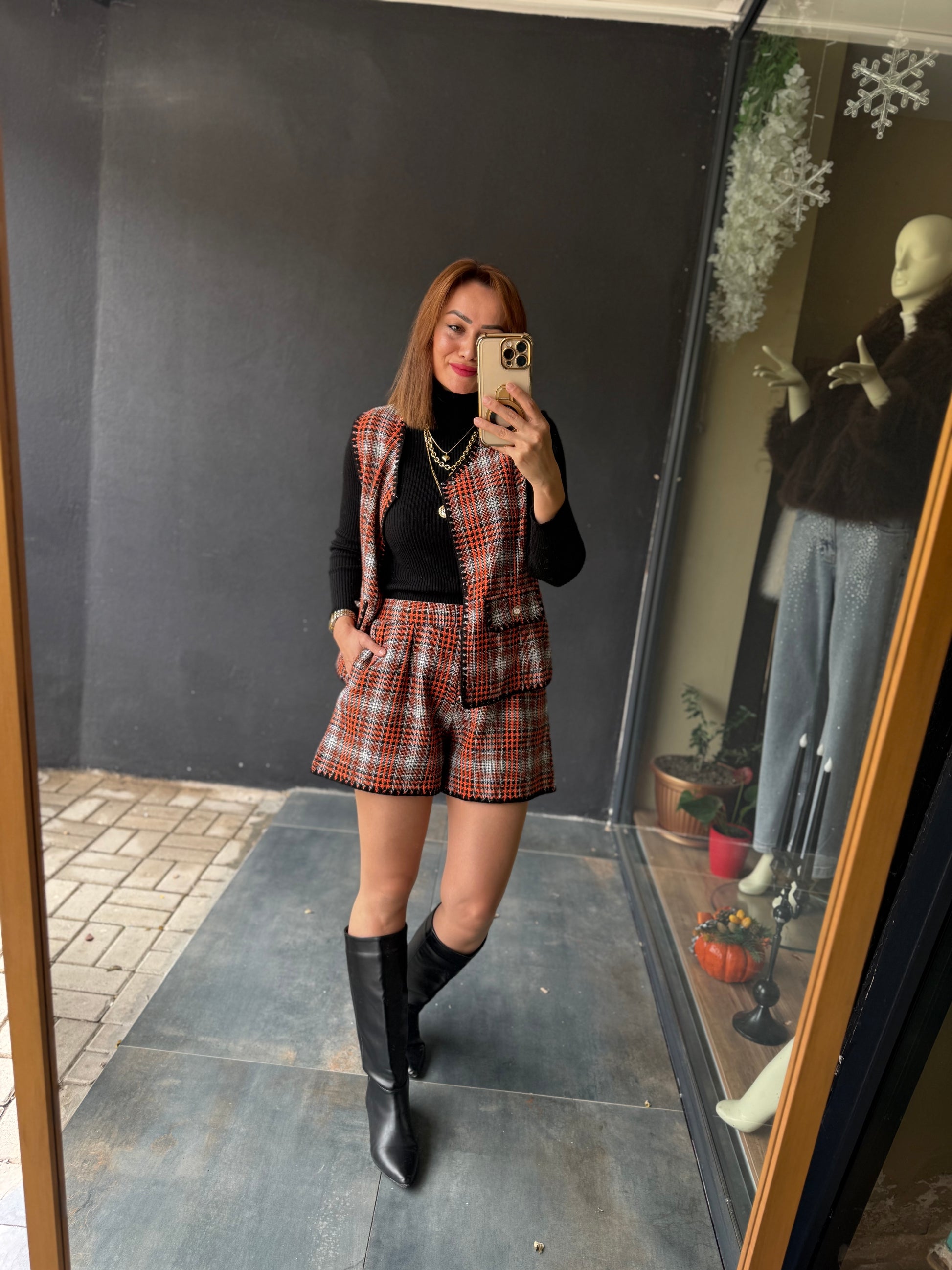 Dumra Turuncu Tuvid Yelek & Şort Takım