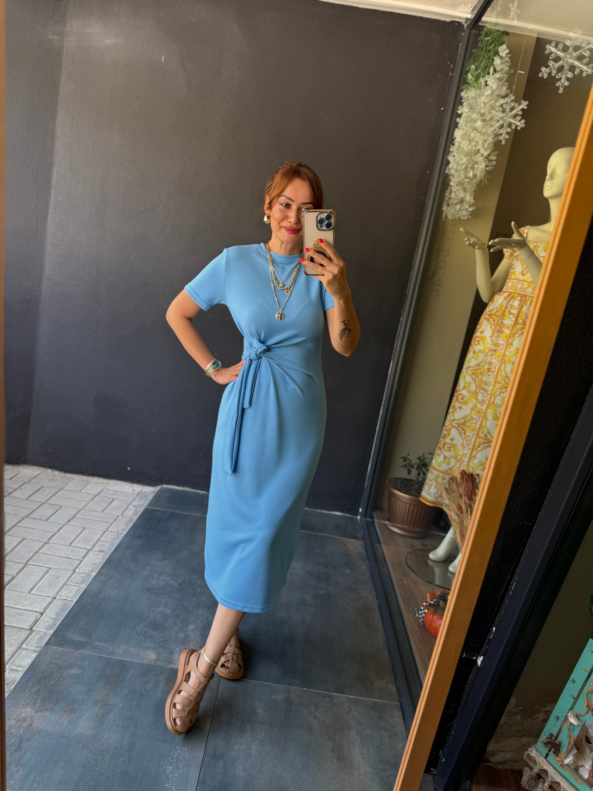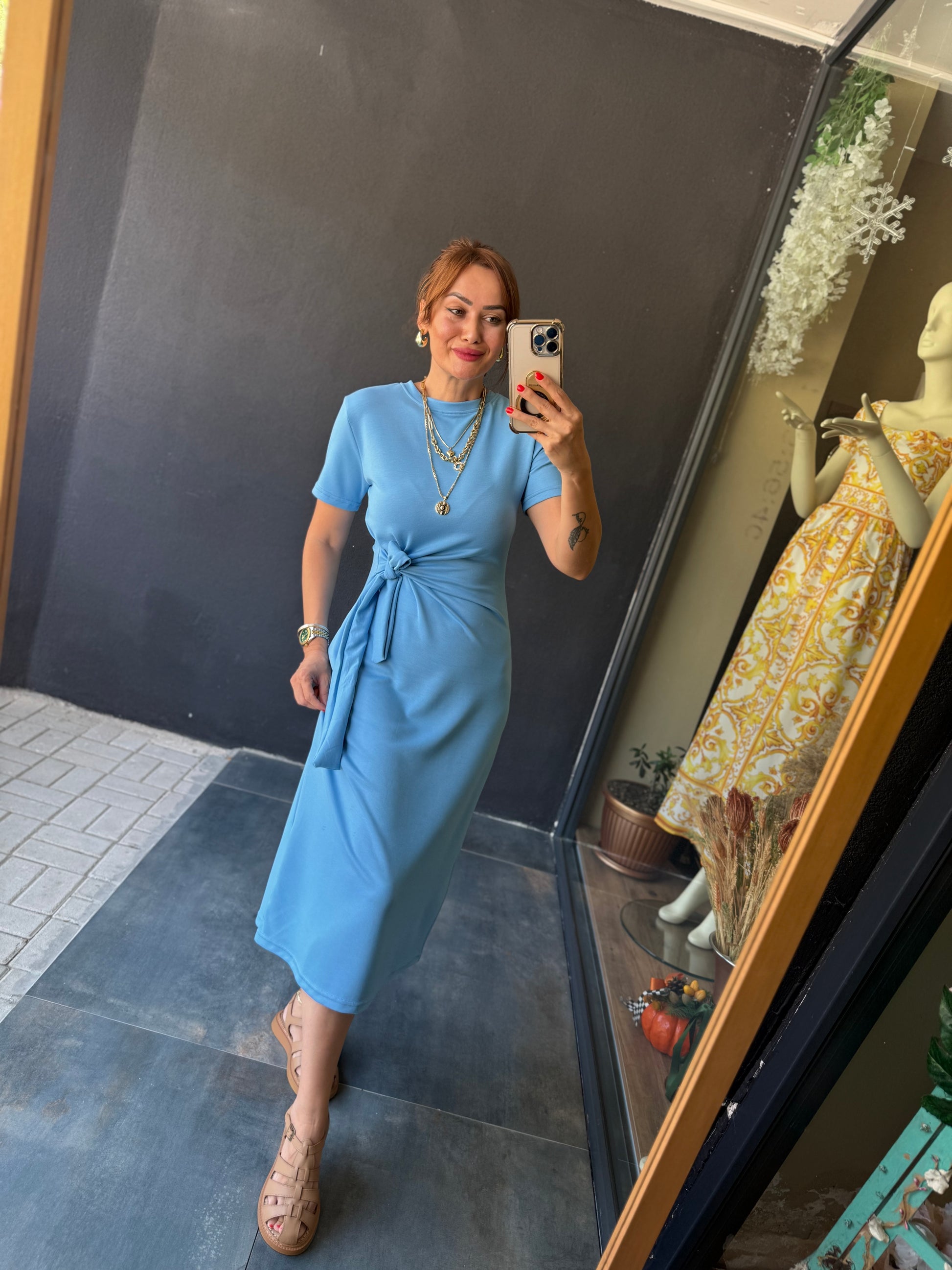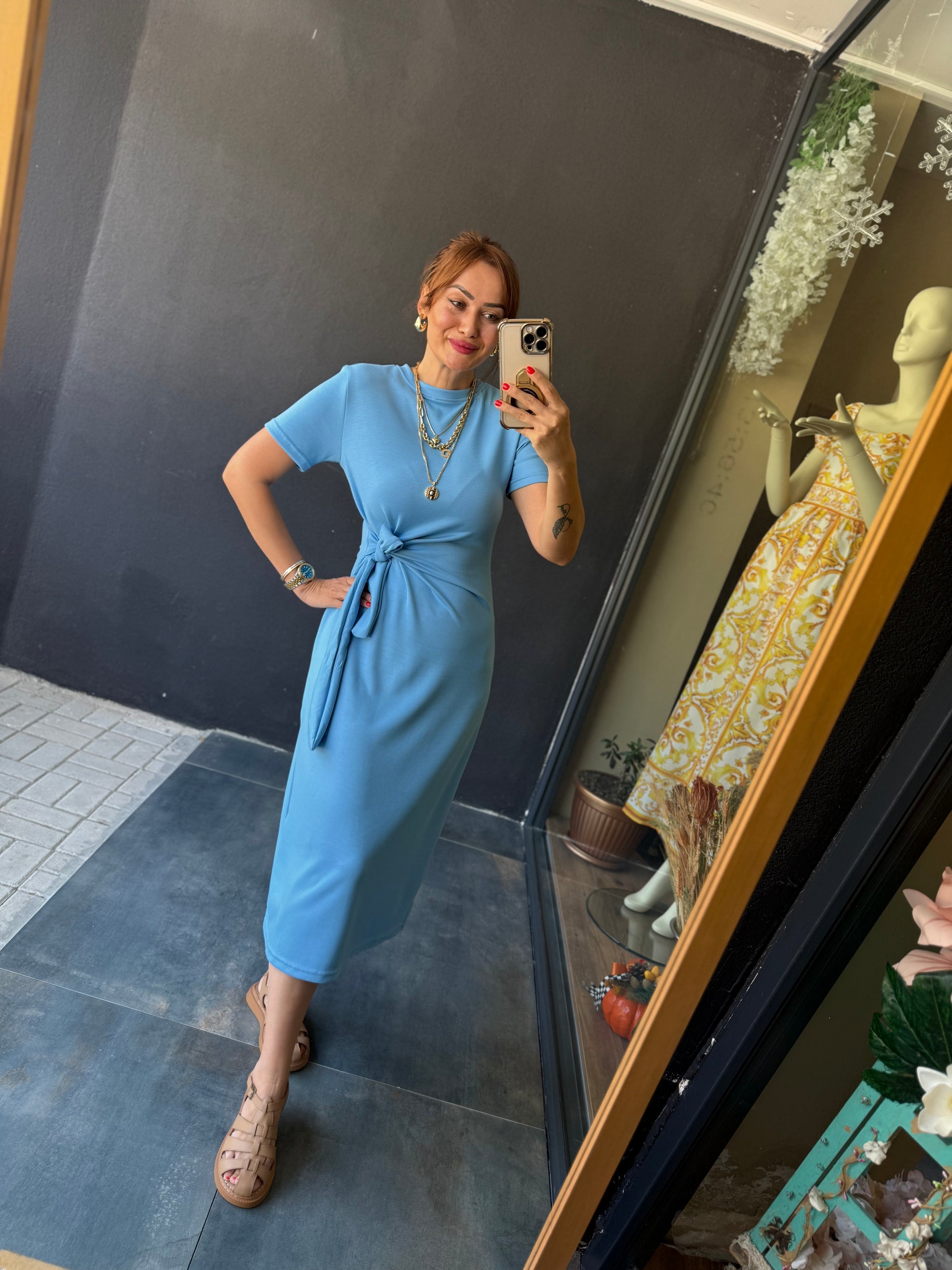 Fragman Modal Mavi Kuşaklı Elbise