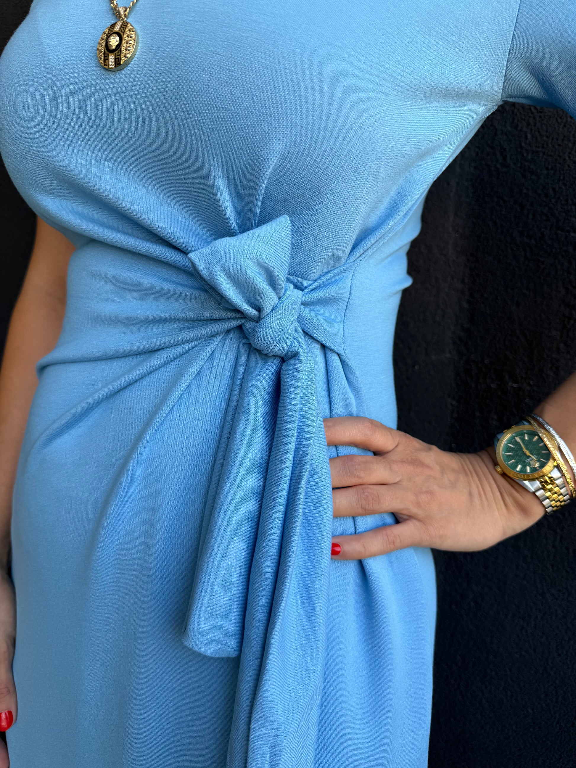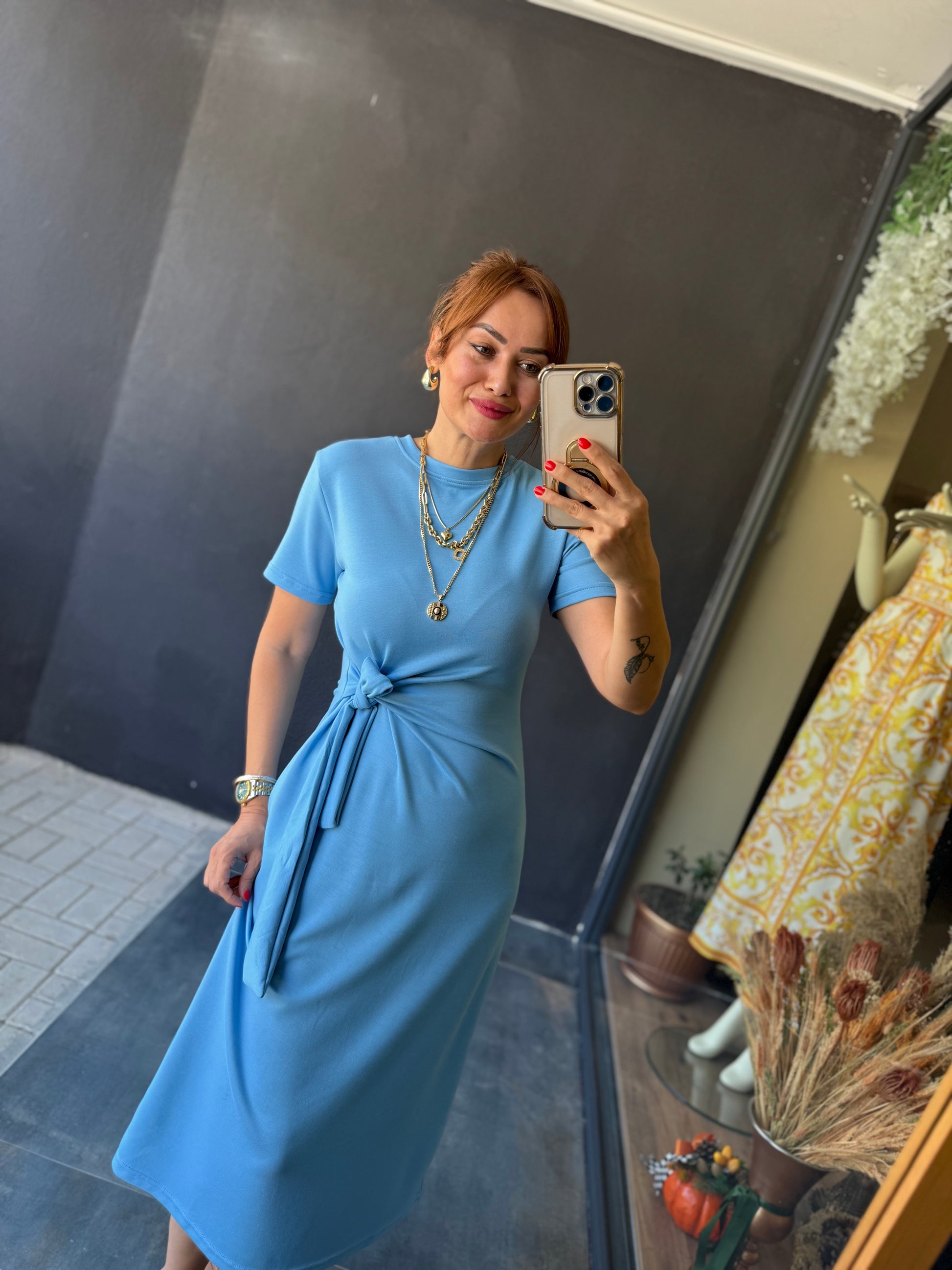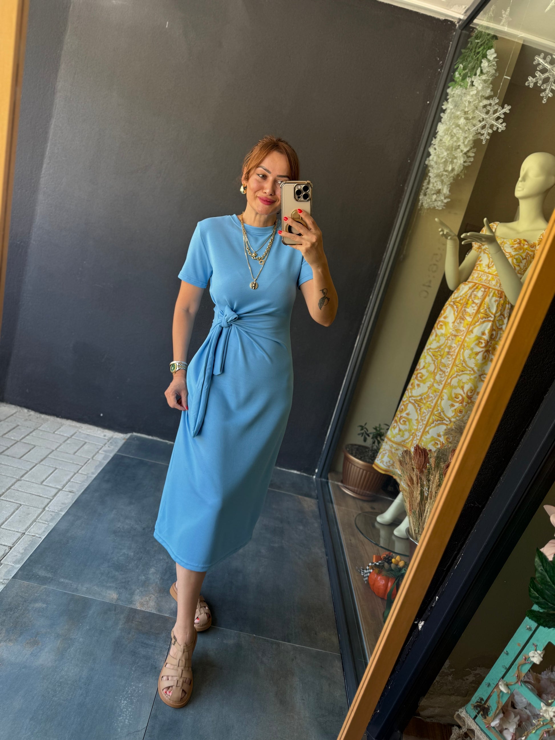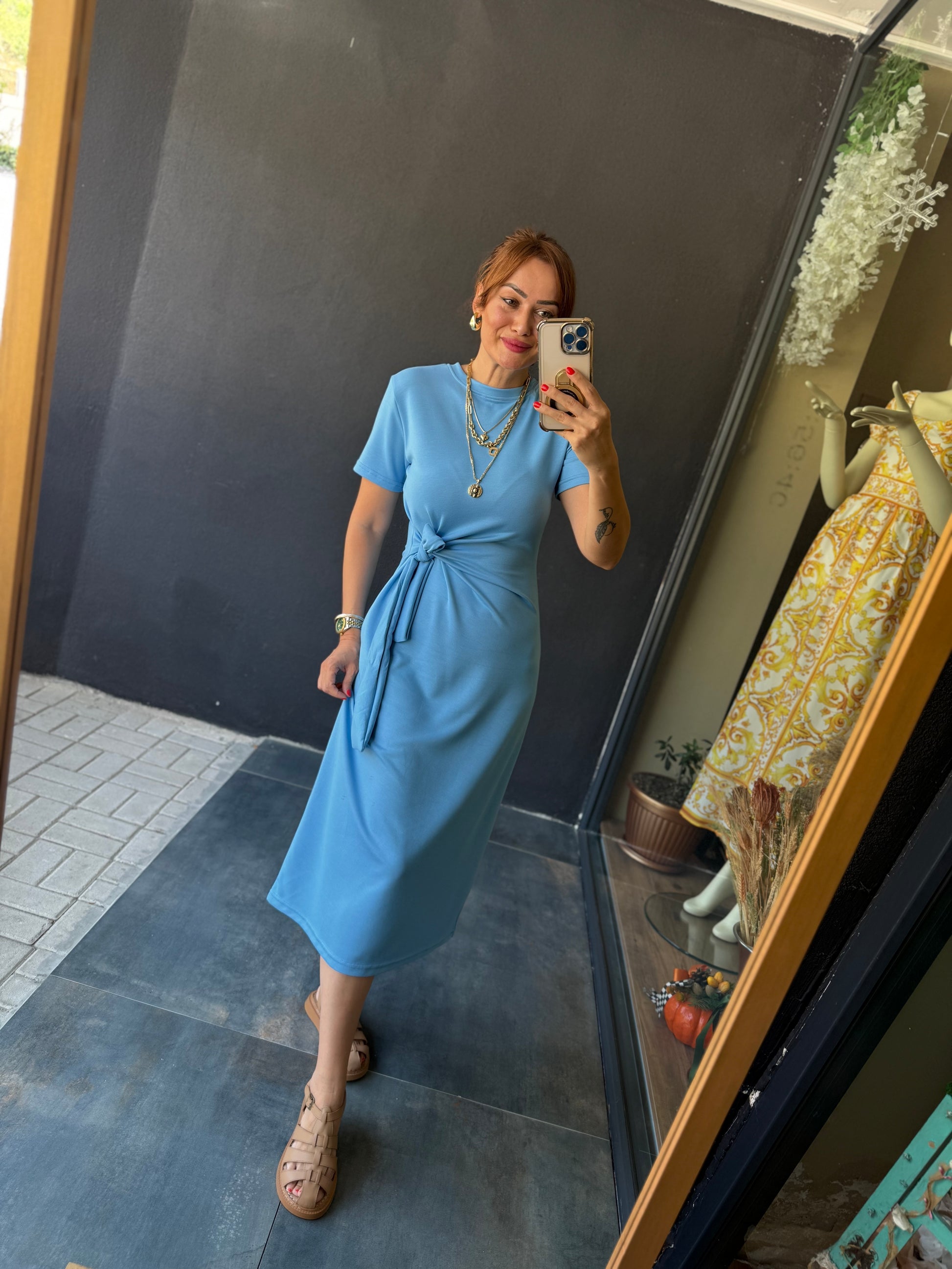 Fragman Modal Mavi Kuşaklı Elbise