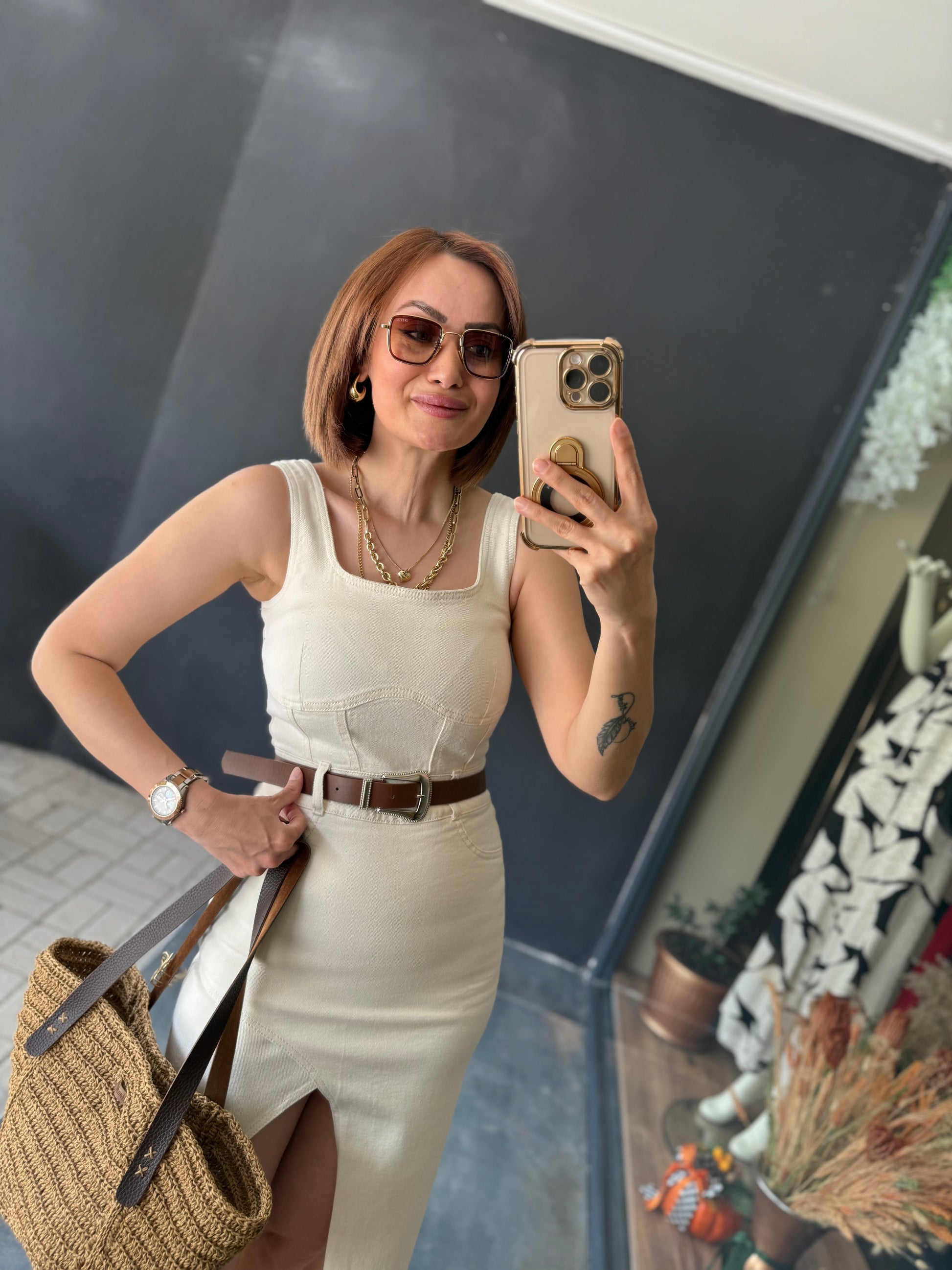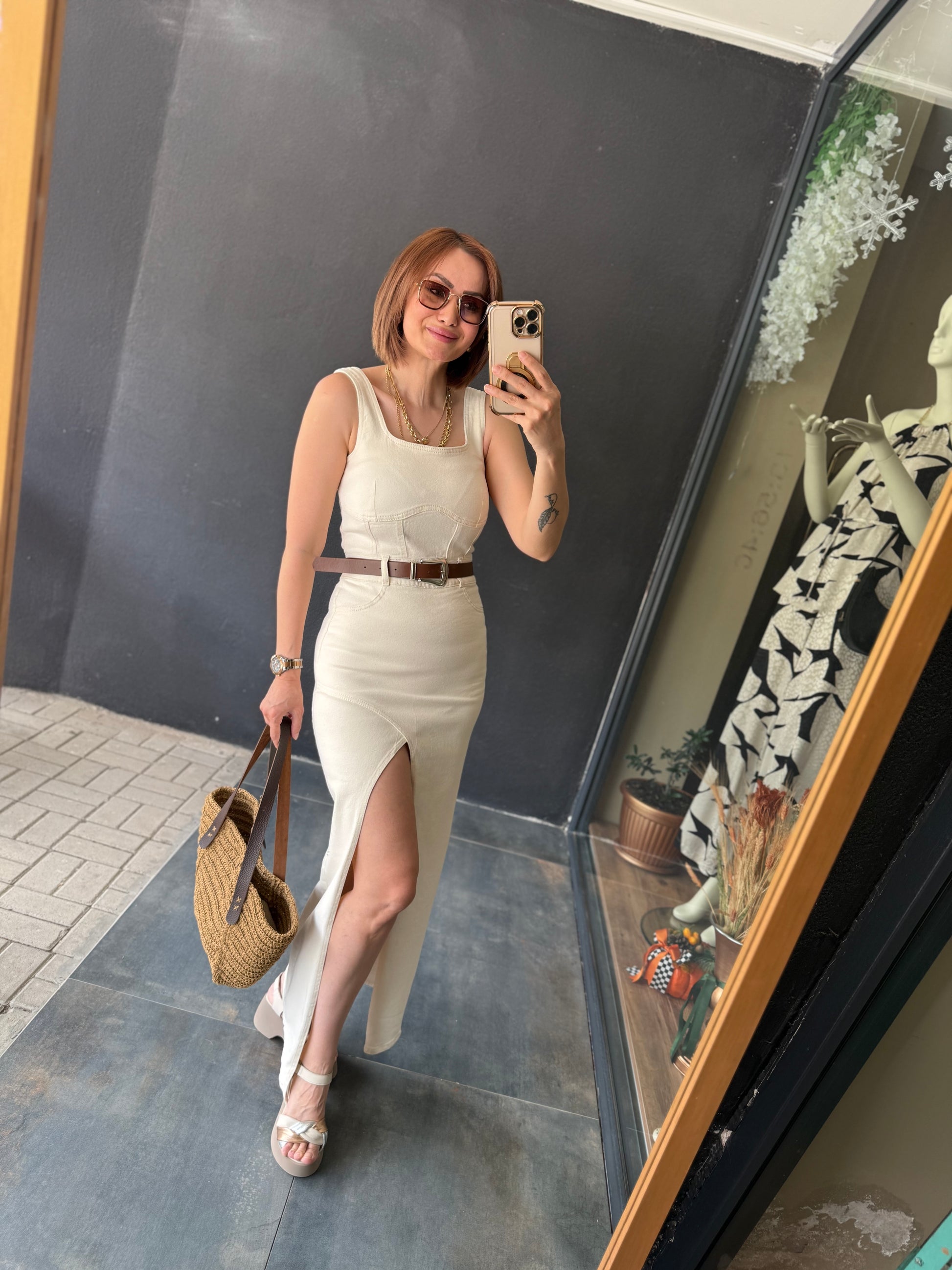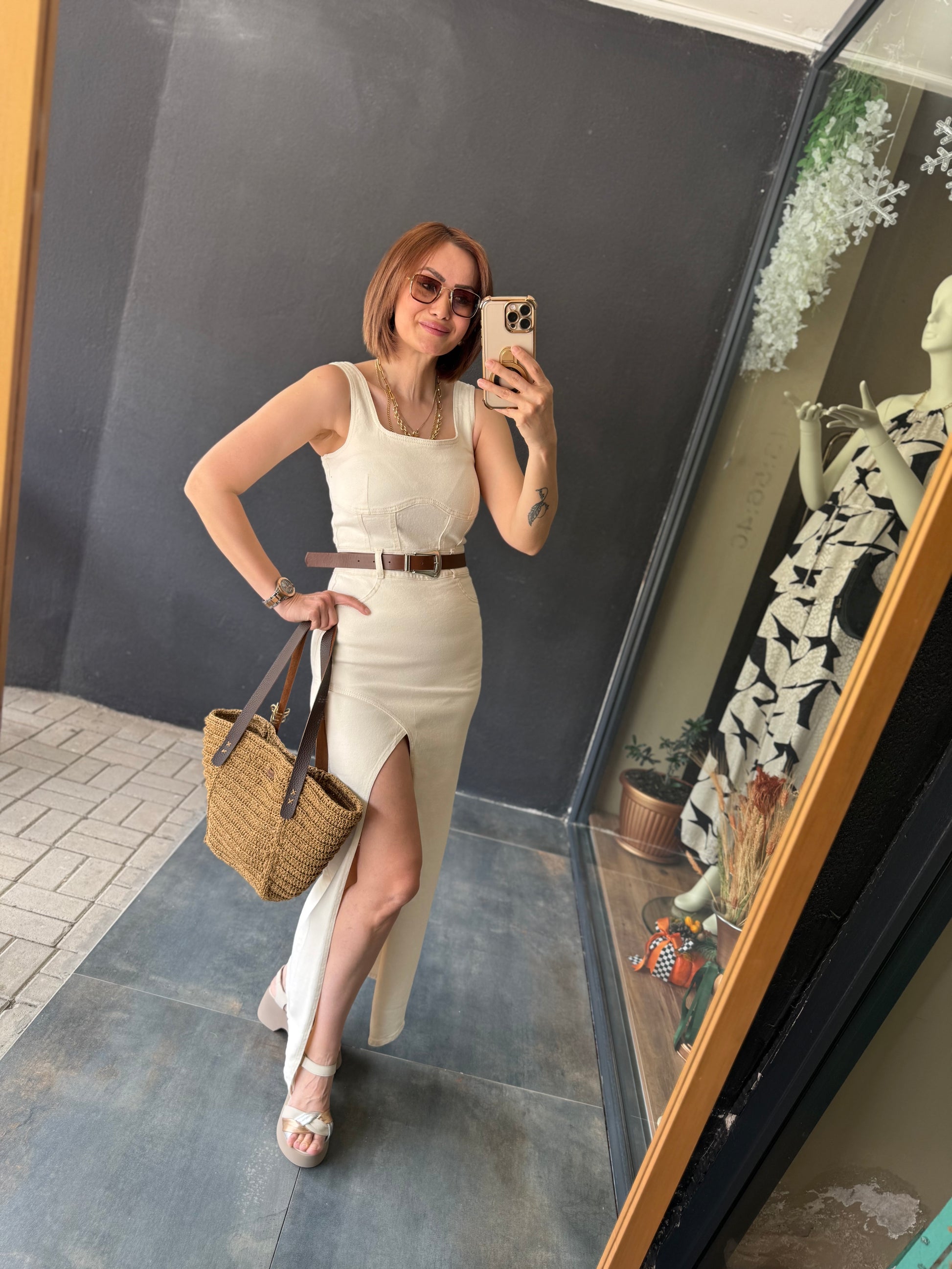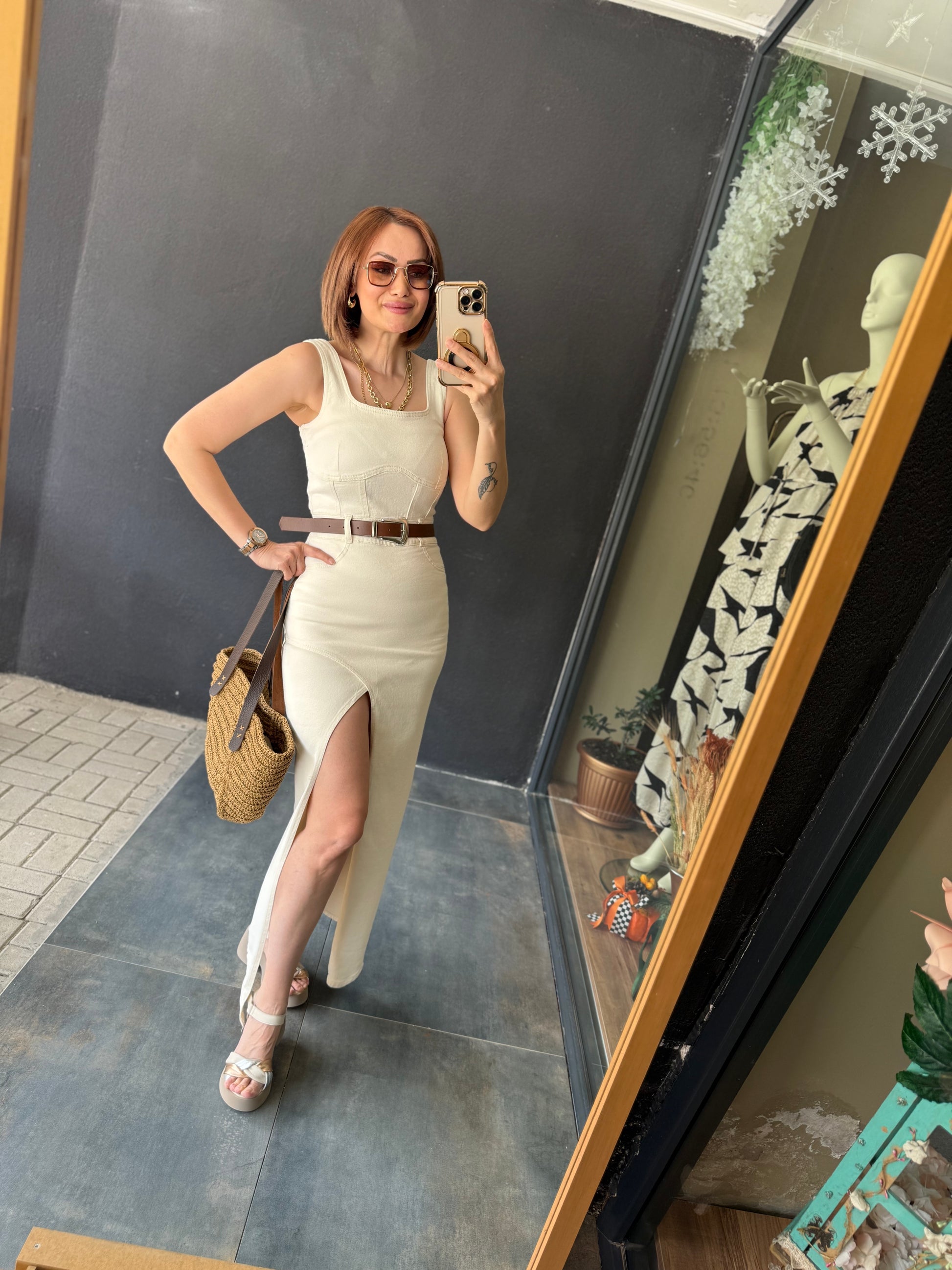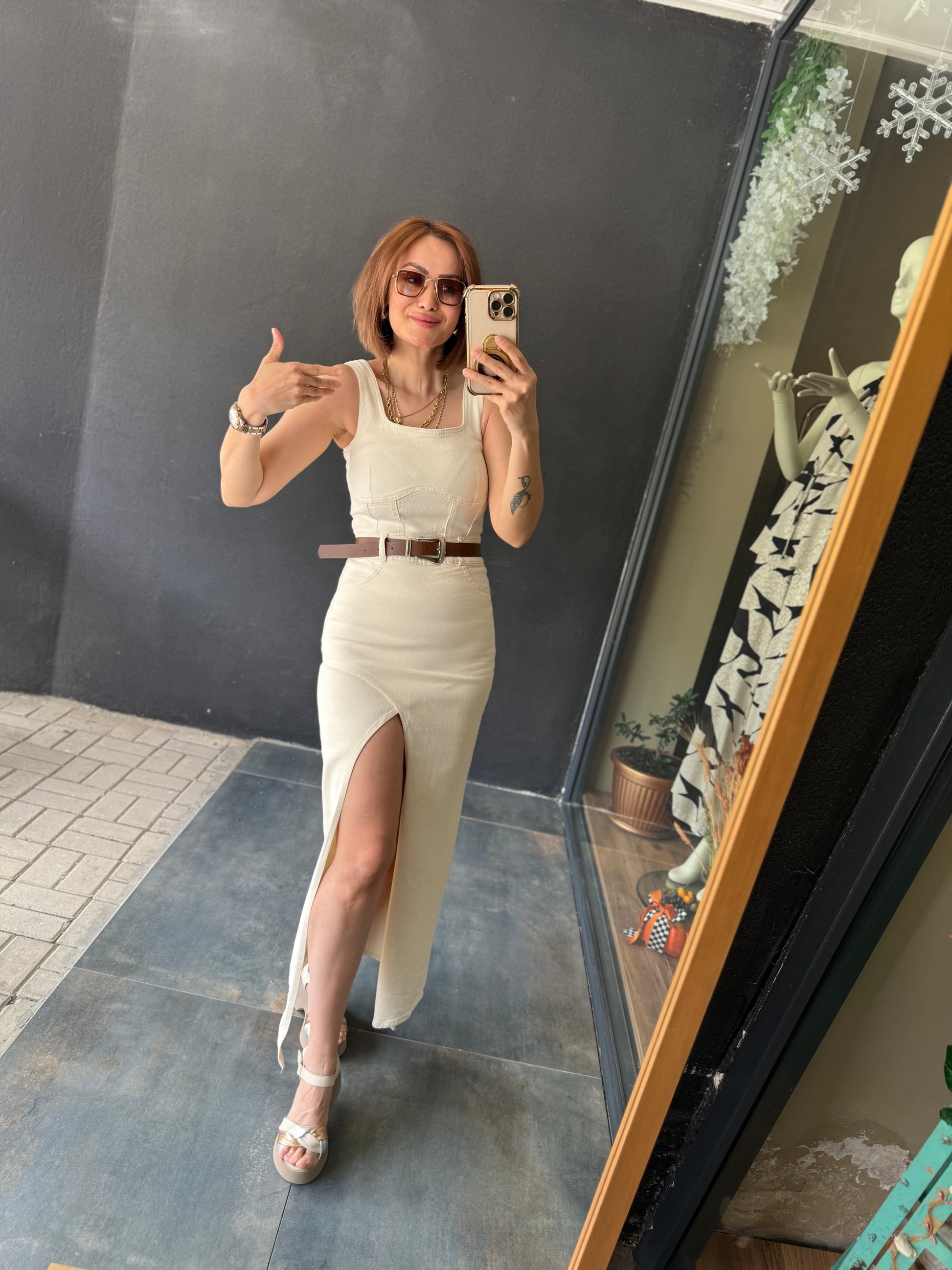Ginger Krem Jean Elbise