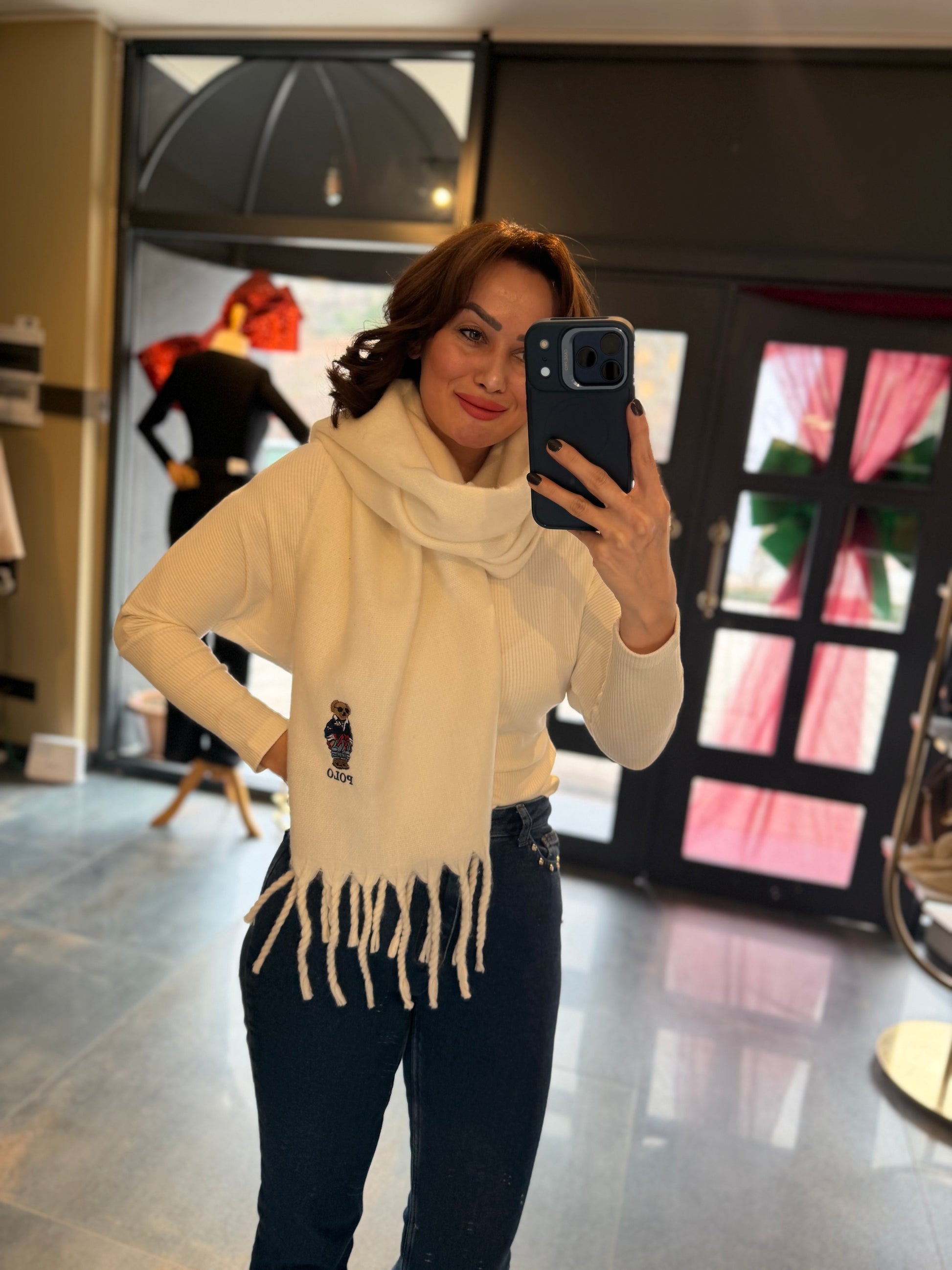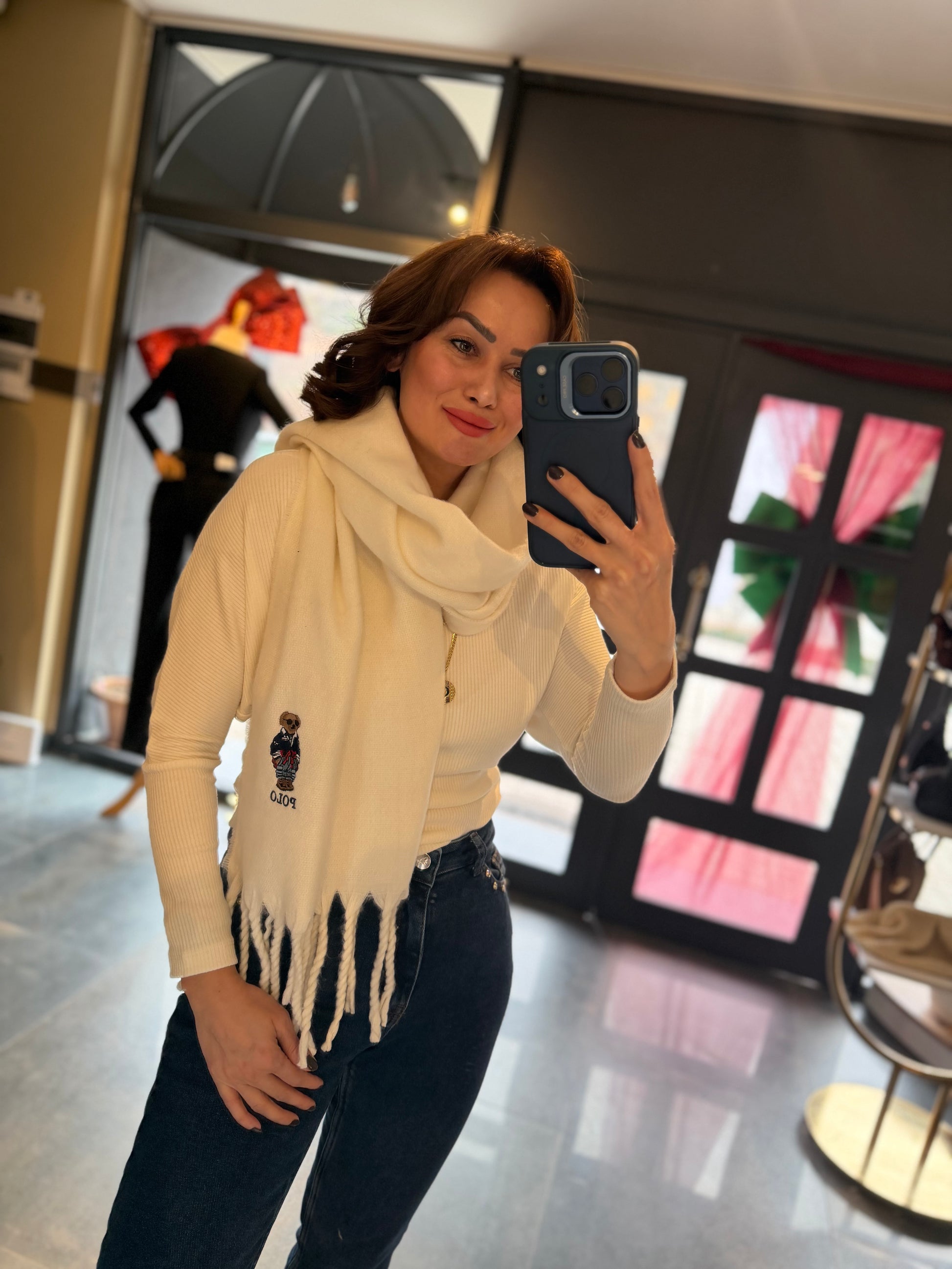 Gustor Beyaz Peluş Atkı
