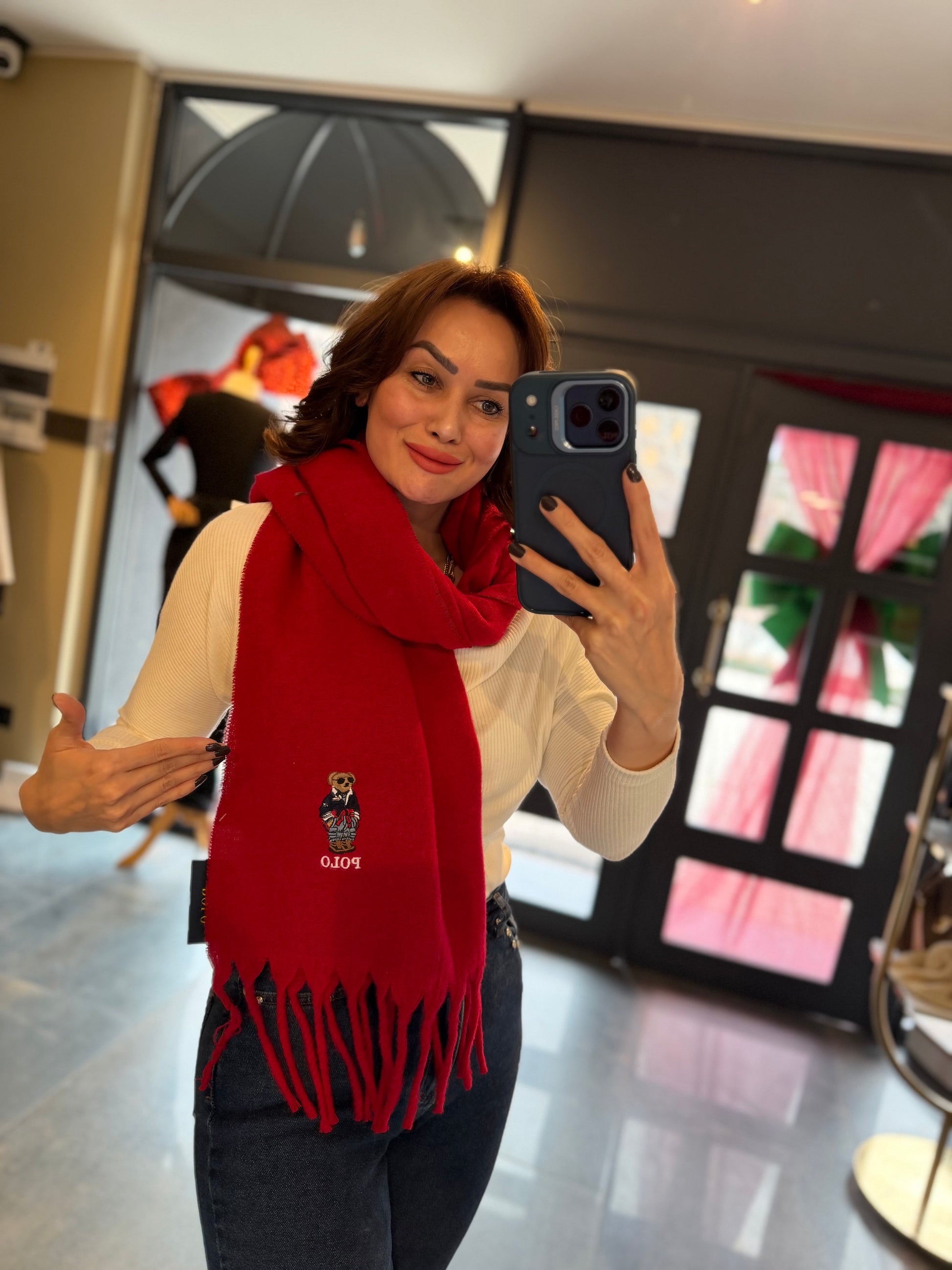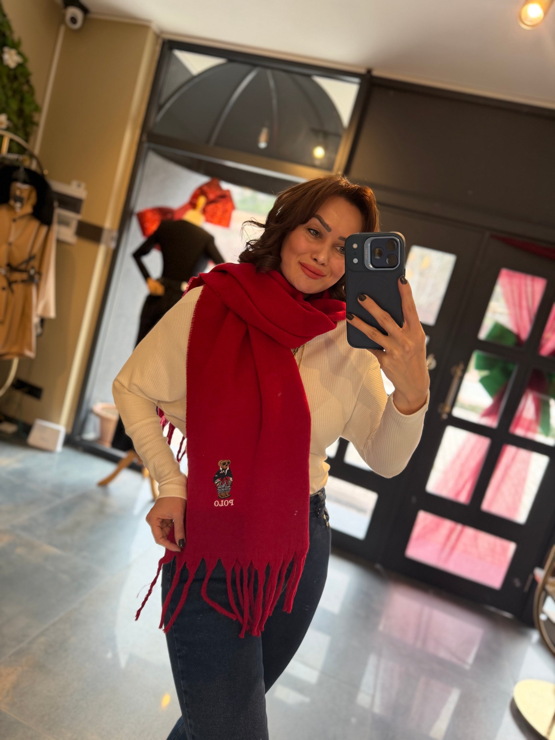 Gustor Kırmızı Peluş Atkı