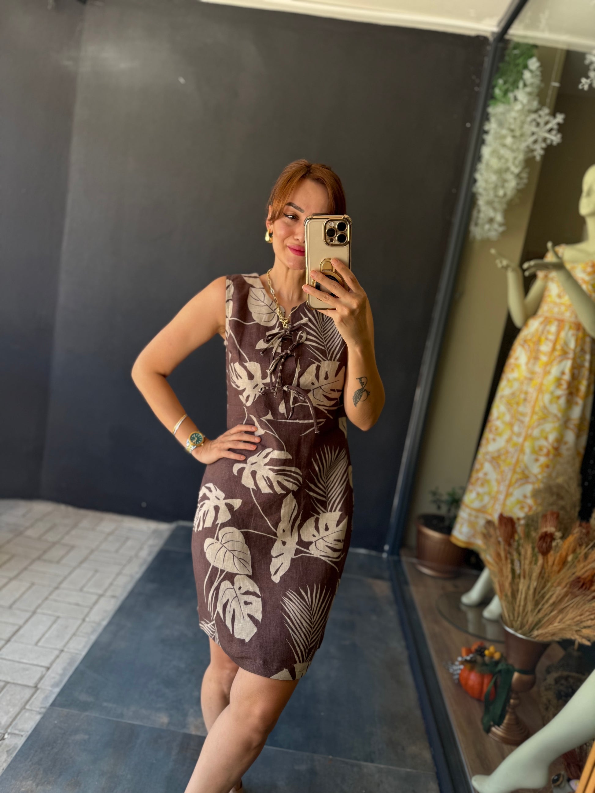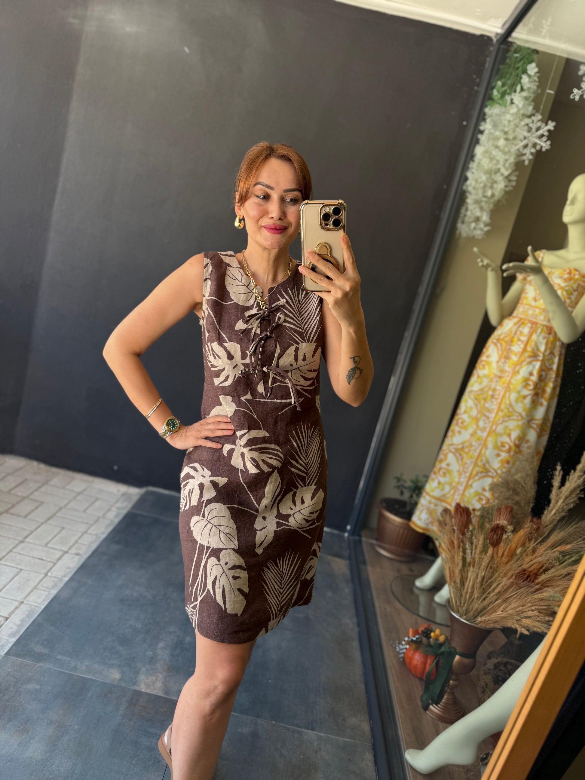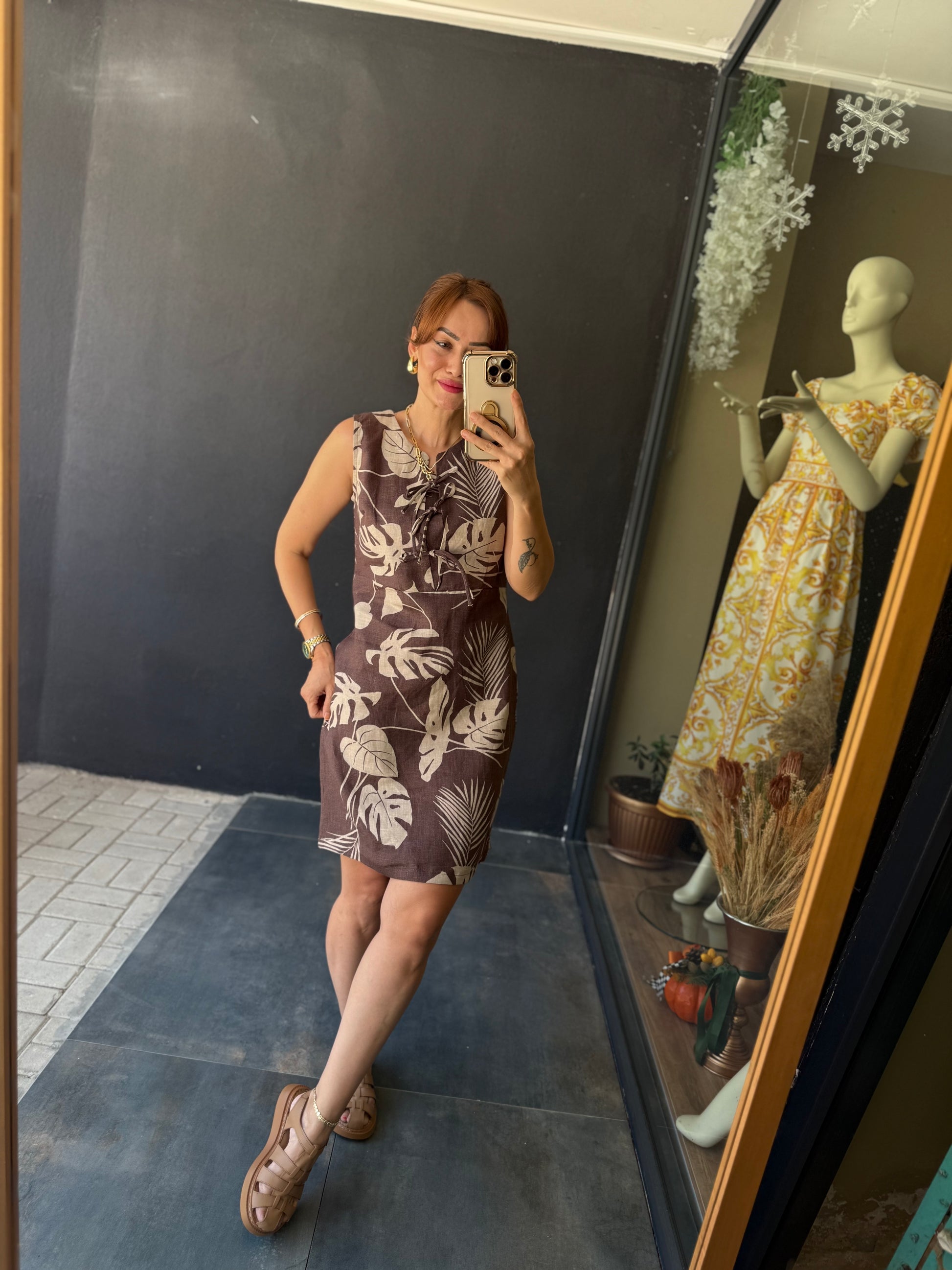 Jessica Kahve Keten Elbise