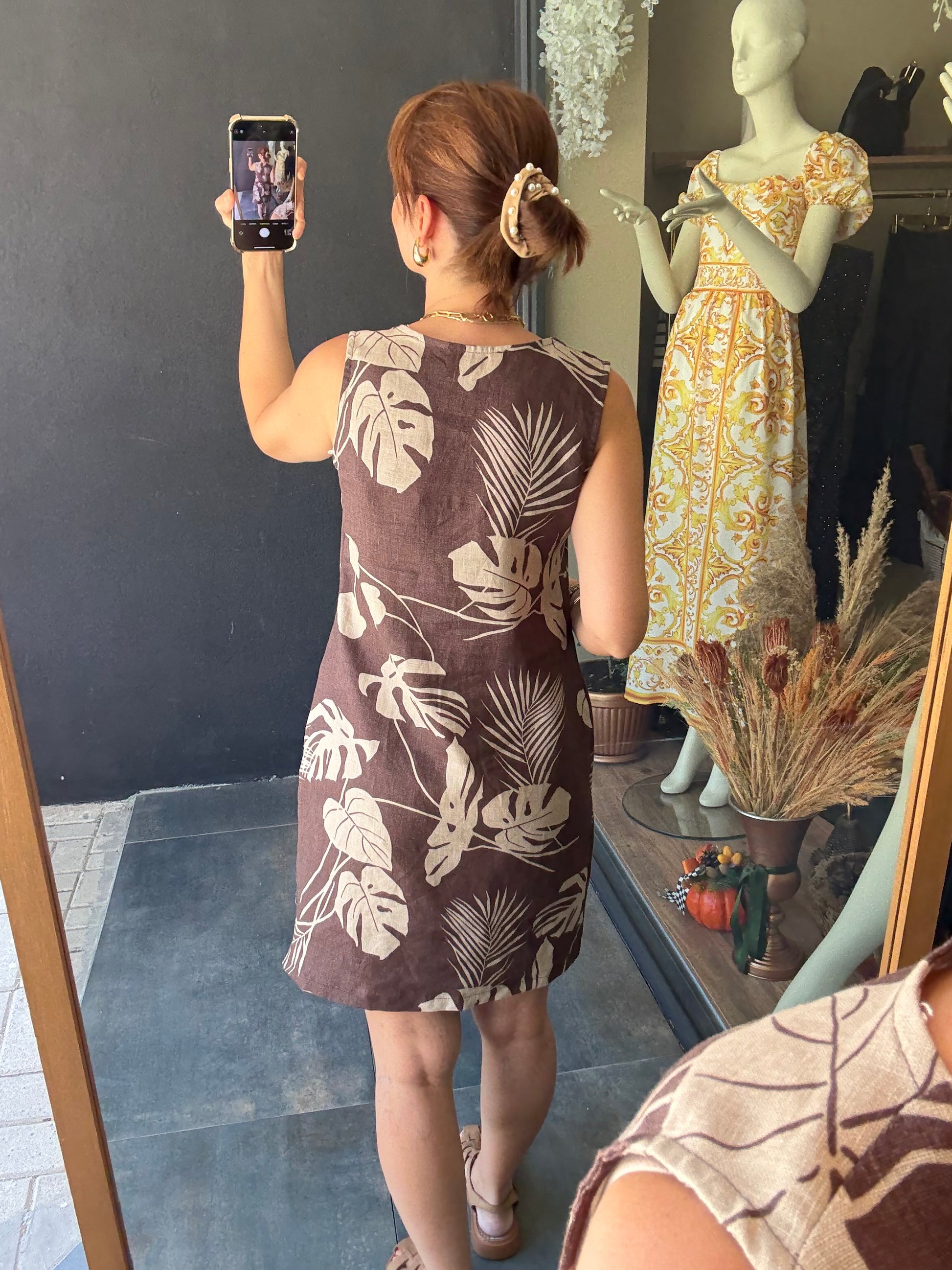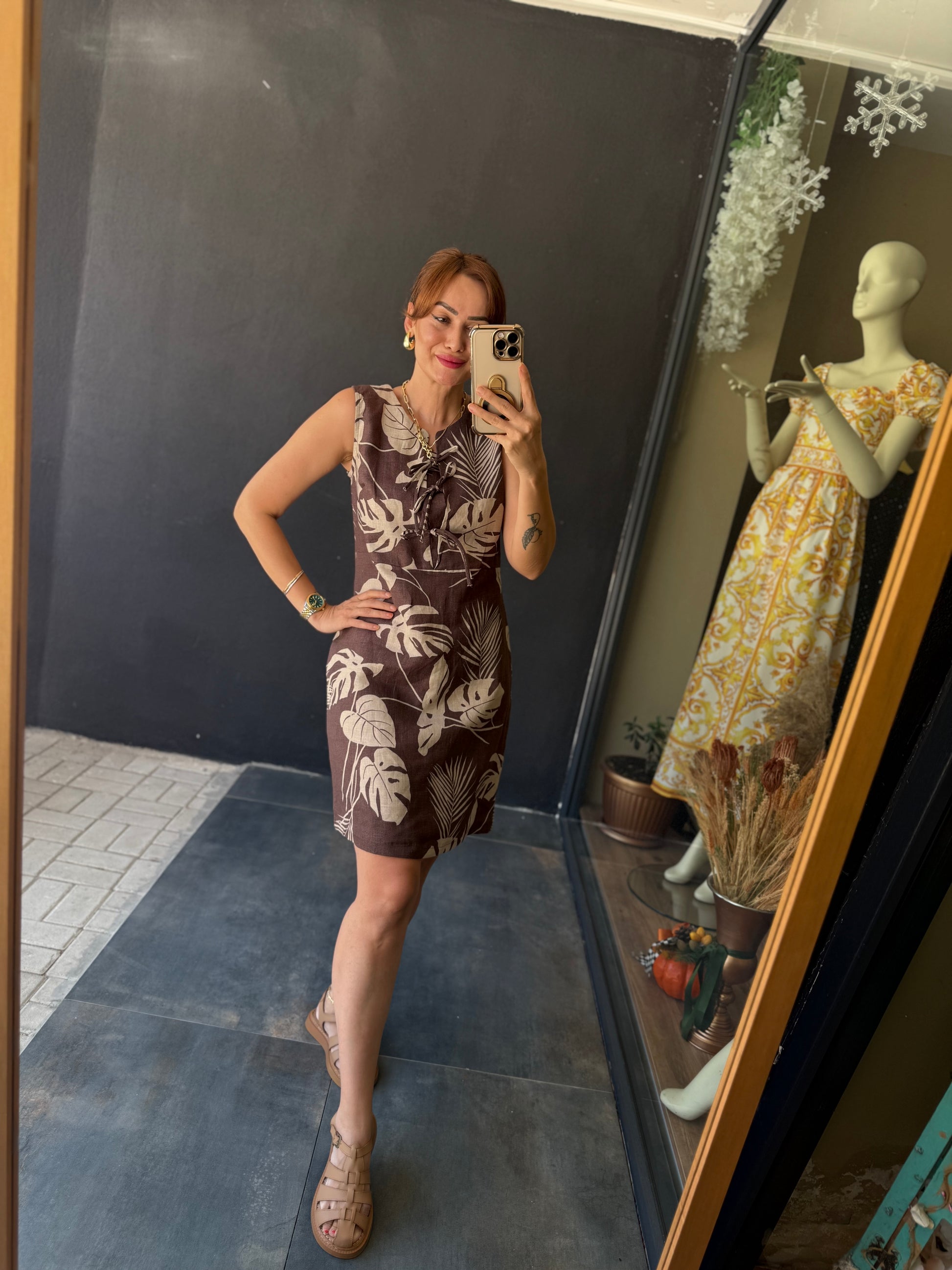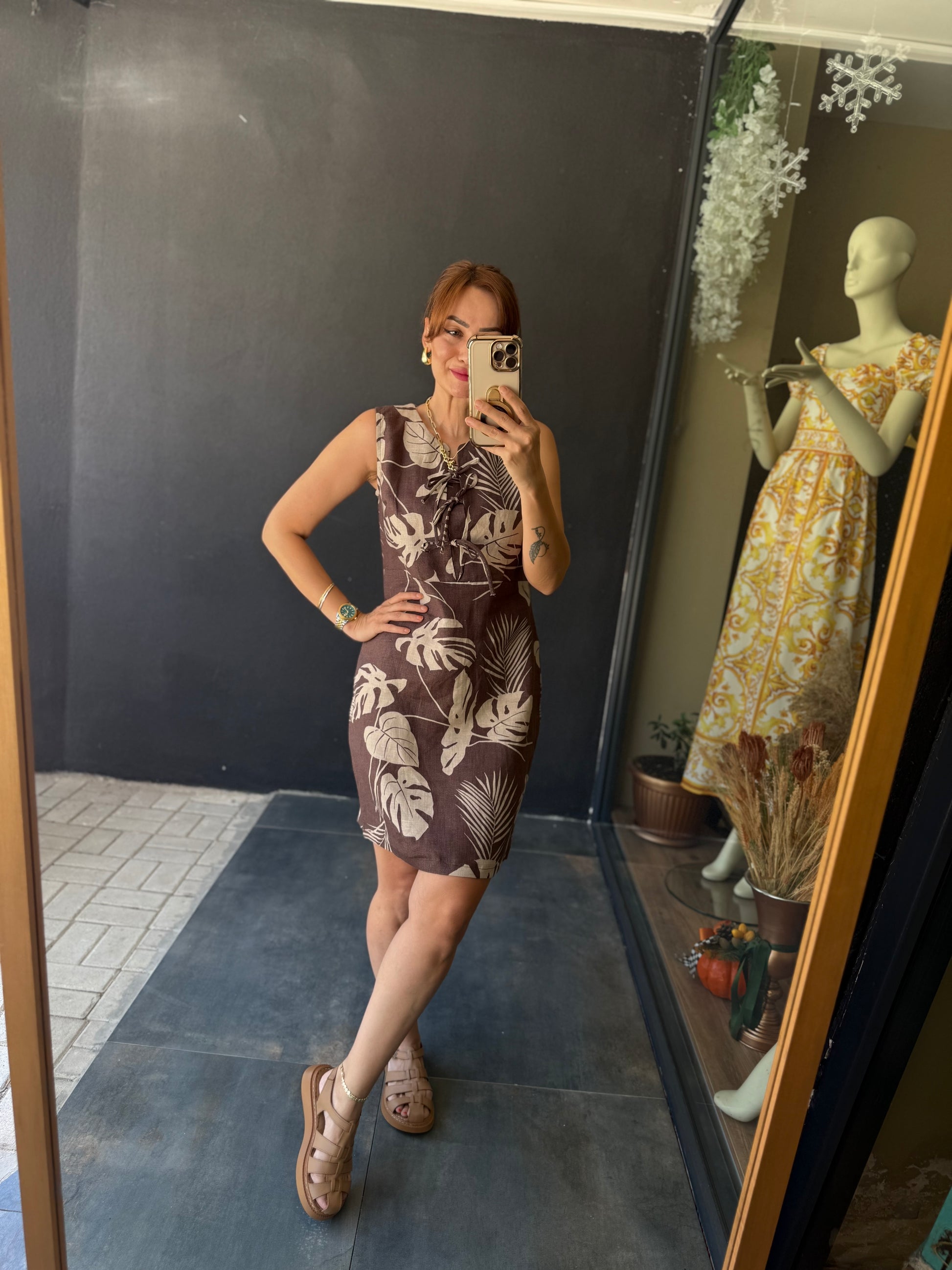 Jessica Kahve Keten Elbise