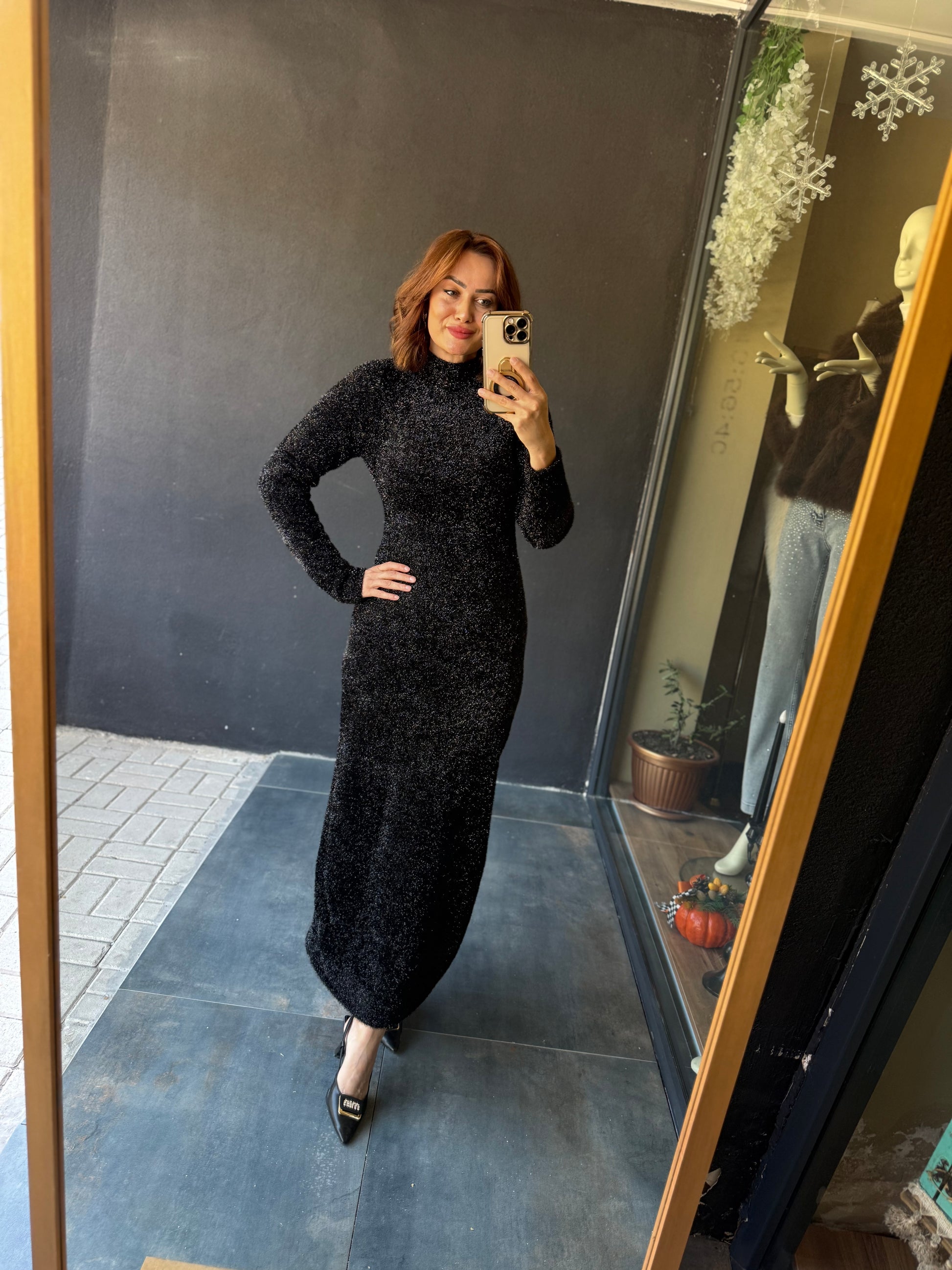 Jewel Siyah Simli Maxi Elbise