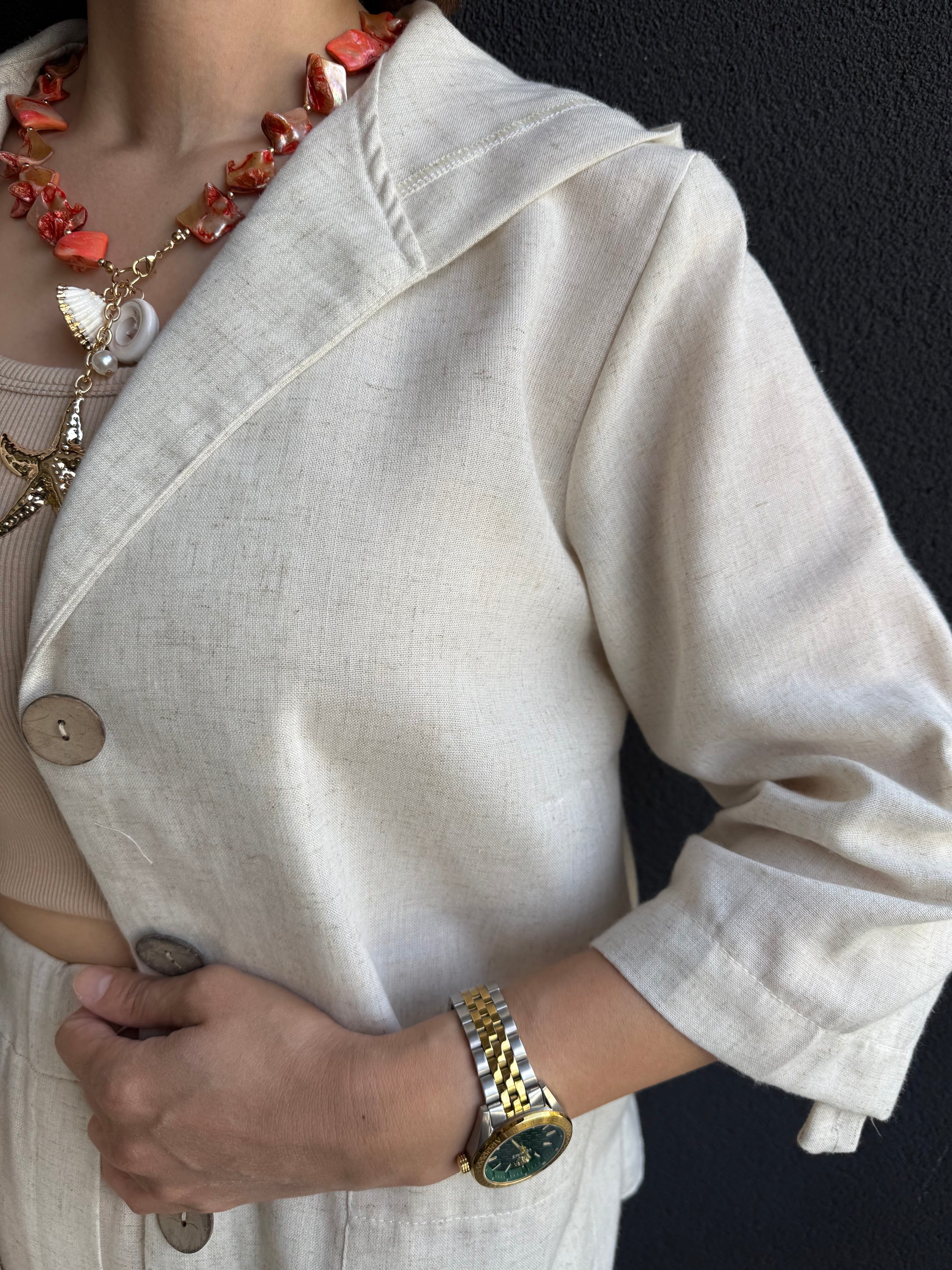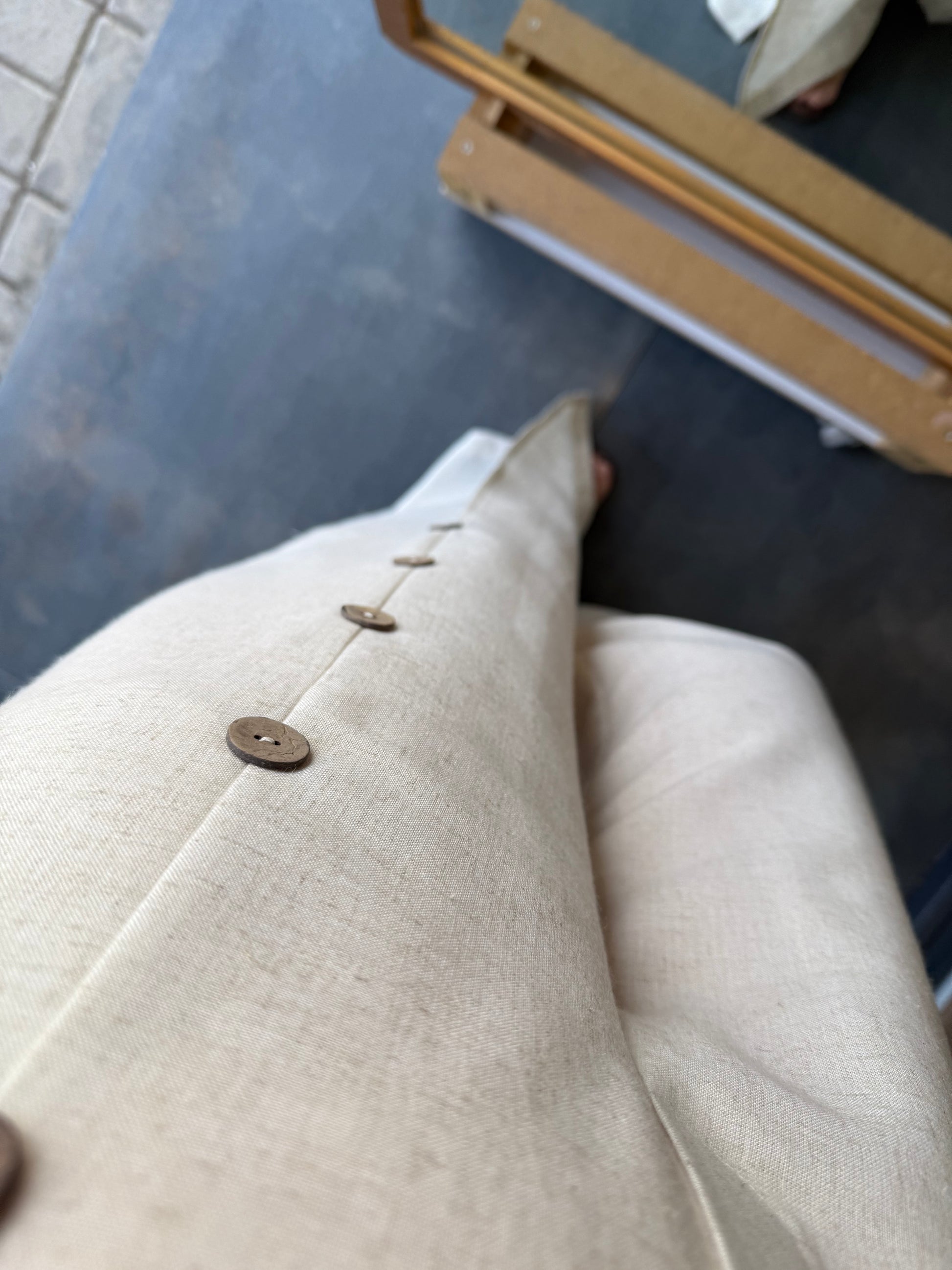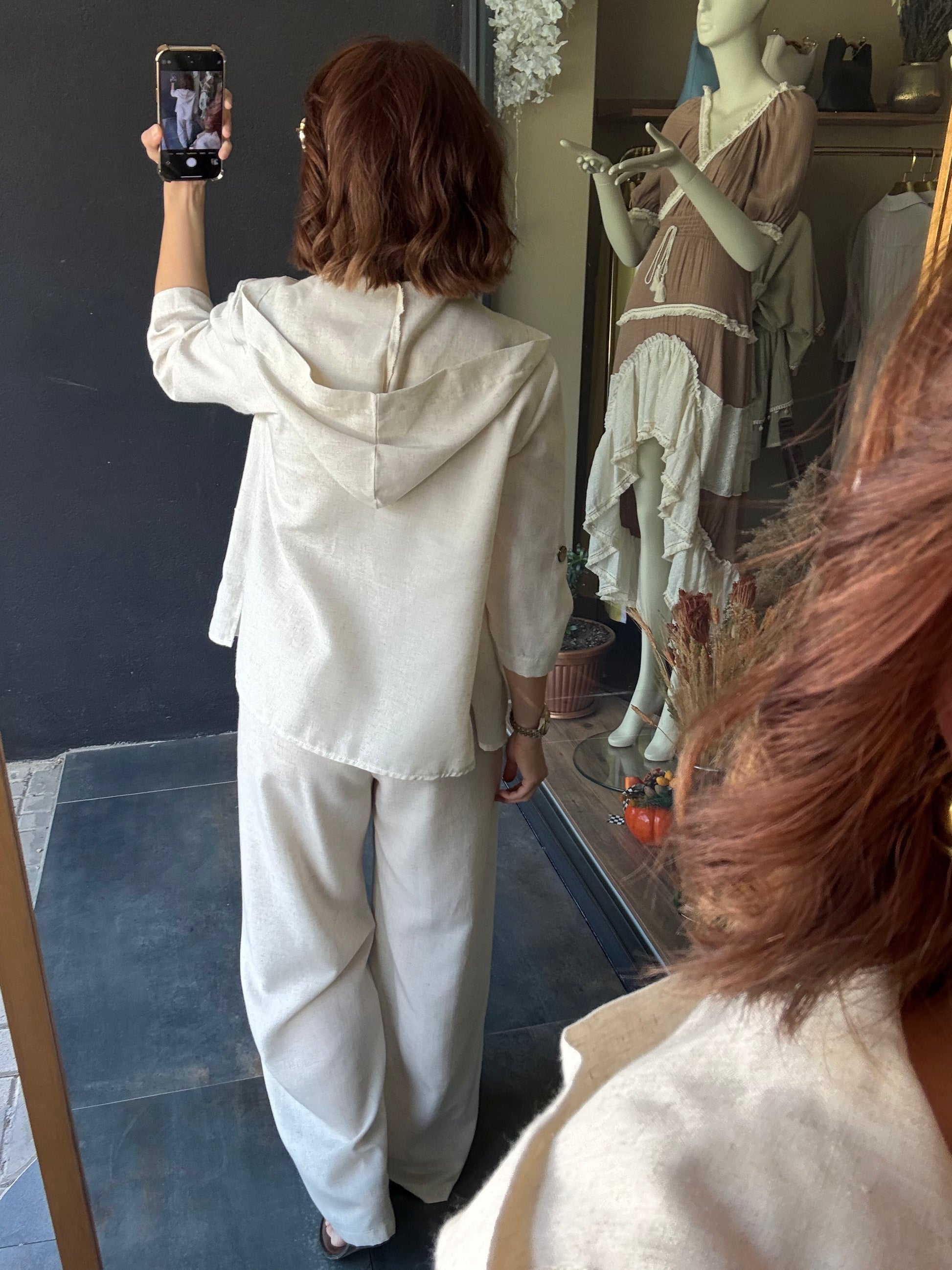 S M L XL Beden Düğme Detaylı Keten Takımımız Tam Kalıptır .