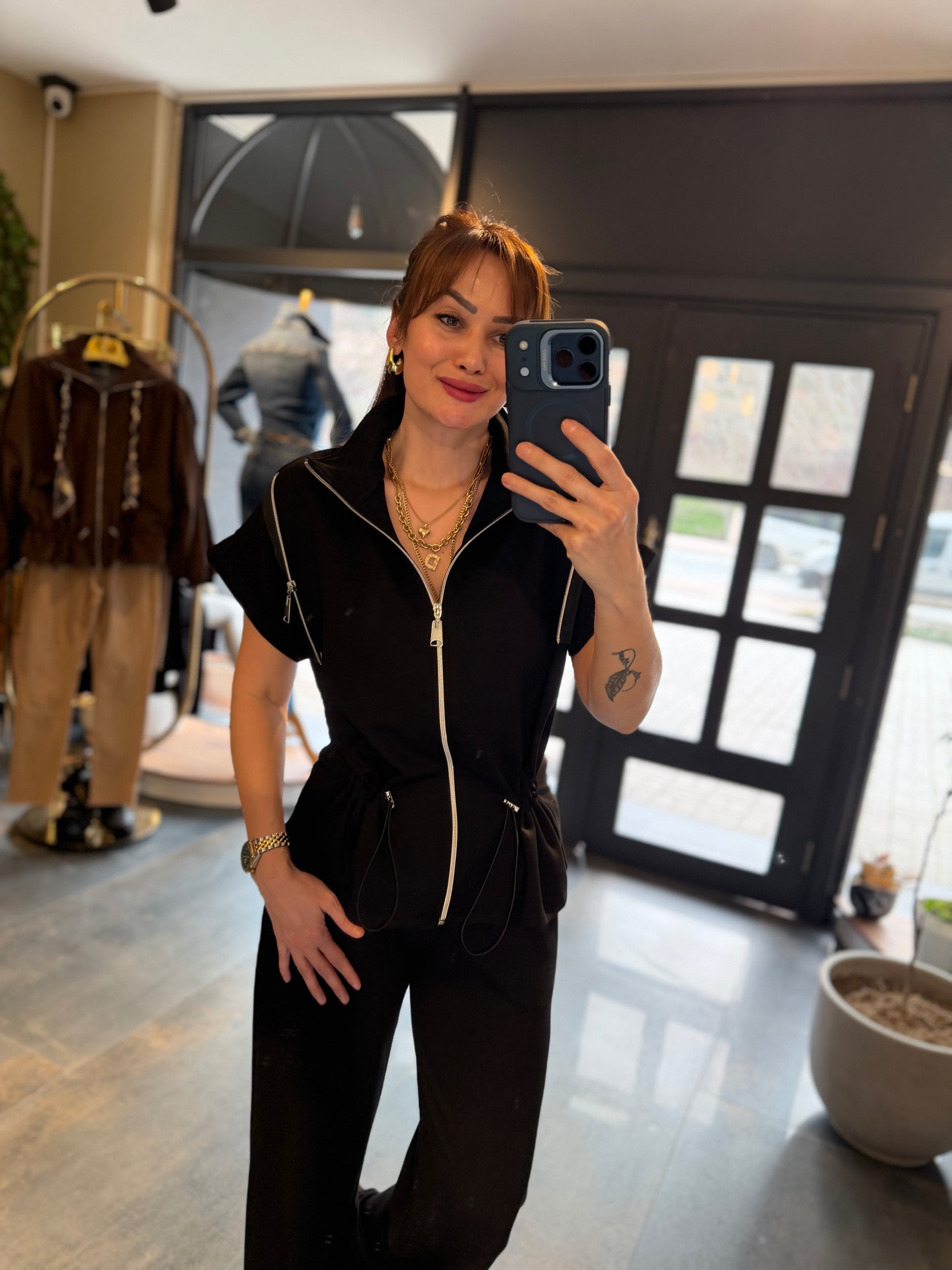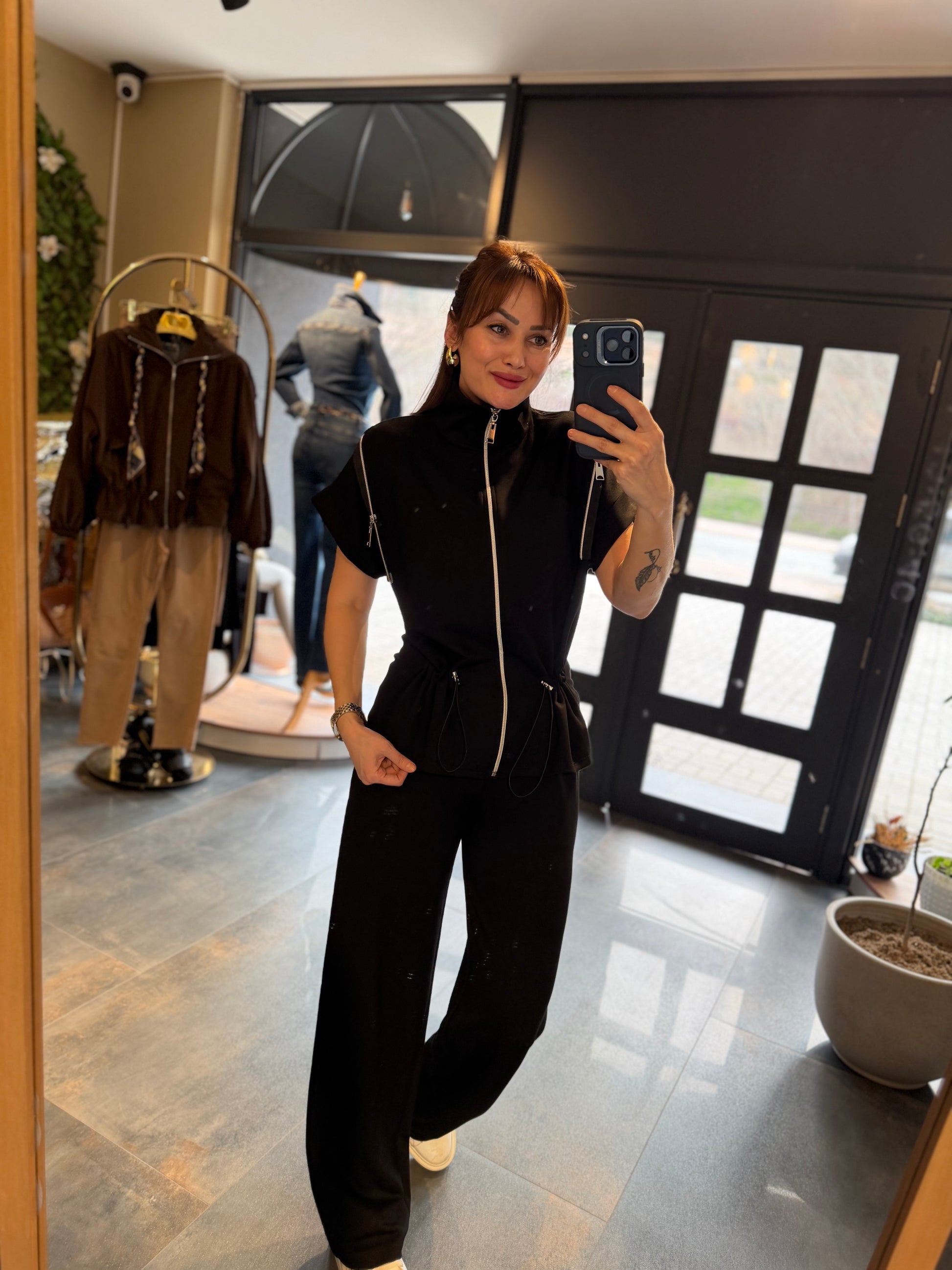 Lume Fermuar Detaylı Siyah Modal Takım
