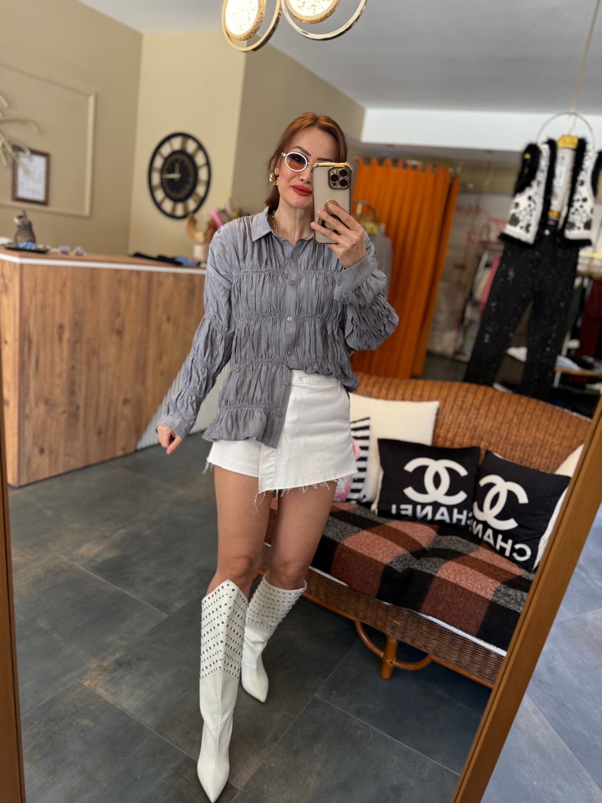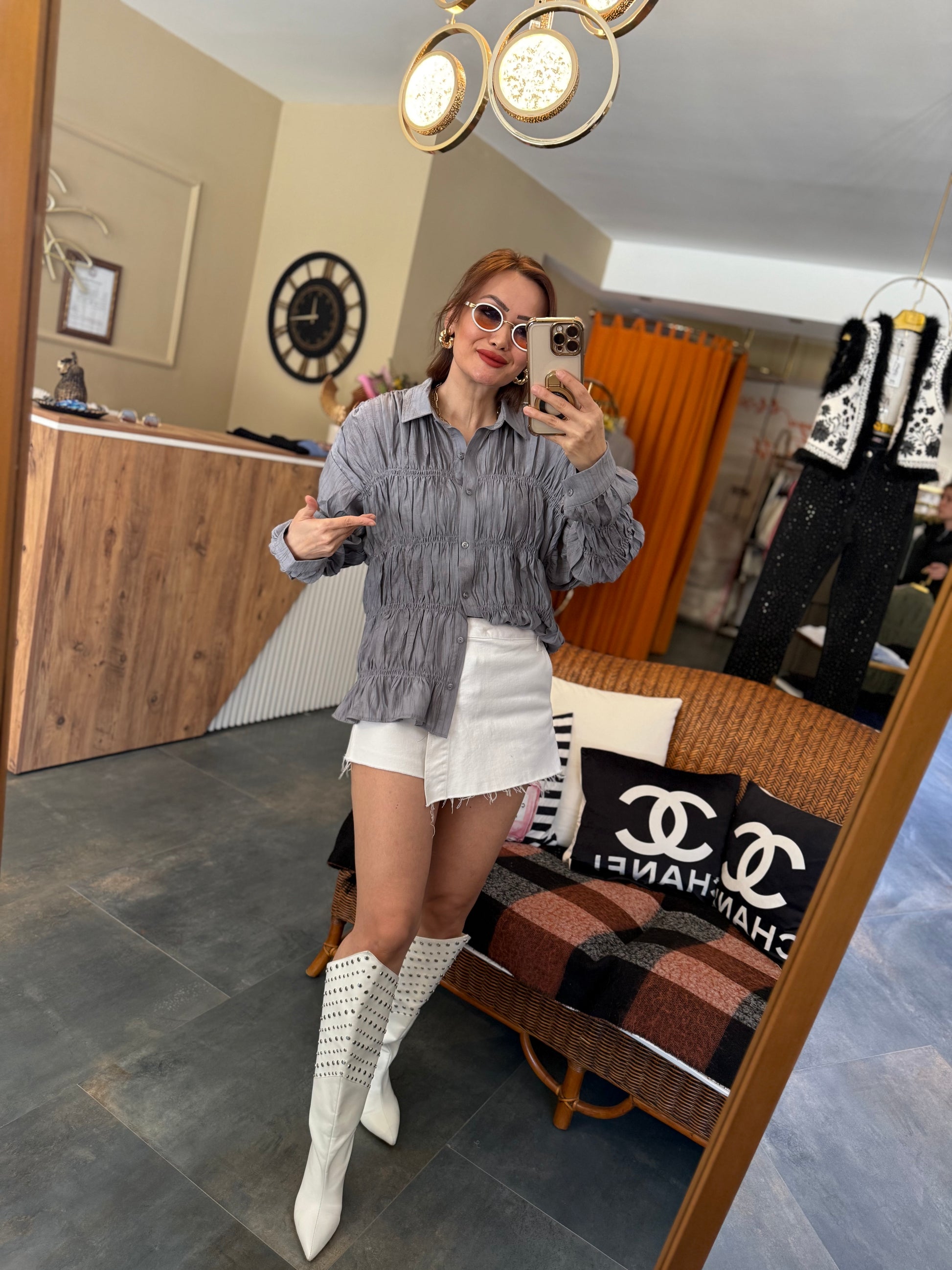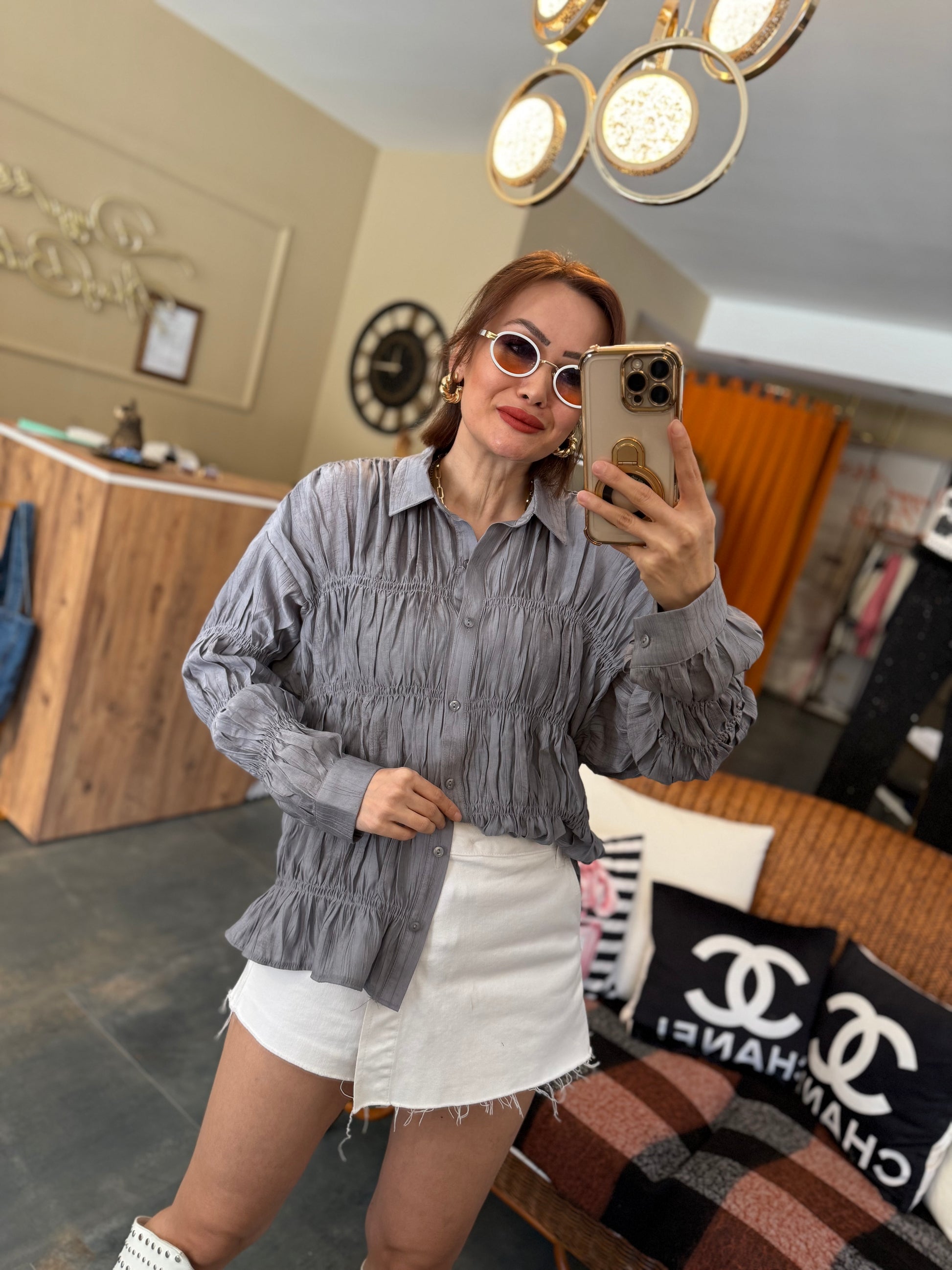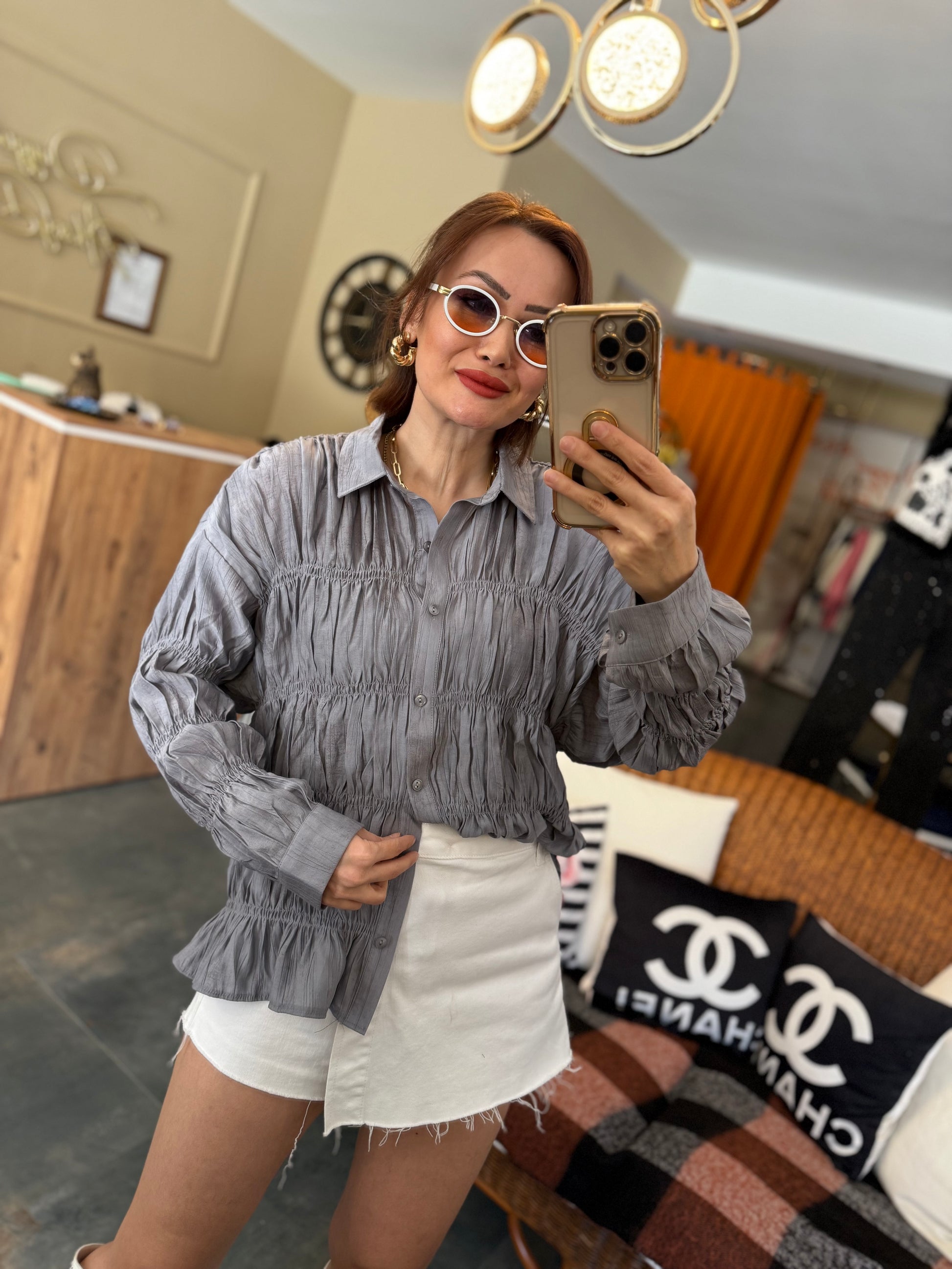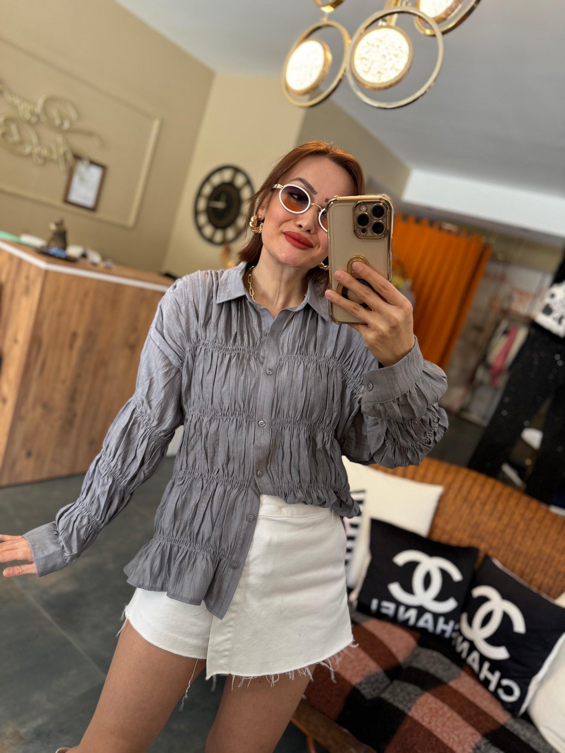 Massi Gri Bürümcük Gömlek