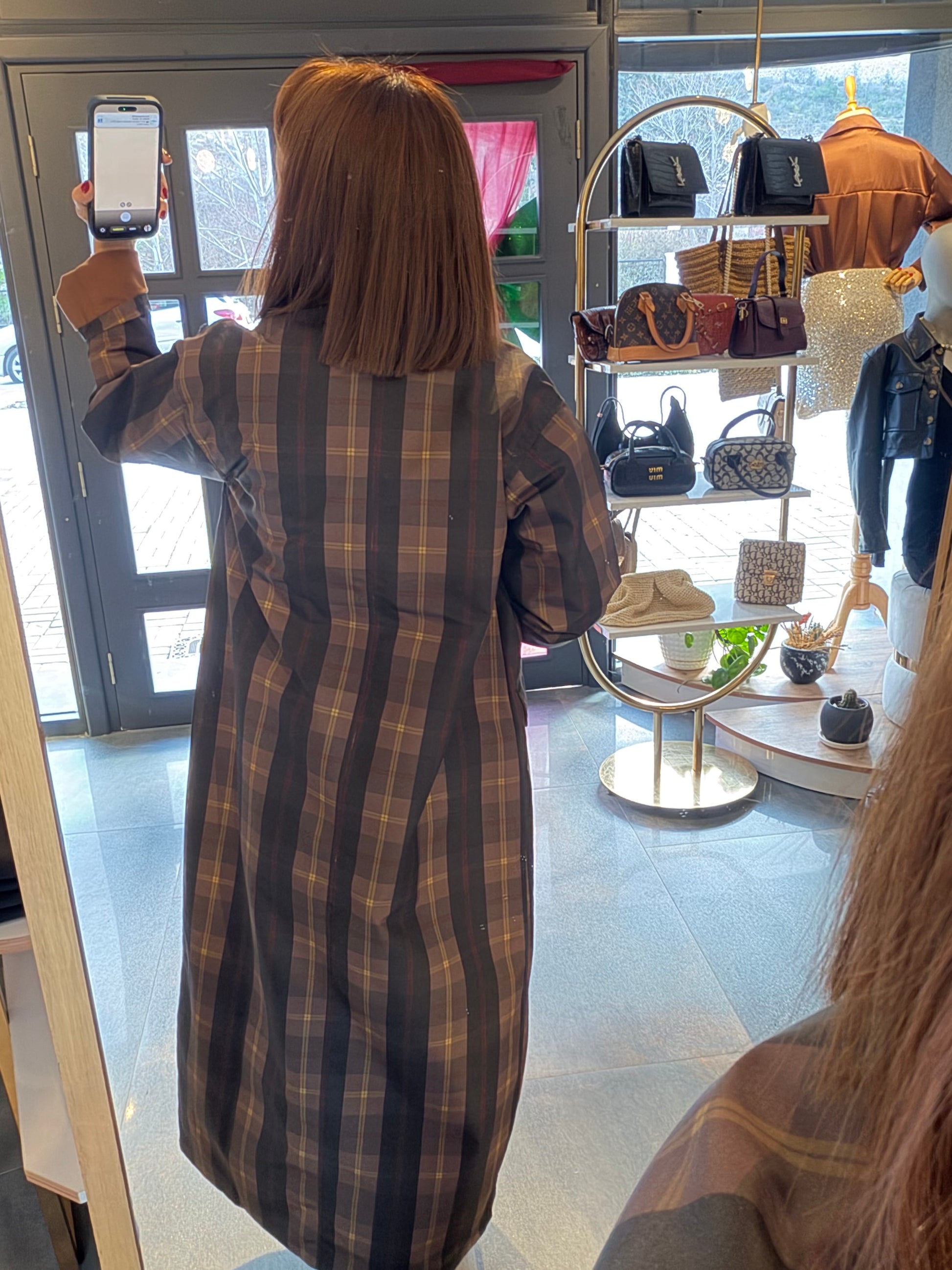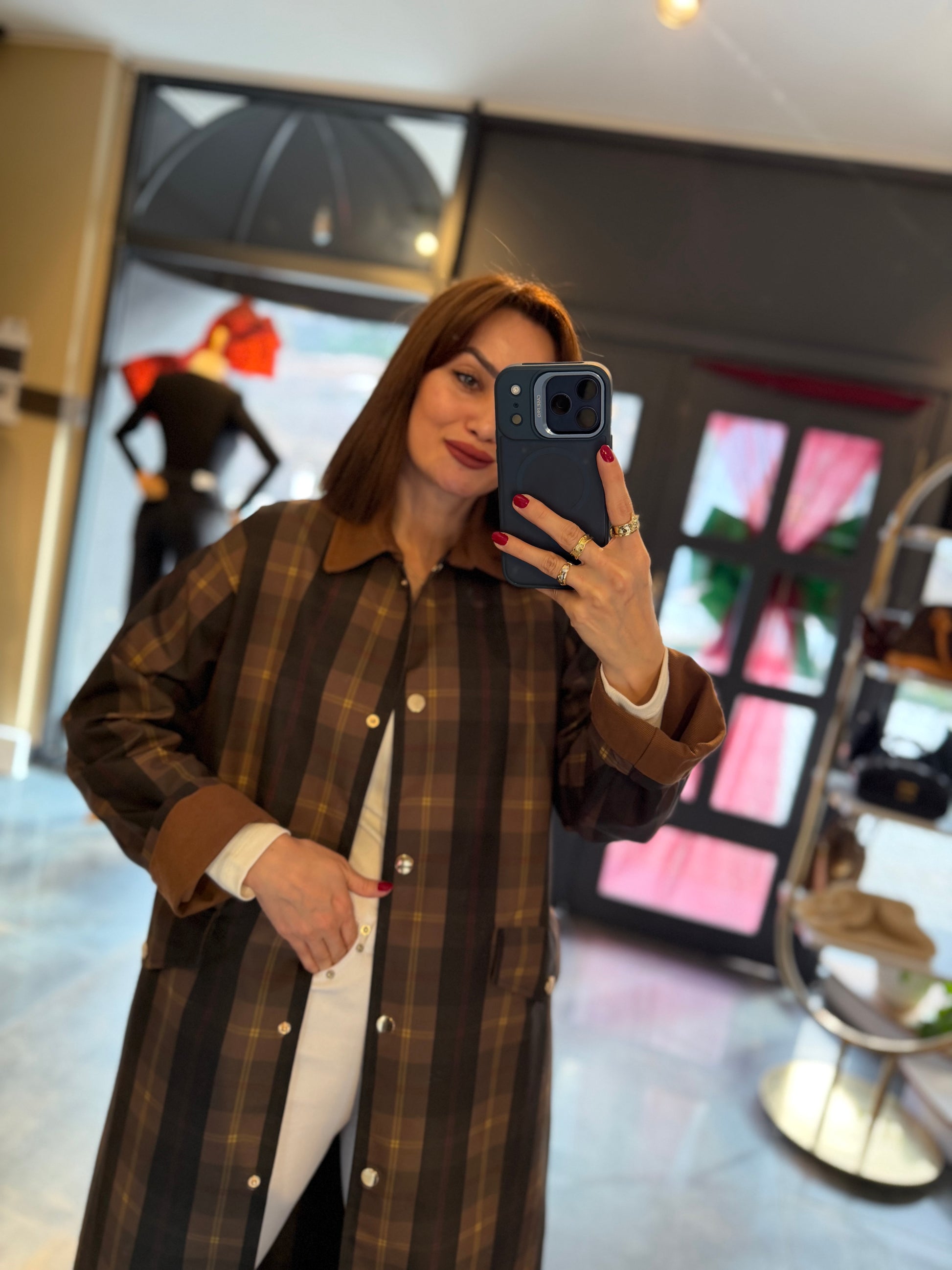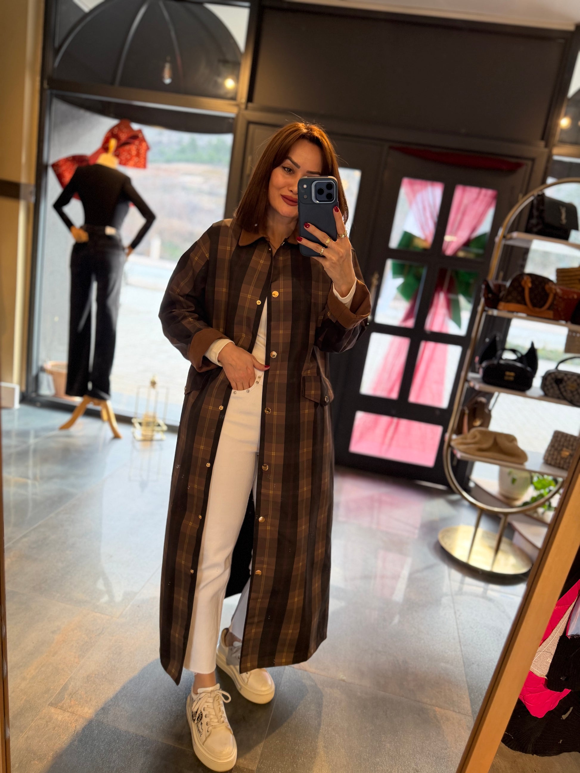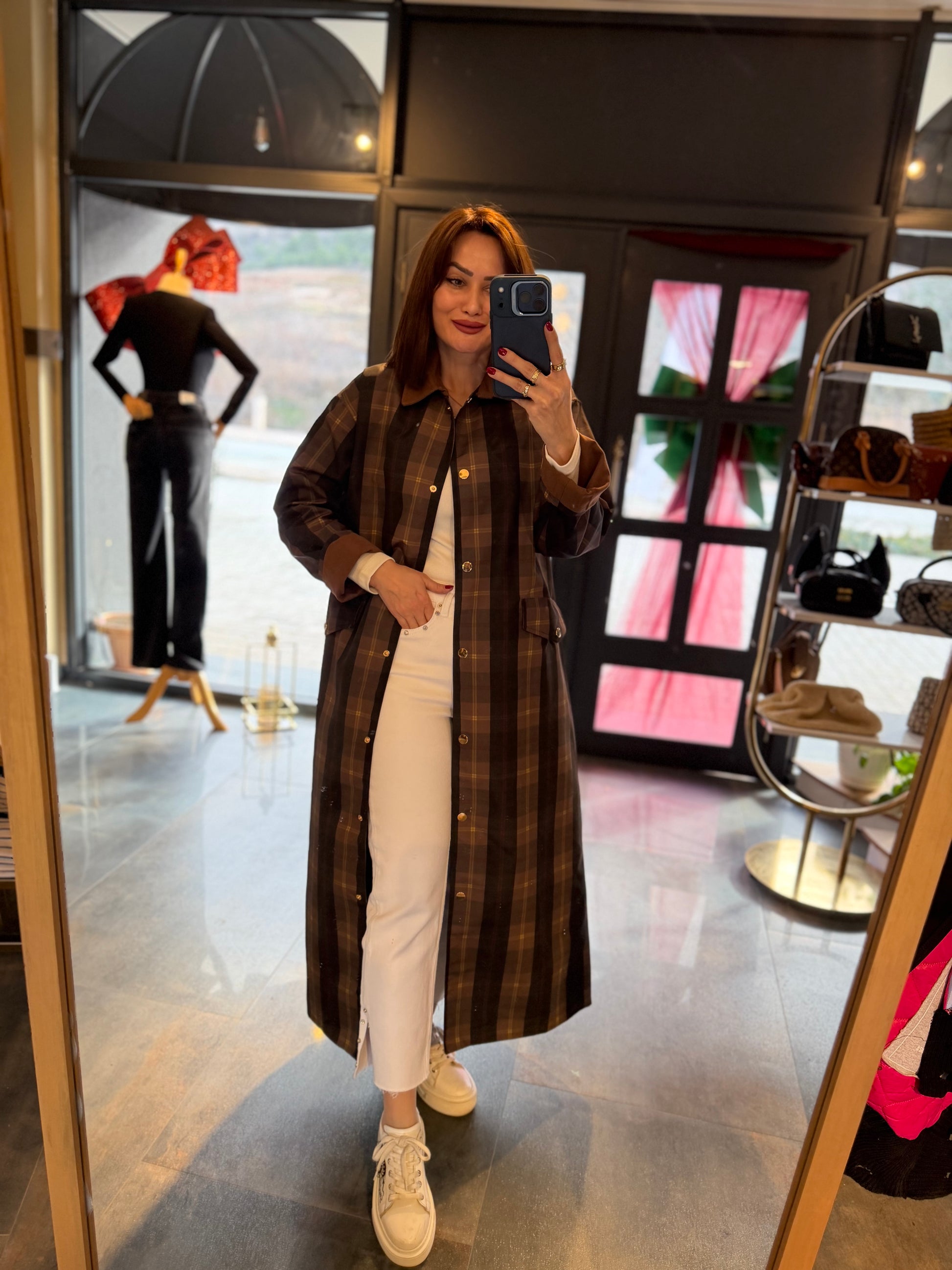 Mesli Kareli Su Geçirmez Trench