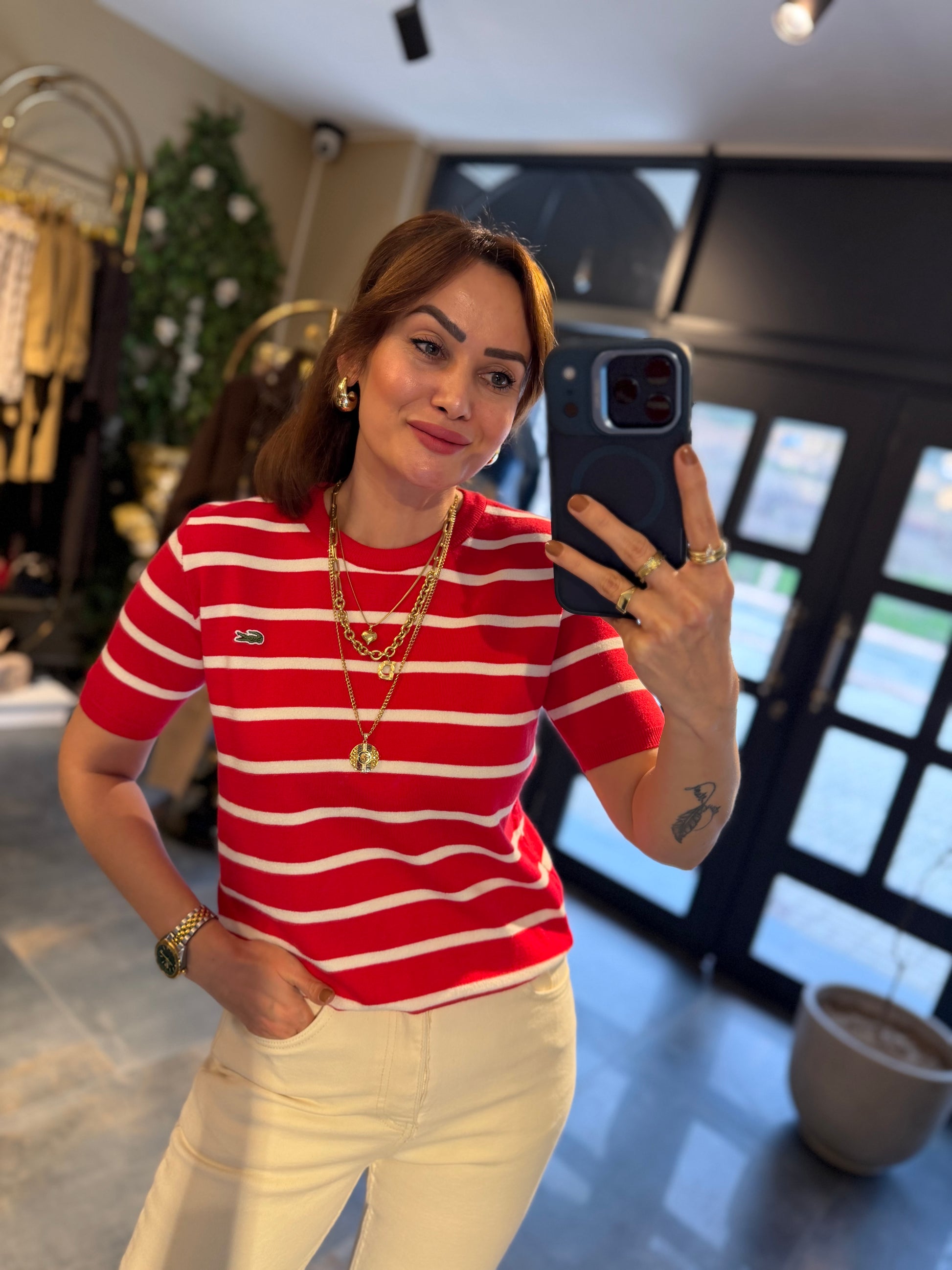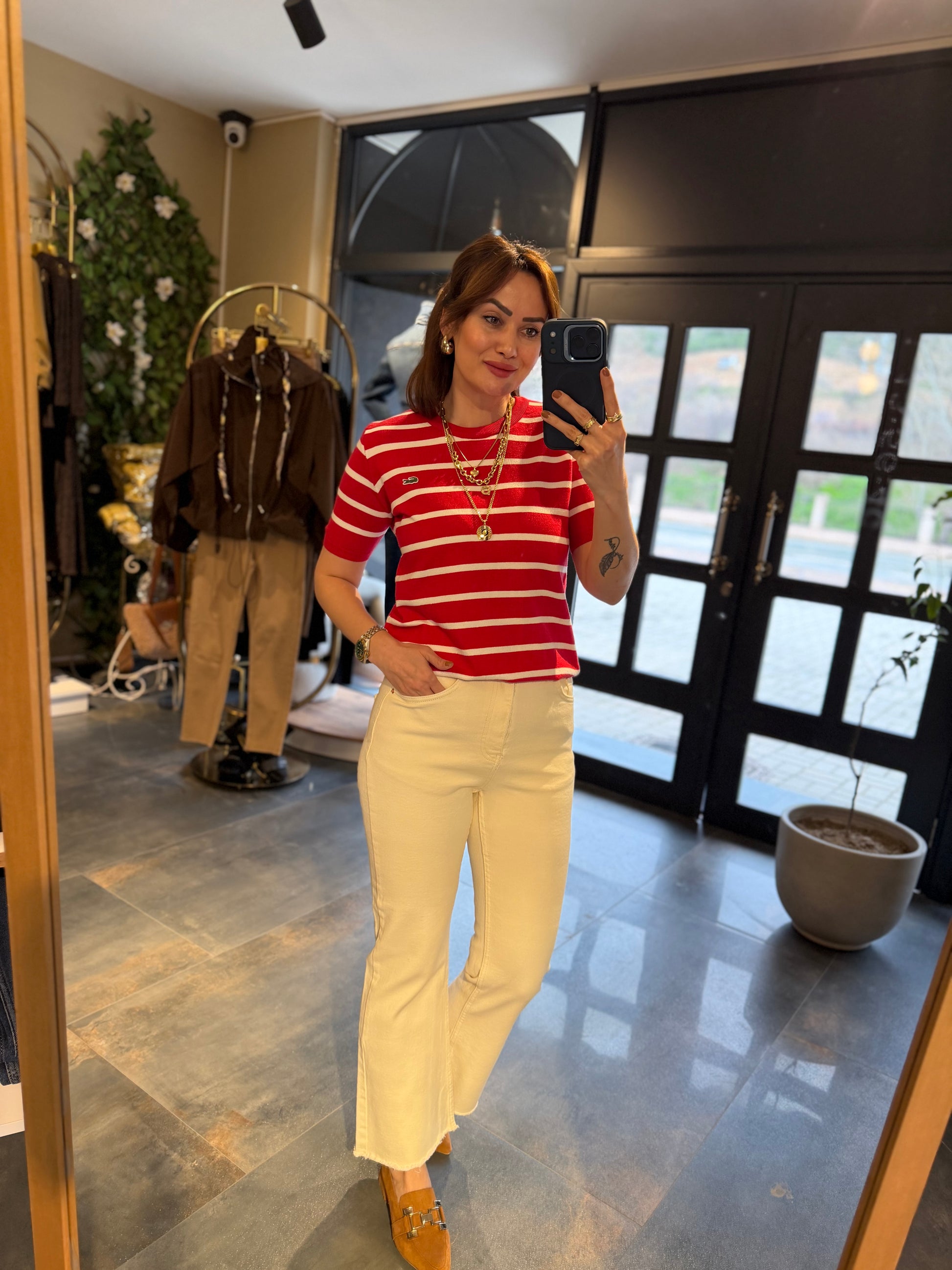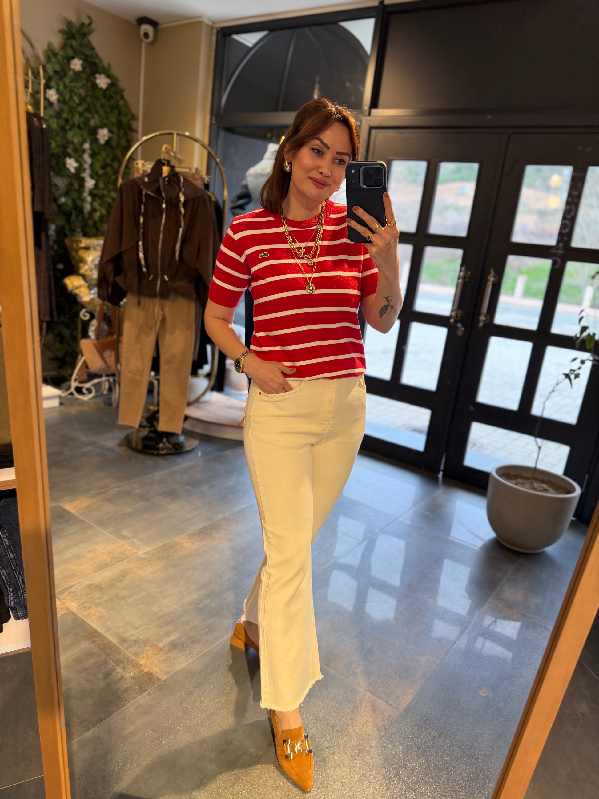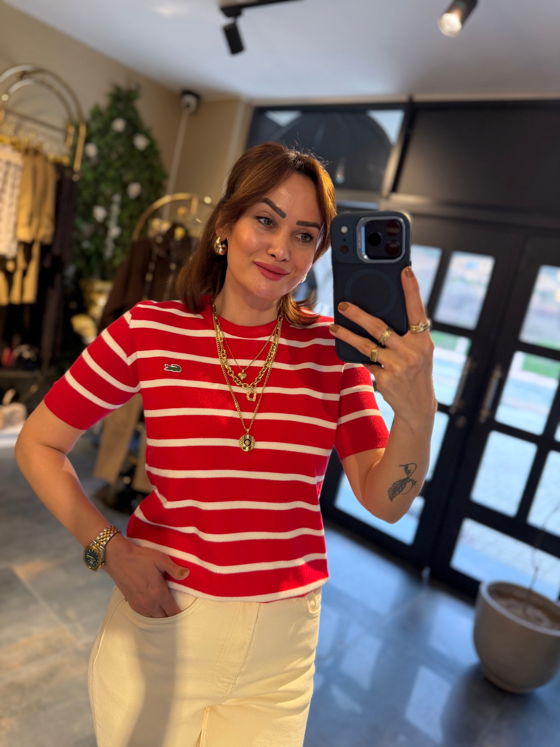 Misse Kırmızı / Beyaz Triko Dokulu T-Shirt